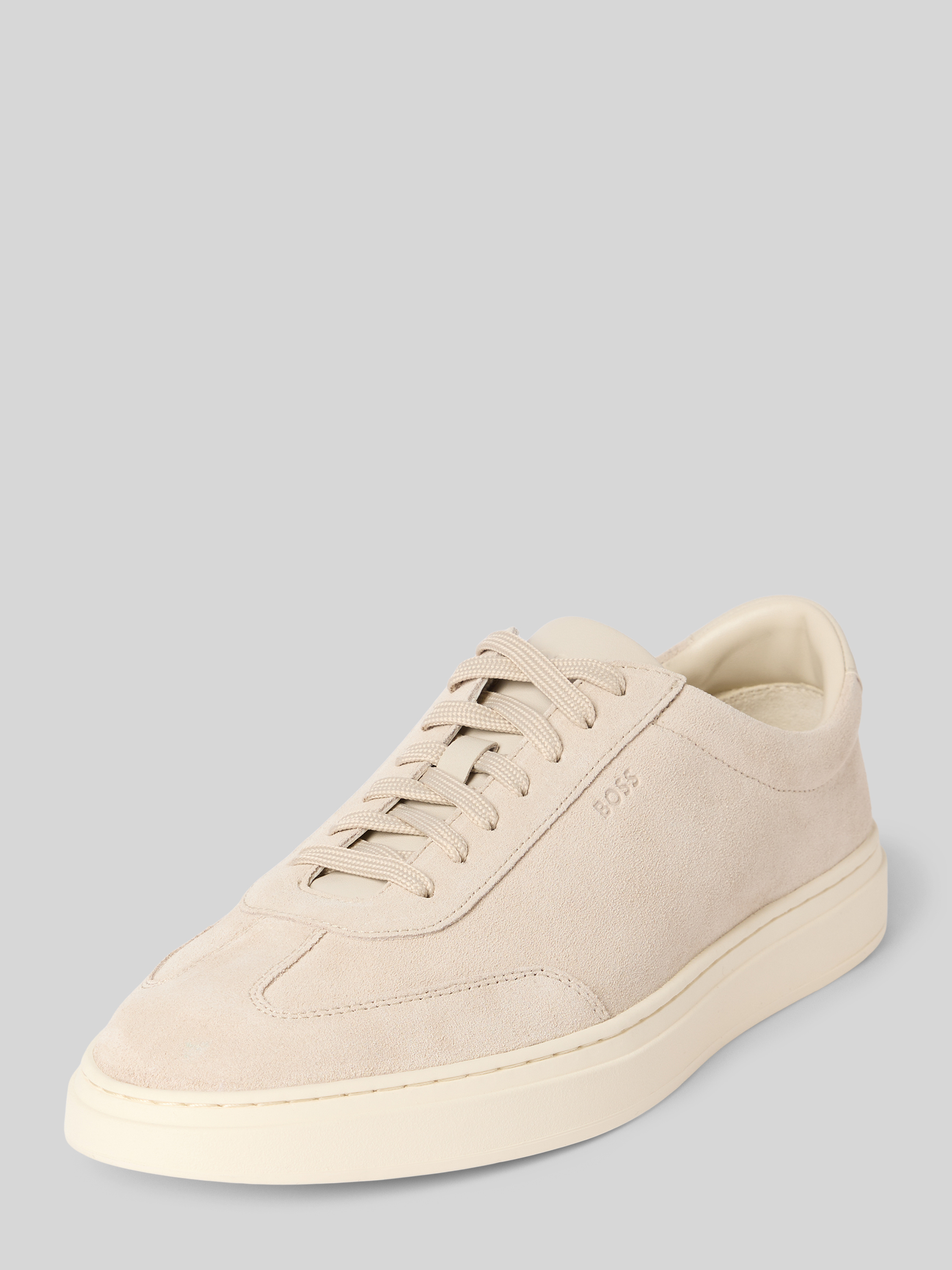 Der Herren Low Top Sneaker von BOSS BLACK ist aus hochwertigem Rindsvelours gefertigt, was ihm eine geschmeidige Haptik und elegante Optik verleiht. Die flache, strukturierte Gummisohle sorgt für einen angenehmen, sicheren Tritt. Eine abgerundete Schuhspitze ergänzt das zeitlose Design harmonisch.