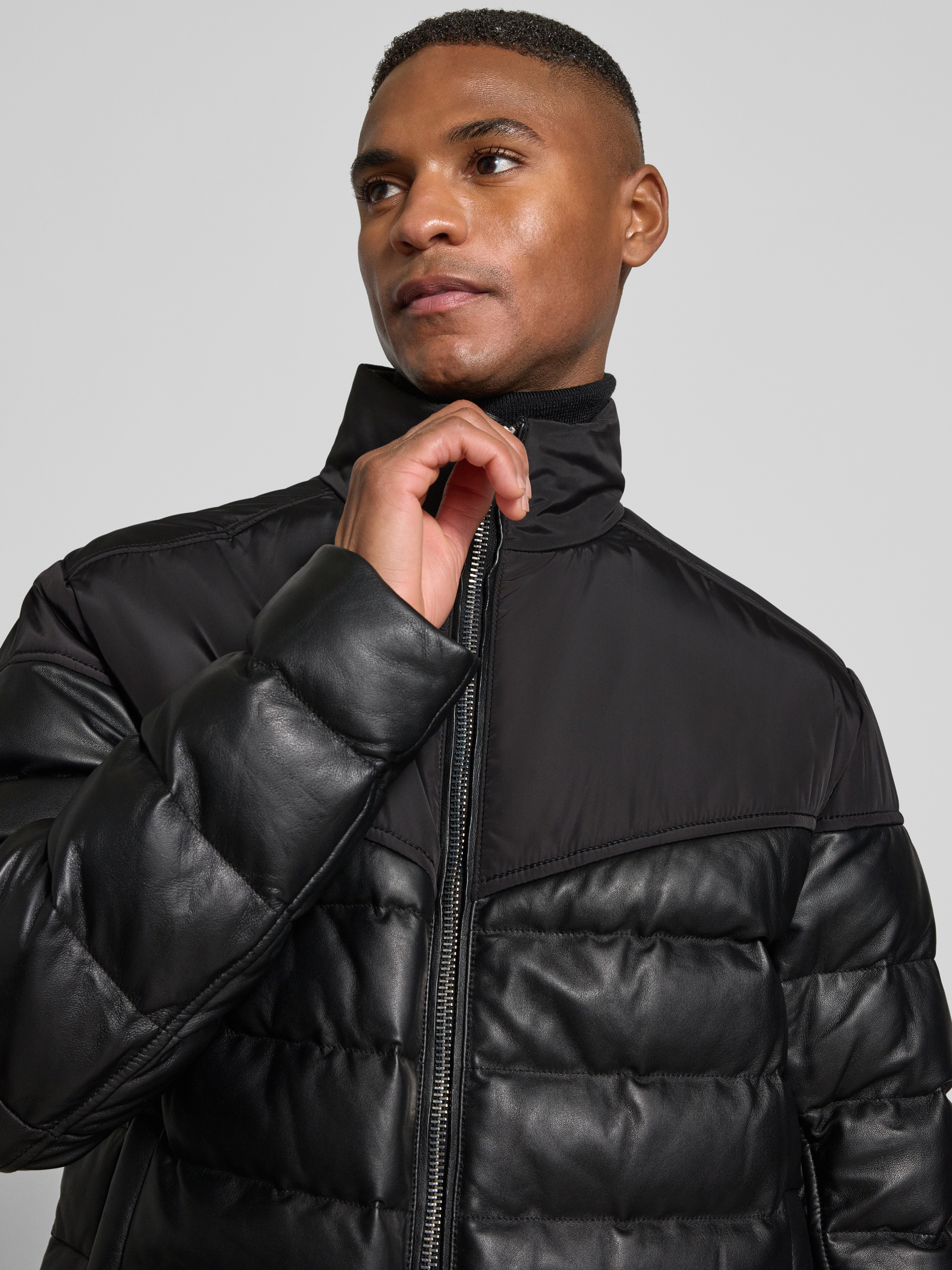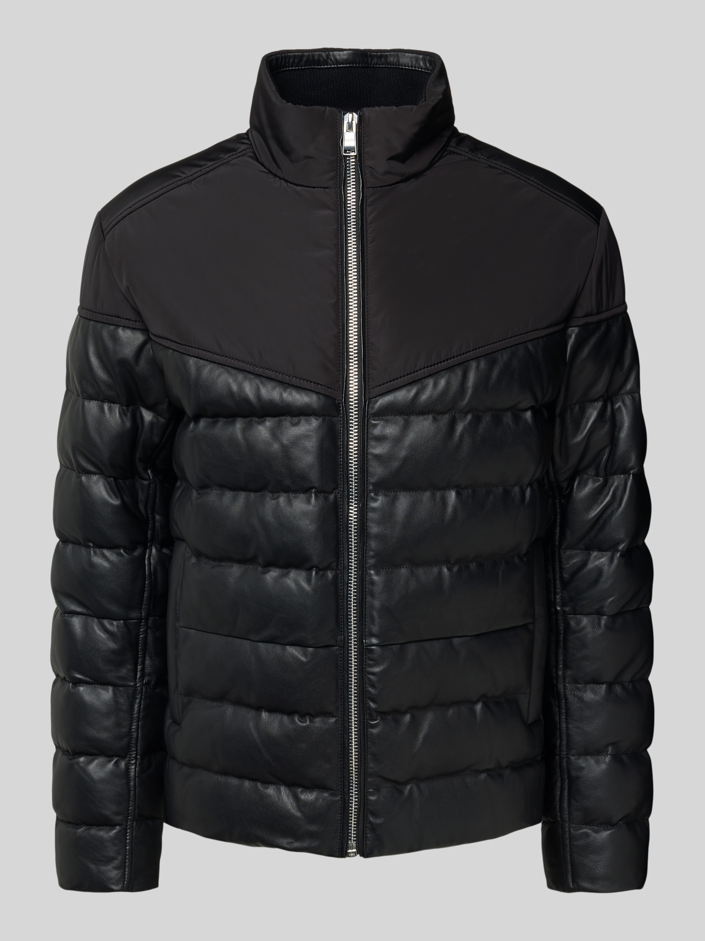 Die Herren Steppjacke von BOSS, Modell 'Mersino 1', überzeugt mit einer klaren, unifarbenen Optik und einem Regular-Fit, der Bewegungsfreiheit gewährt. Durch die Verarbeitung von Lammleder erhält das Material eine angenehm geschmeidige Haptik und sorgt für ein angenehmes Tragegefühl. Ein Stehkragen unterstreicht die zeitgemäße Silhouette, während dezente Details den Look abrunden.