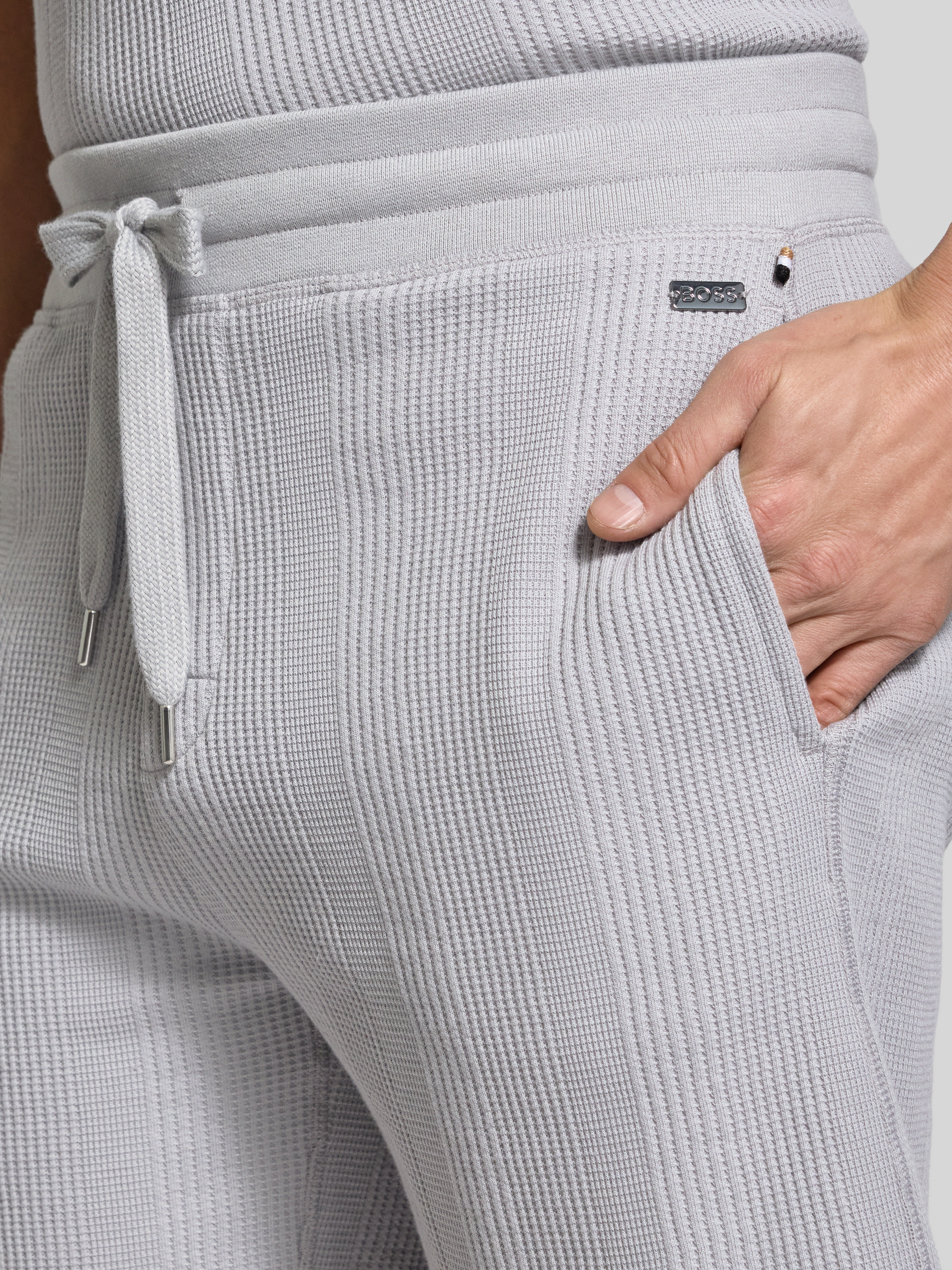 Die Regular Fit Sweatshorts von BOSS verbinden lässigen Komfort mit sportlicher Eleganz. Durch den angenehmen Baumwoll-Mix und den elastischen Bund mit Tunnelzug erhält man ein entspanntes Tragegefühl. Seitliche Eingrifftaschen runden die funktionale Gestaltung dieser unifarbenen Shorts ab.