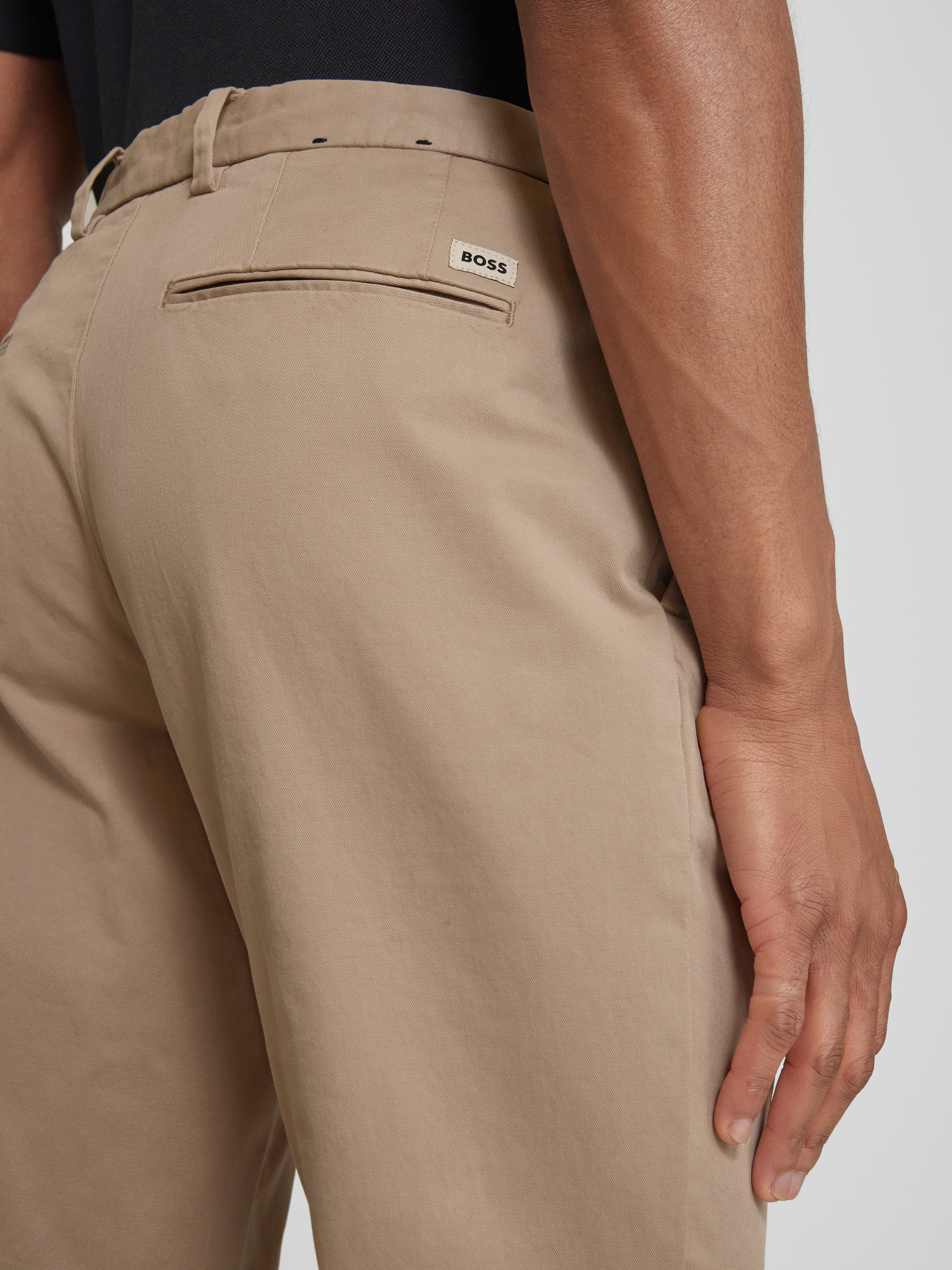 Die Herren Chino von BOSS im Modell 'Kaito' kombiniert einen Baumwoll-Elasthan-Mix mit einer schlanken Passform, was für angenehmen Tragekomfort sorgt. Dank der Eingrifftaschen und der Paspeltaschen am Gesäß eignet sie sich ideal für den Alltag. Ein dezenter Label-Patch rundet das zeitlose Design ab.
