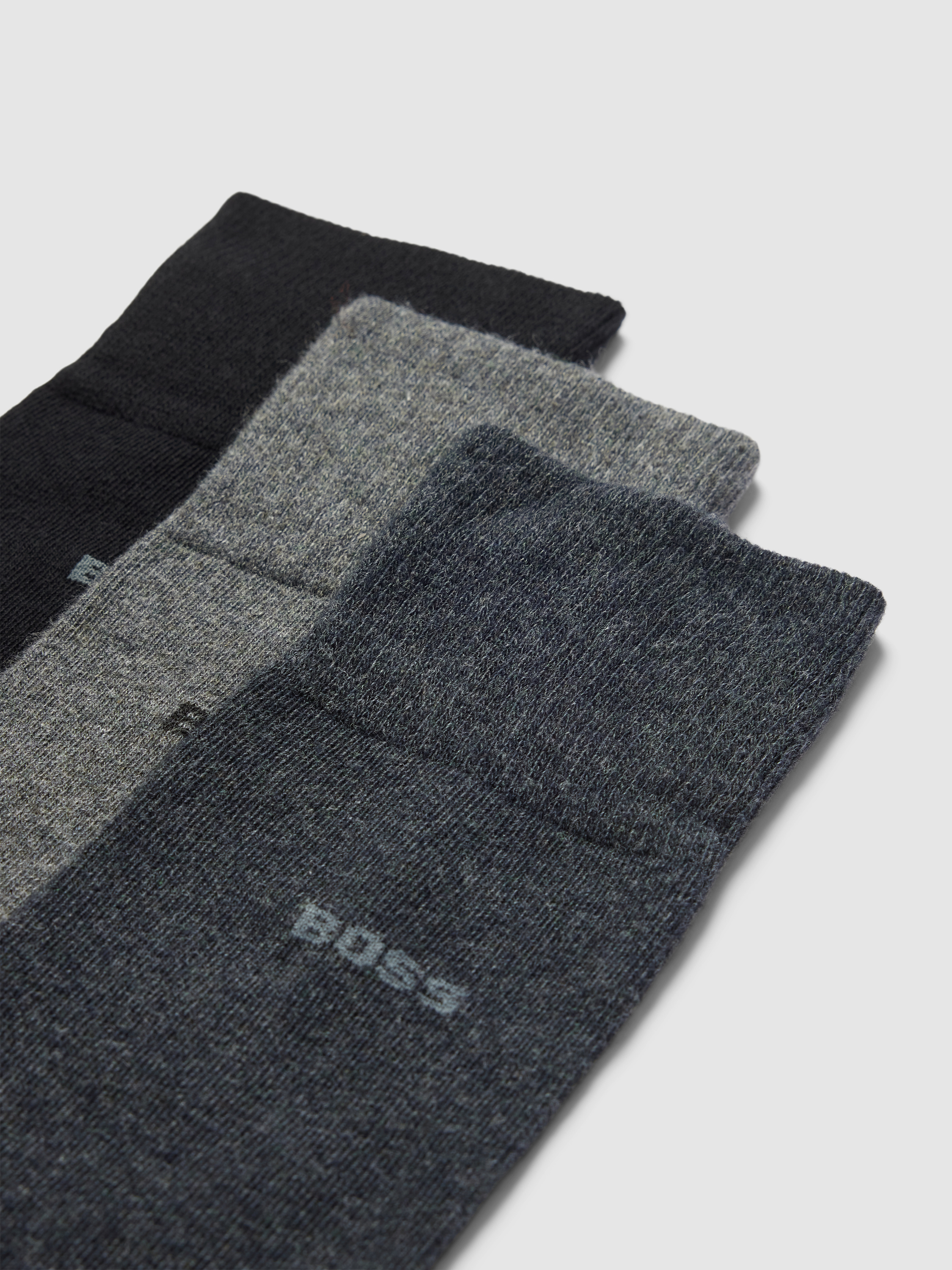 Die Herren Socken von BOSS im 3er-Pack vereinen Komfort und Stil. Der Baumwoll-Mix mit Stretch-Anteil sorgt für eine angenehme Passform, während das unifarbene Design mit dezentem Label-Detail überzeugt. Die Rippenbündchen bieten zusätzlichen Halt und unterstützen den täglichen Tragekomfort.
