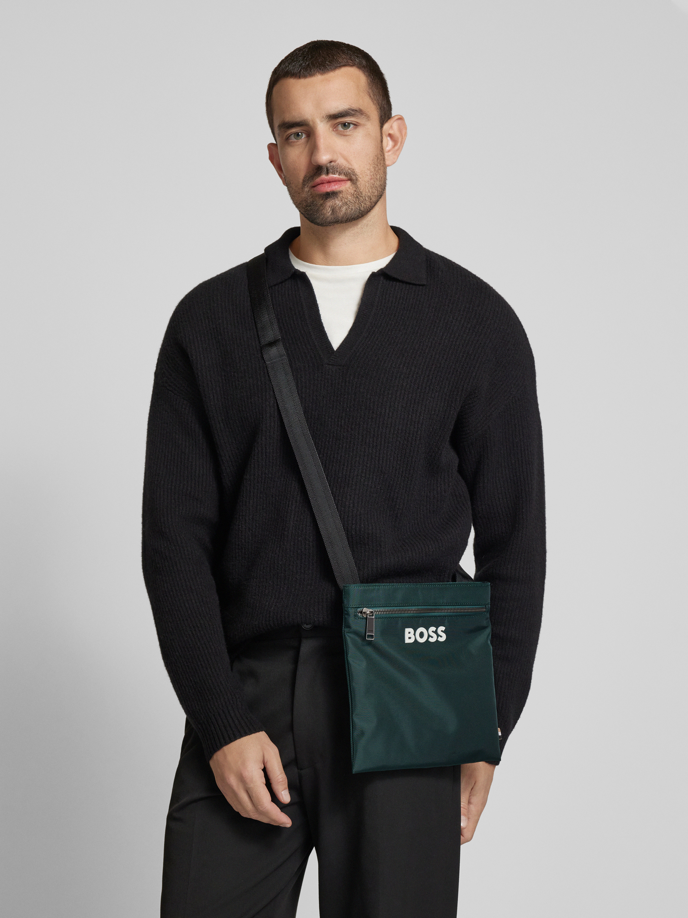 BOSSUmhängetasche mit Label-Print Modell 'Catch_3.0_Envelope' in gruen