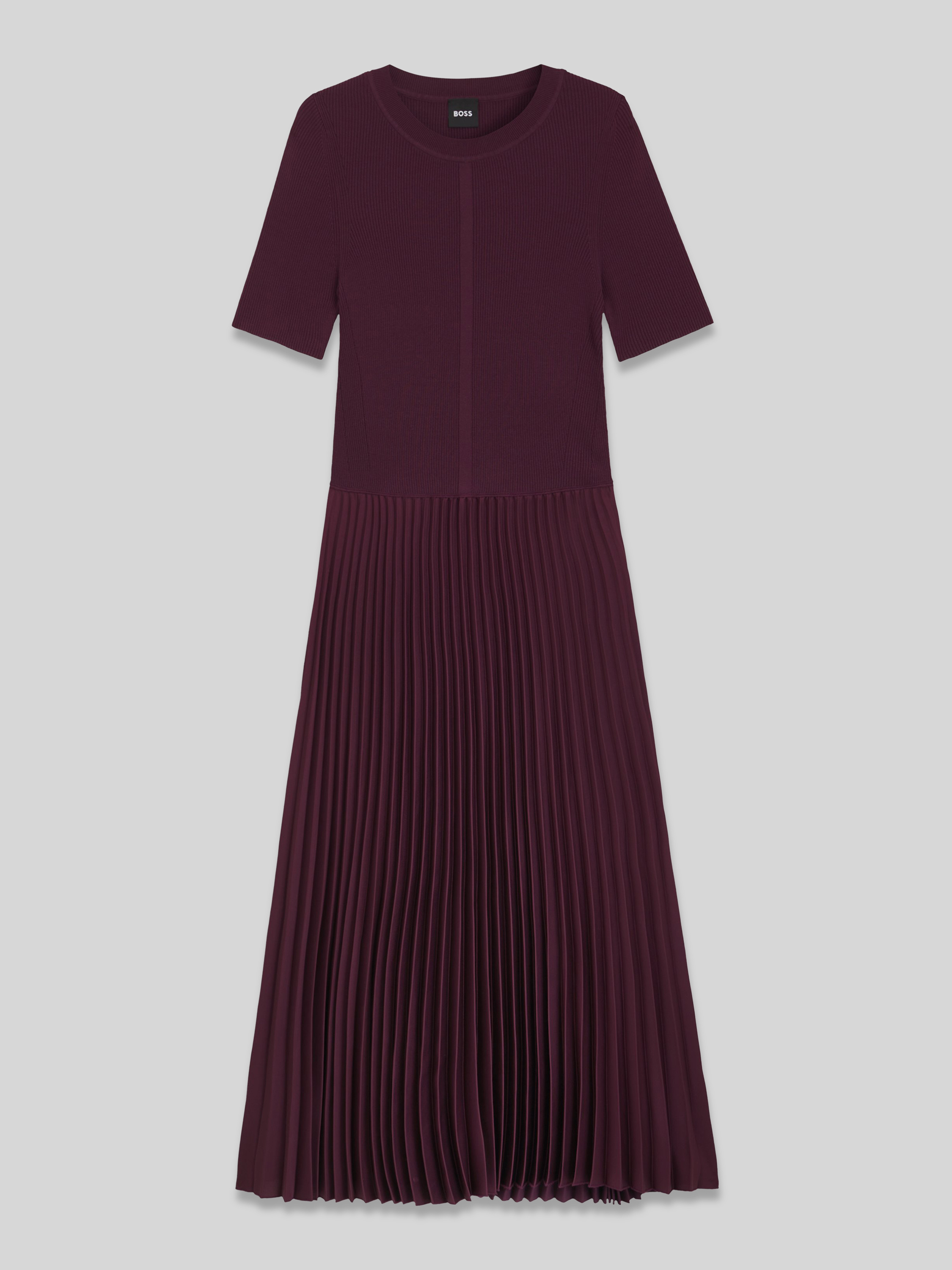 BOSSFigurbetontes Midikleid mit plissiertem Rockteil Modell 'FADRIDI' in bordeaux