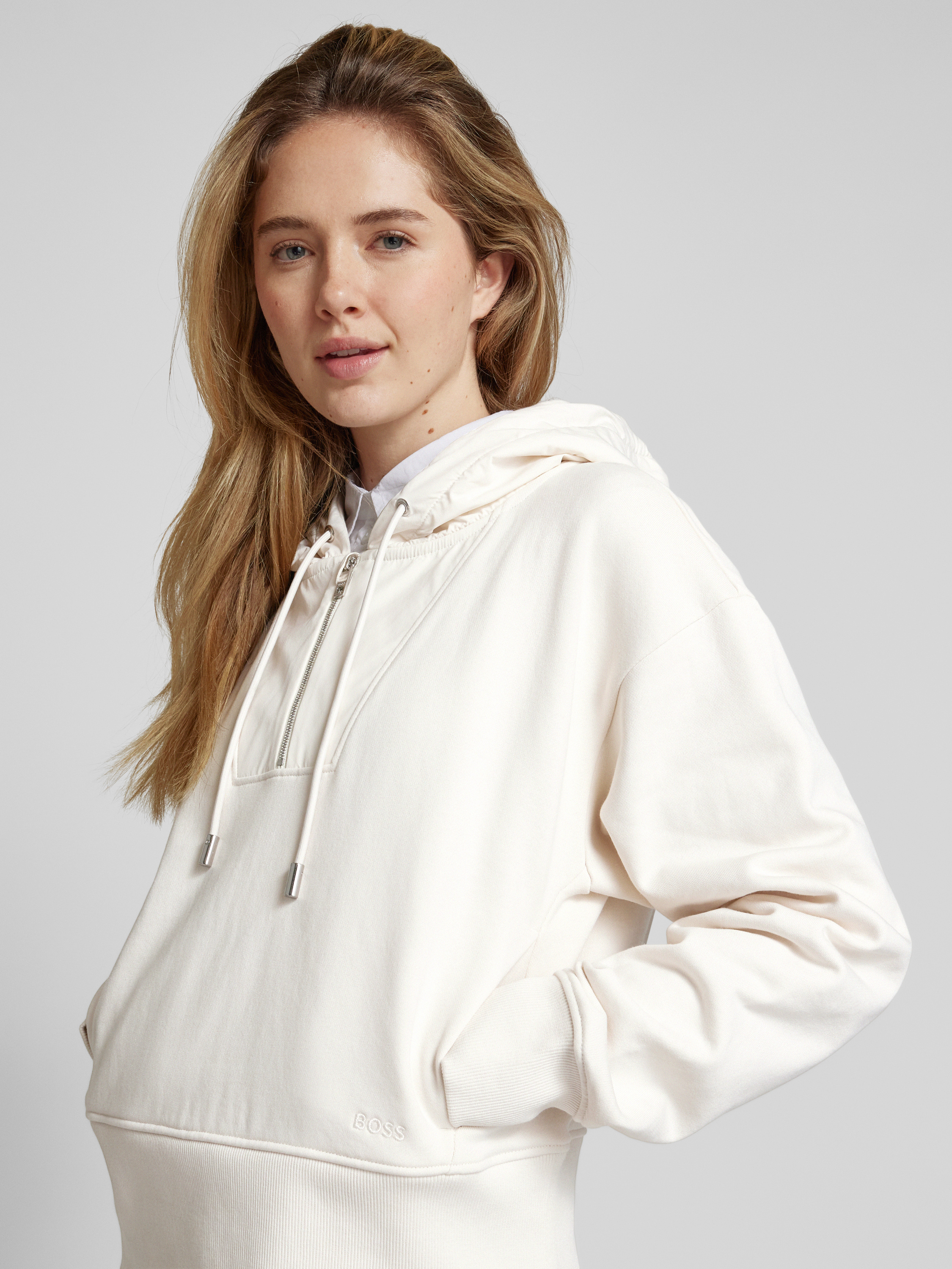 BOSSHoodie mit überschnittenen Schultern Modell 'Emrey' in offwhite