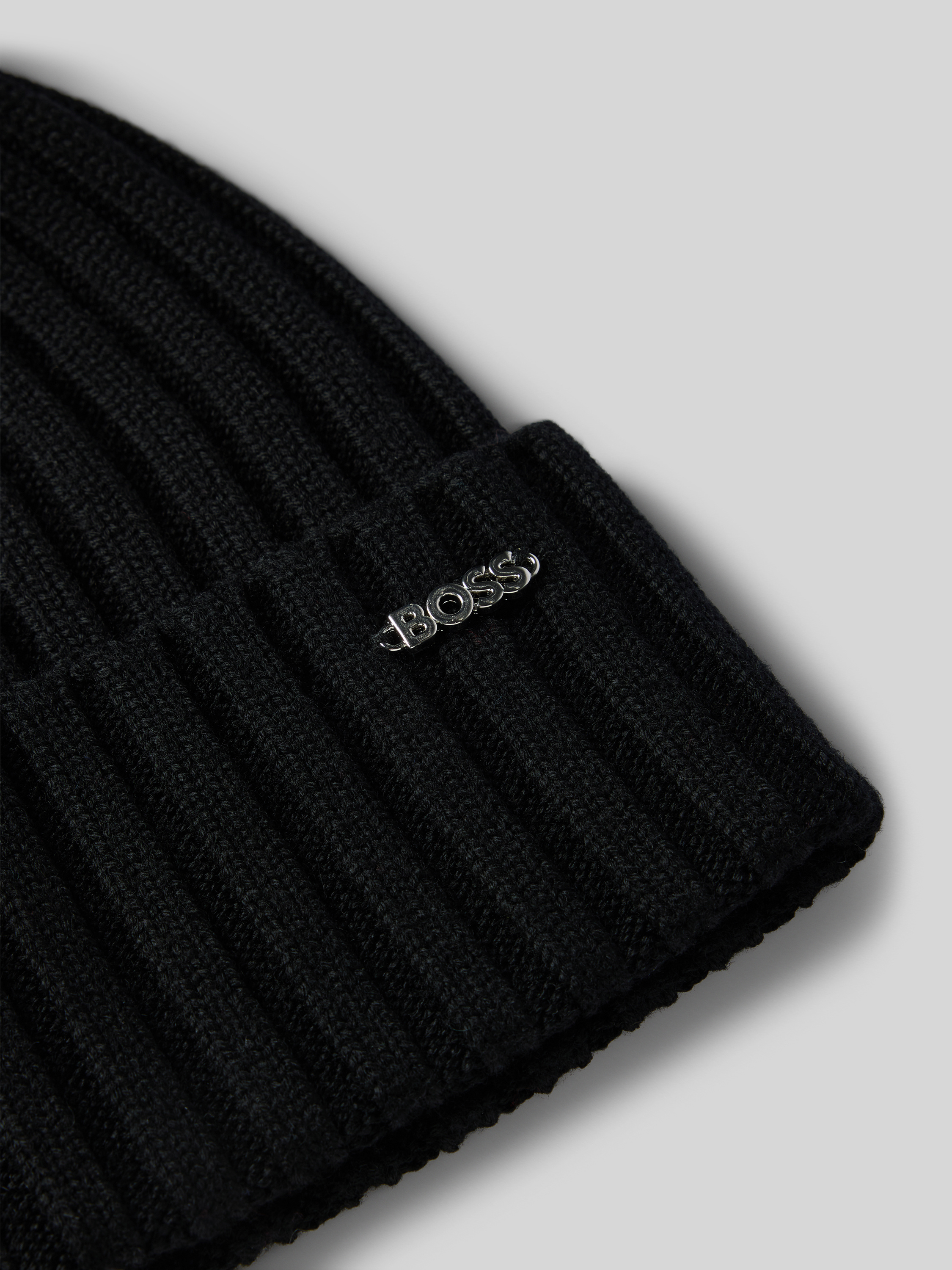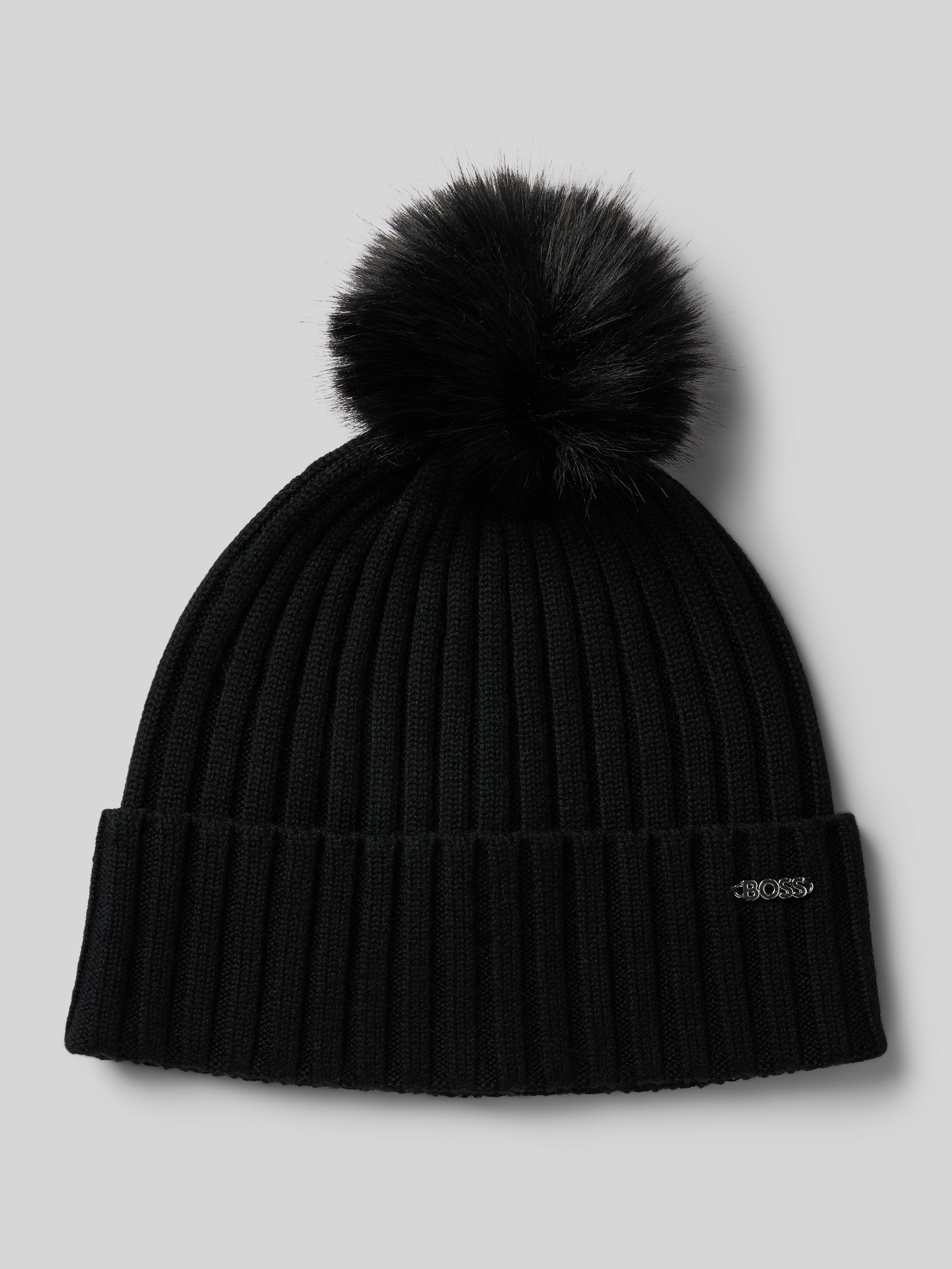Die Damen Pudelmütze von BOSS, Modell 'Lonie', legt mit ihrem unifarbenen Struktur-Muster einen klaren Akzent und sitzt dank klassischem Rippstrick angenehm am Kopf. Reine Schurwolle sorgt für ein wohliges Gefühl an kühlen Tagen, während der Pompon und eine dezente Metall-Applikation das Design abrunden. So eignet sich diese Mütze sowohl für entspannte Spaziergänge als auch für den Alltag in der Stadt.