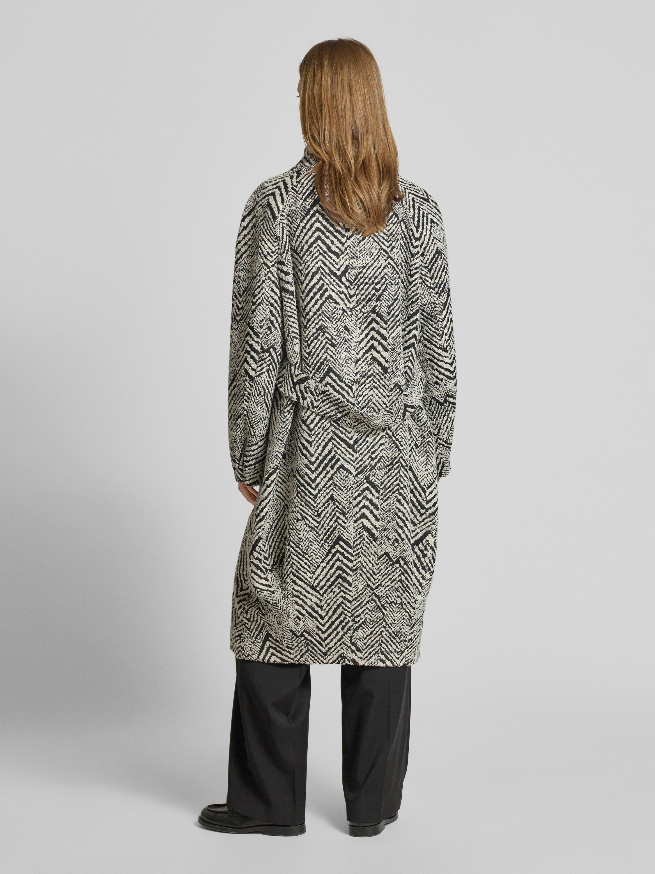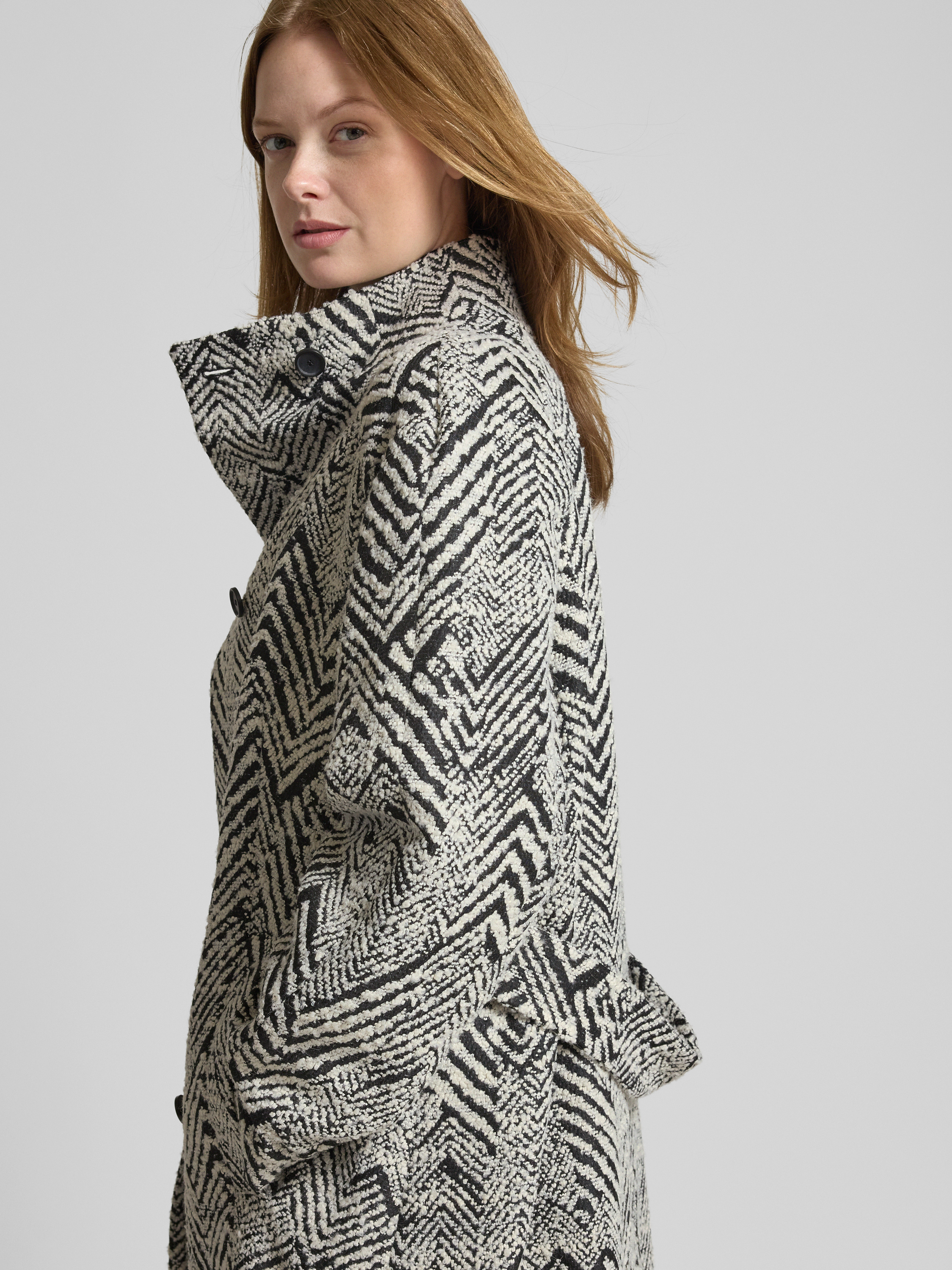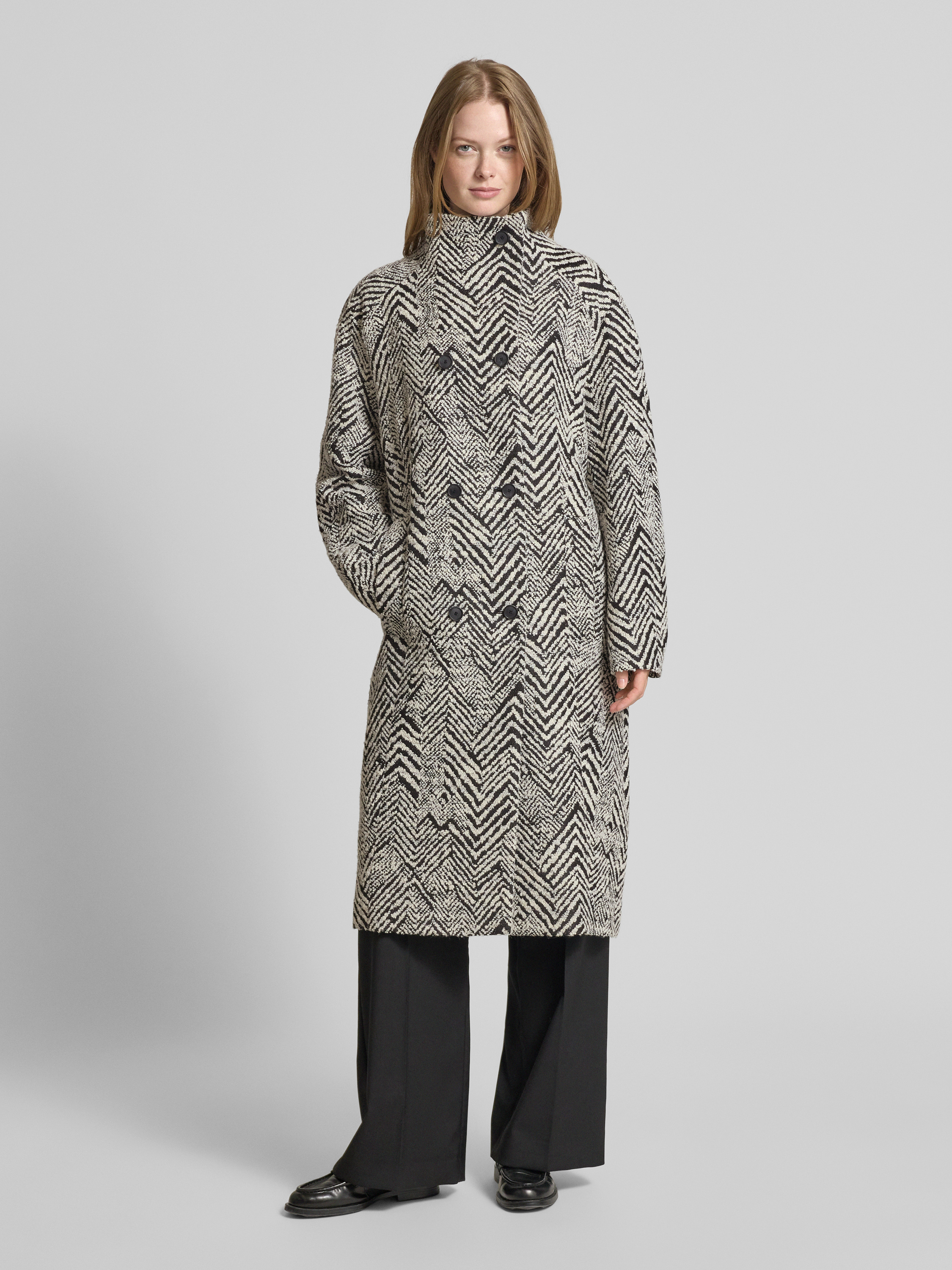 Der Regular Fit Mantel von BOSS, Modell Cavinia, vereint ein klassisches Fischgrätmuster mit Bouclé-Struktur und zeichnet sich durch einen Anteil an Schurwolle aus. Dank Stehkragen und langen Ärmeln entsteht eine angenehme Passform, die vielseitig kombiniert werden kann. Leistentaschen ergänzen das durchdachte Design.