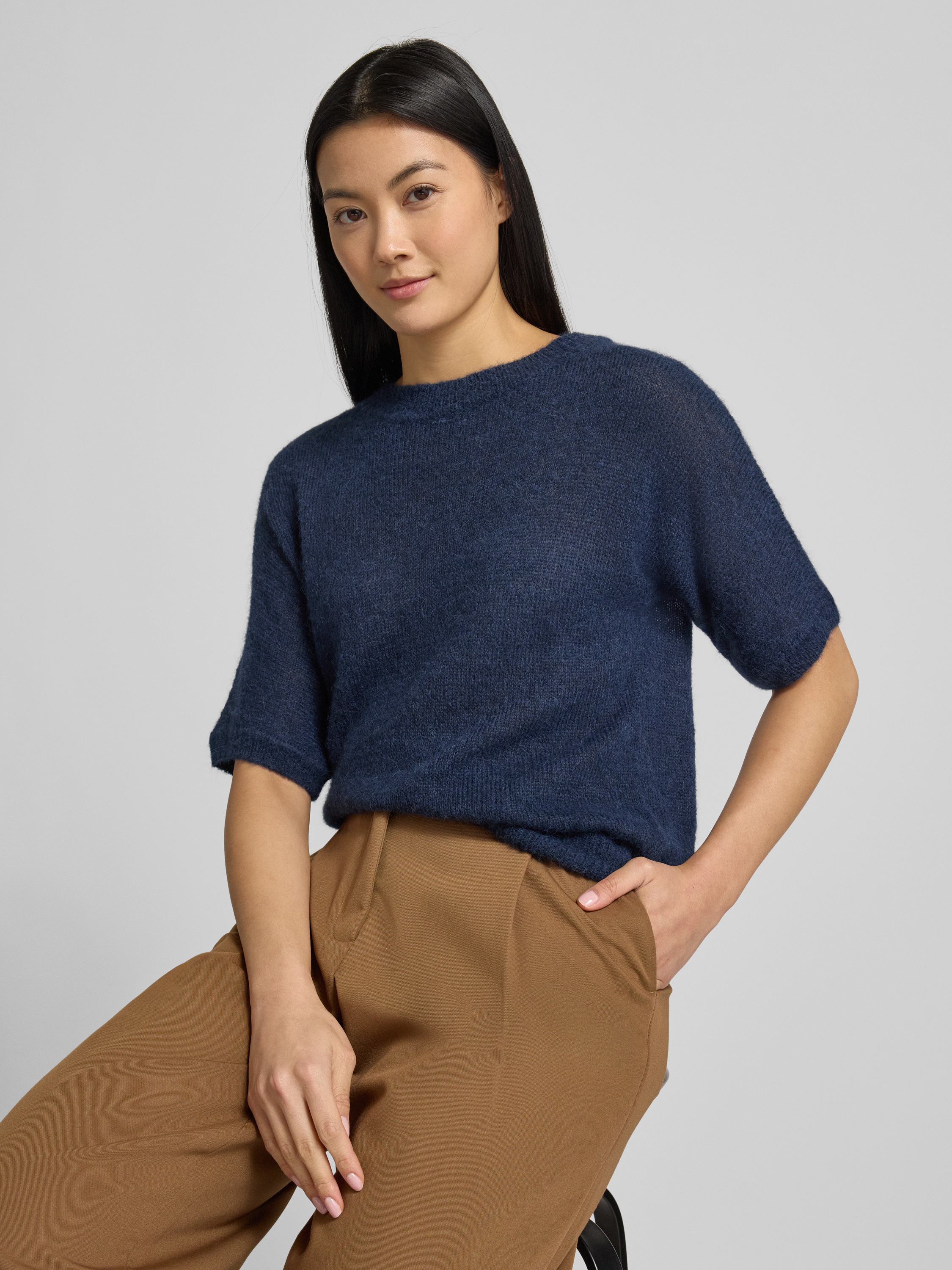 Das Damen Strickshirt von BOSS, Modell Fancer, zeichnet sich durch eine unifarbene Optik und eine bequeme Regular-Fit-Passform aus. Die Materialverarbeitung im Alpaka-Mix sorgt für ein angenehmes Hautgefühl und unterstützt ein ausgeglichenes Trageklima. Kurze Ärmel und ein klassischer Crew Neck machen das Shirt vielseitig kombinierbar.
