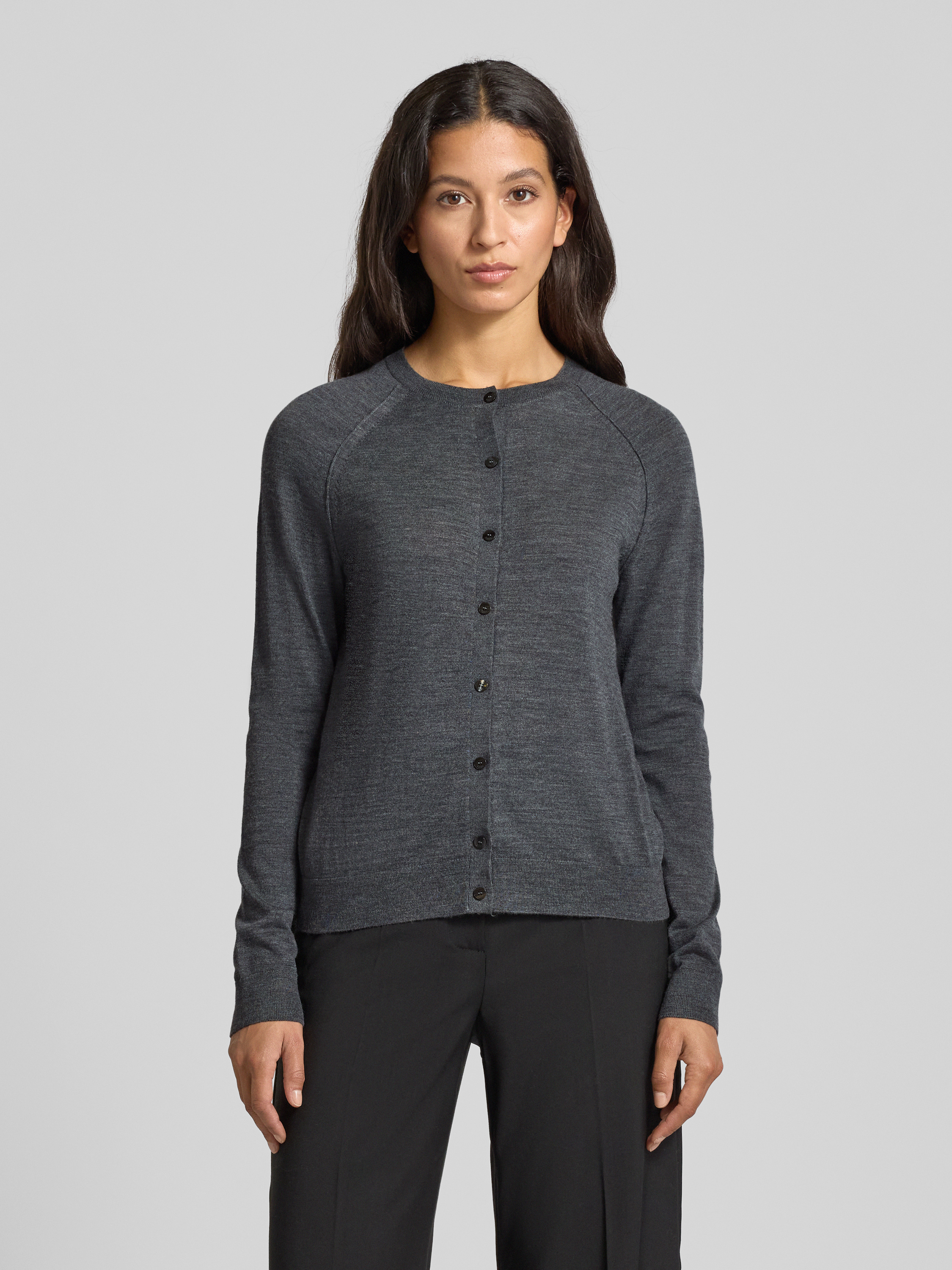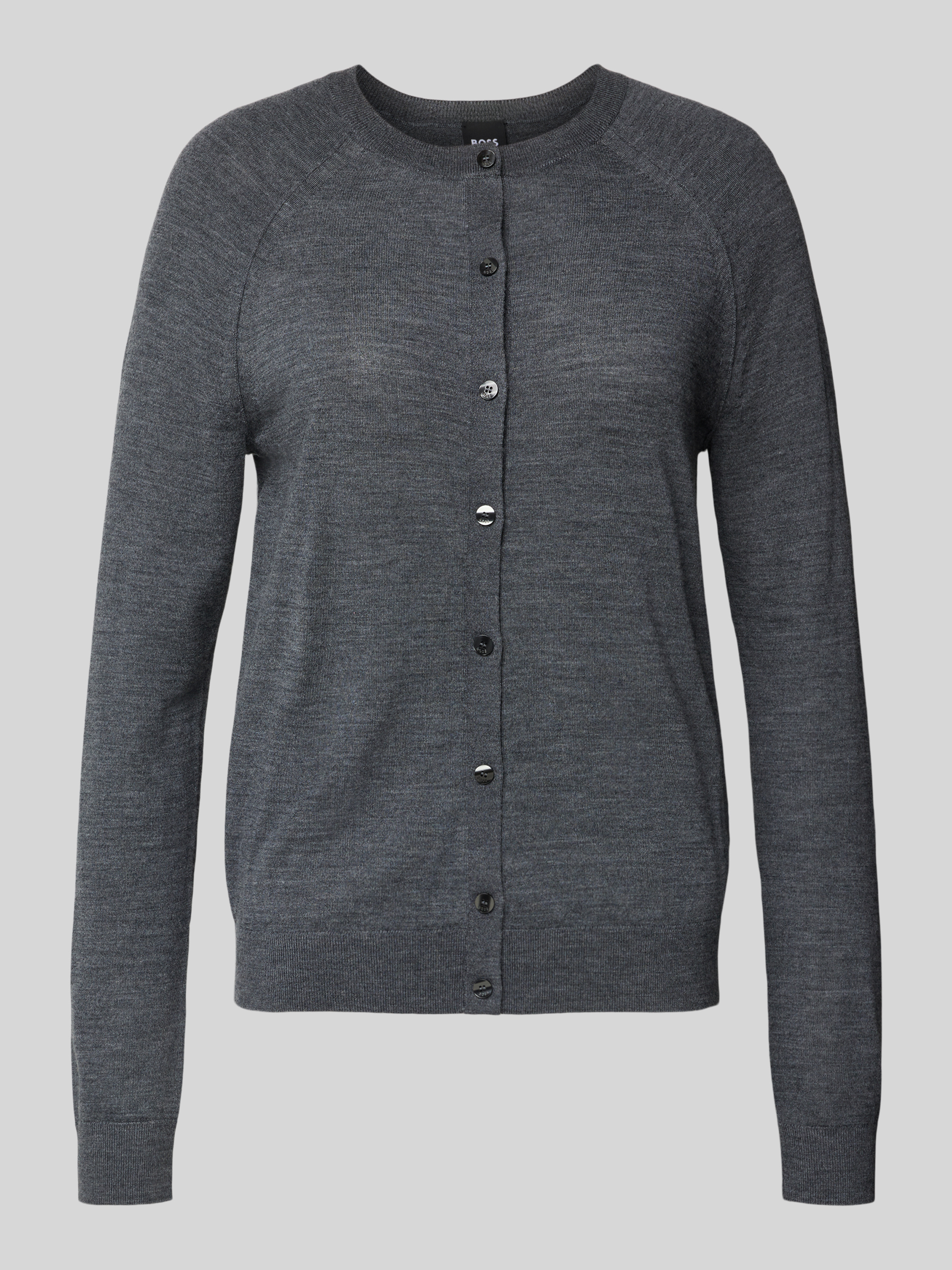 BOSSRegular Fit Strickjacke aus reiner Schurwolle Modell 'FONAMI' in dunkelgrau melange