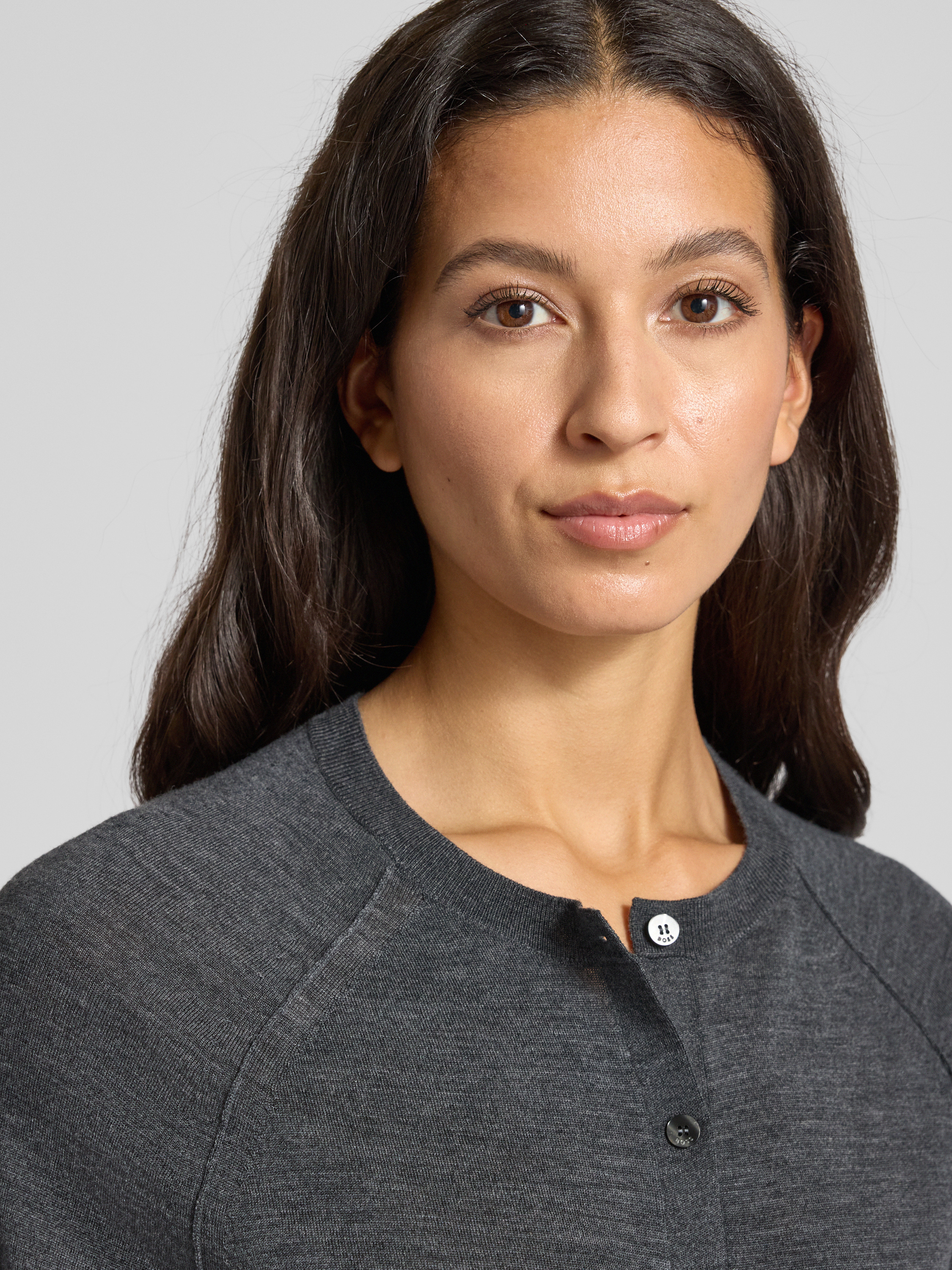Die Damen Strickjacke von BOSS, Modell 'Fonami', kombiniert eine Melange-Optik mit Regular-Fit-Passform und bringt damit einen entspannten Charakter in den Alltag. Gefertigt aus reiner Schurwolle, sorgt der Feinstrick für ein angenehmes Gefühl auf der Haut und wirkt feuchtigkeitsregulierend. Durch die Raglanärmel und den klassischen Rundhals entsteht Bewegungsfreiheit, sodass man flexibel bleibt und sich rundum wohlfühlt.