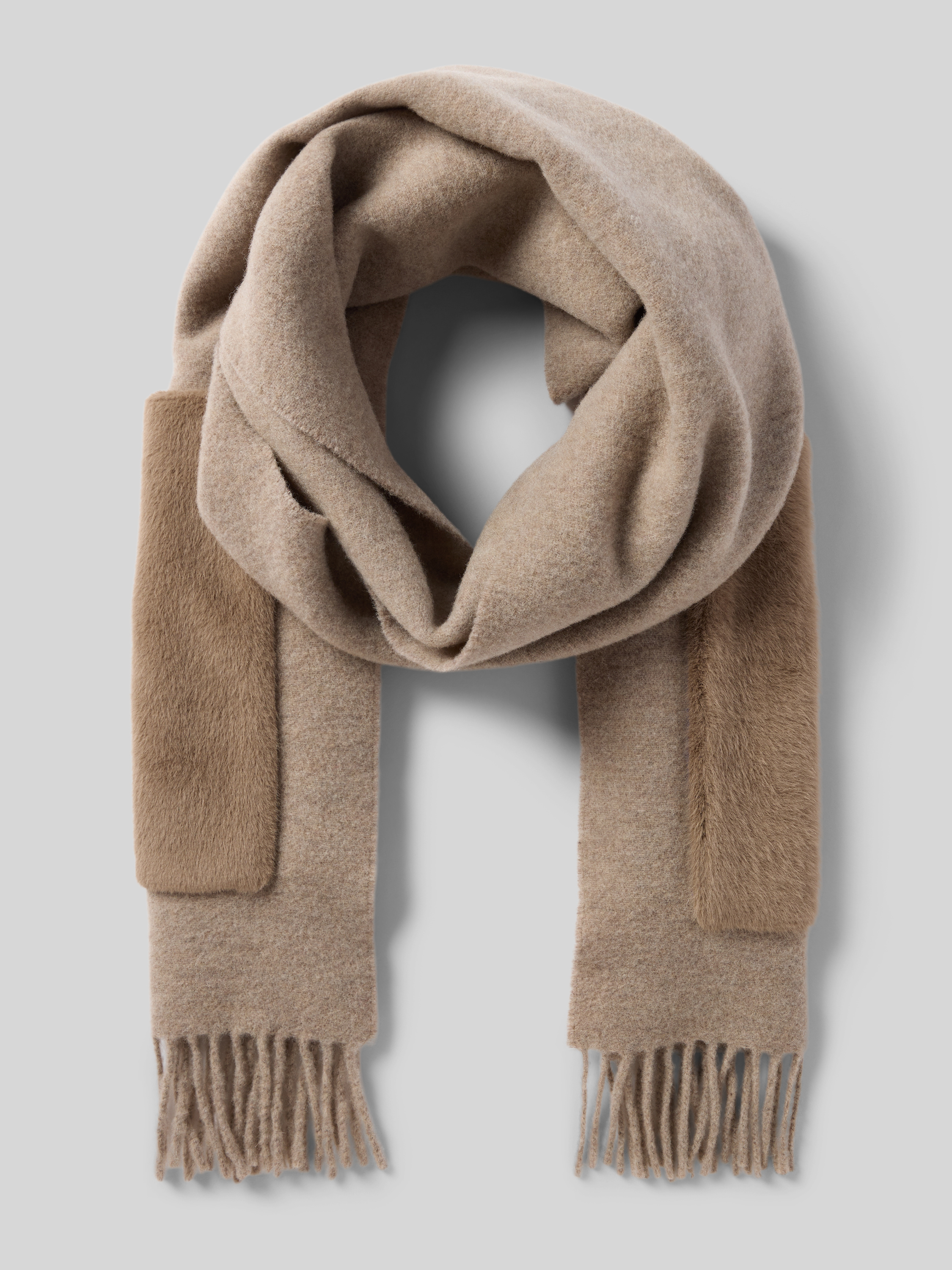 Der Damen Schal von BOSS, Modell 'Grayce', punktet mit einem weichen Woll-Mix, der für angenehmen Tragekomfort sorgt. Praktische aufgesetzte Eingrifftaschen und Fransen-Details lockern das klassische Design auf, während ein dezentes Logo-Detail einen stimmigen Akzent setzt. So lässt sich dieser Schal unkompliziert in den Alltag integrieren.