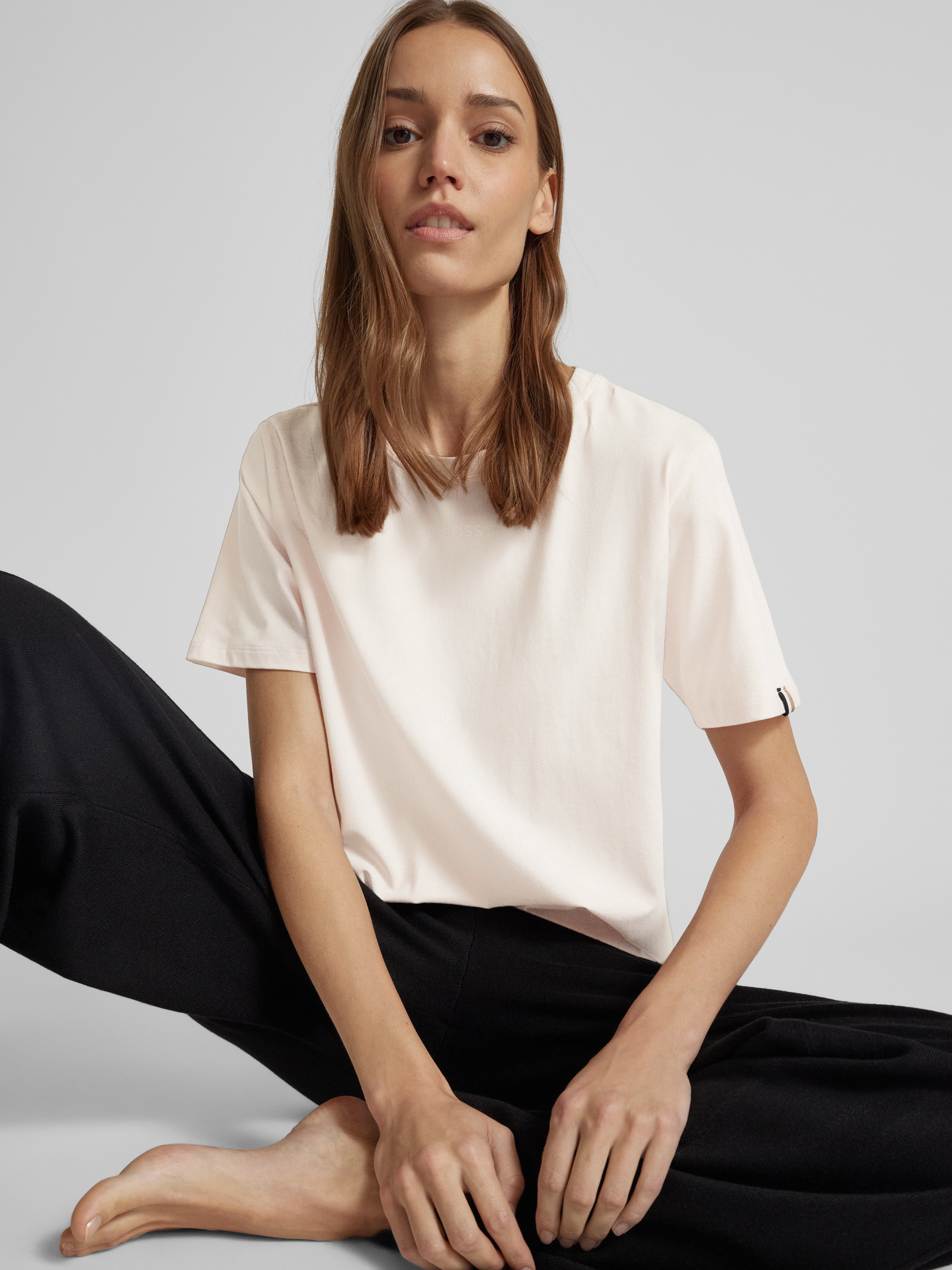 Das Damen T-Shirt von BOSS aus einem Baumwoll-Elastan-Mix vereint Komfort und Stil in einem lässigen, geraden Schnitt. Der Rundhalsausschnitt sorgt für eine angenehme Passform, während der dezente Label-Print dem Design eine moderne Note verleiht. Ideal für vielseitige Kombinationen im Alltag.