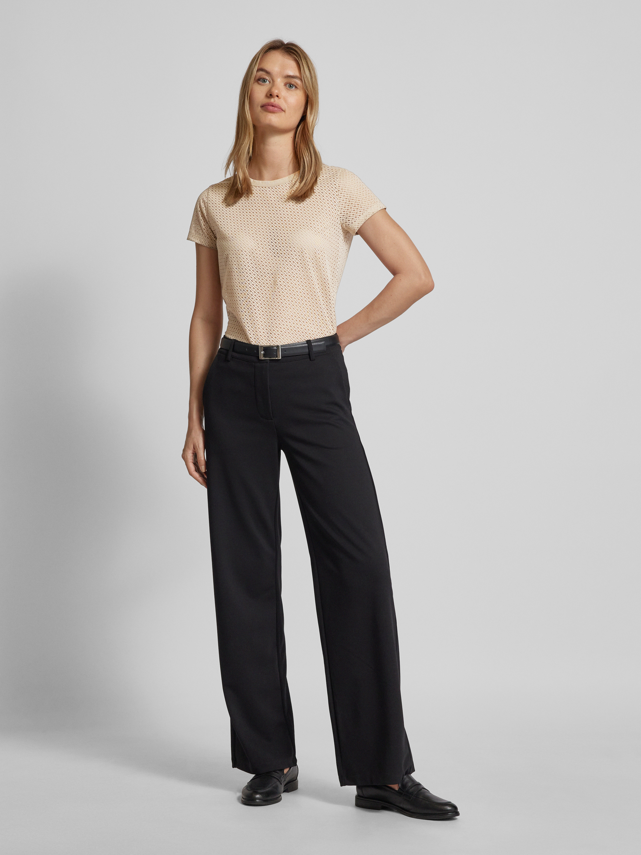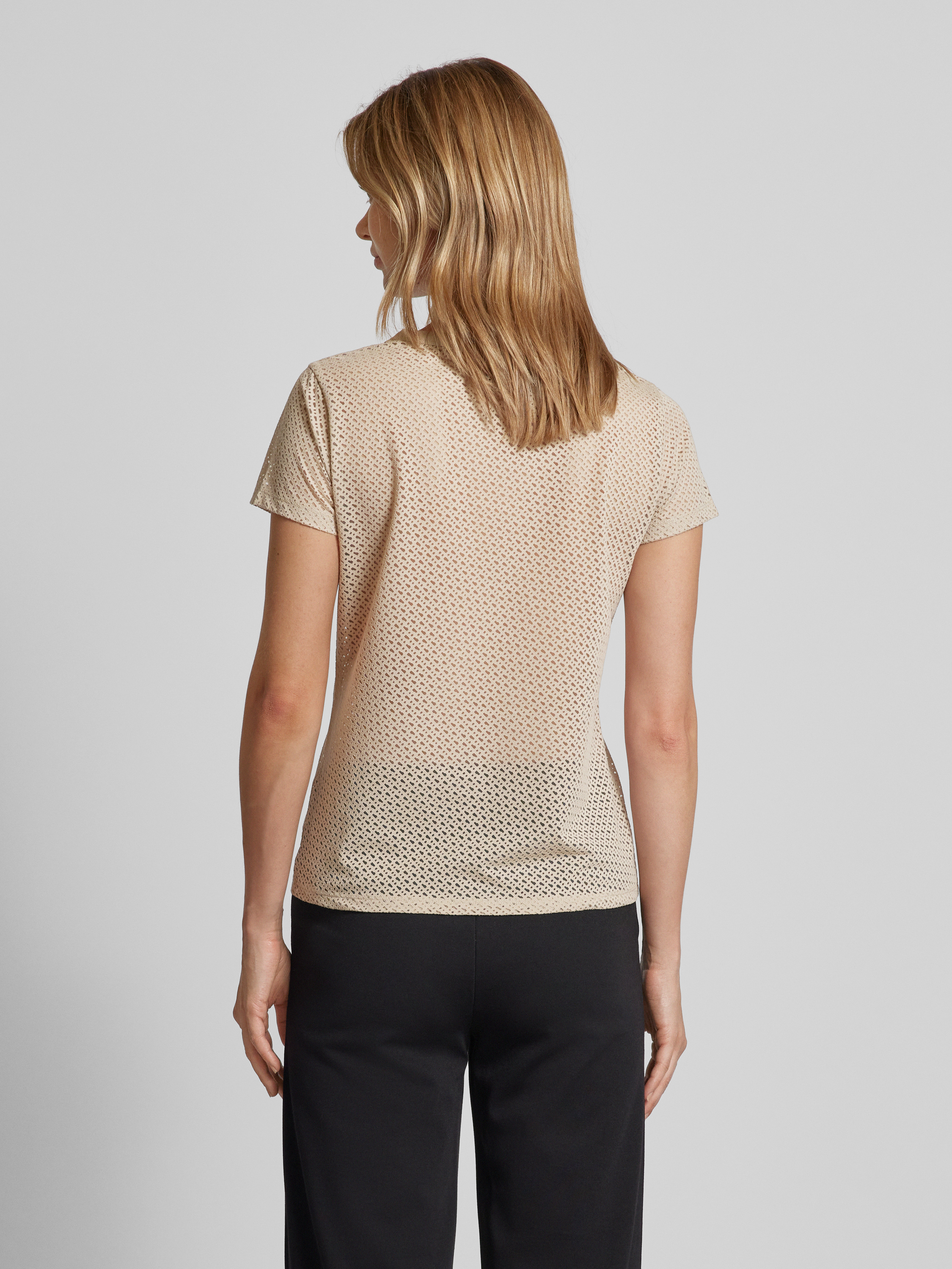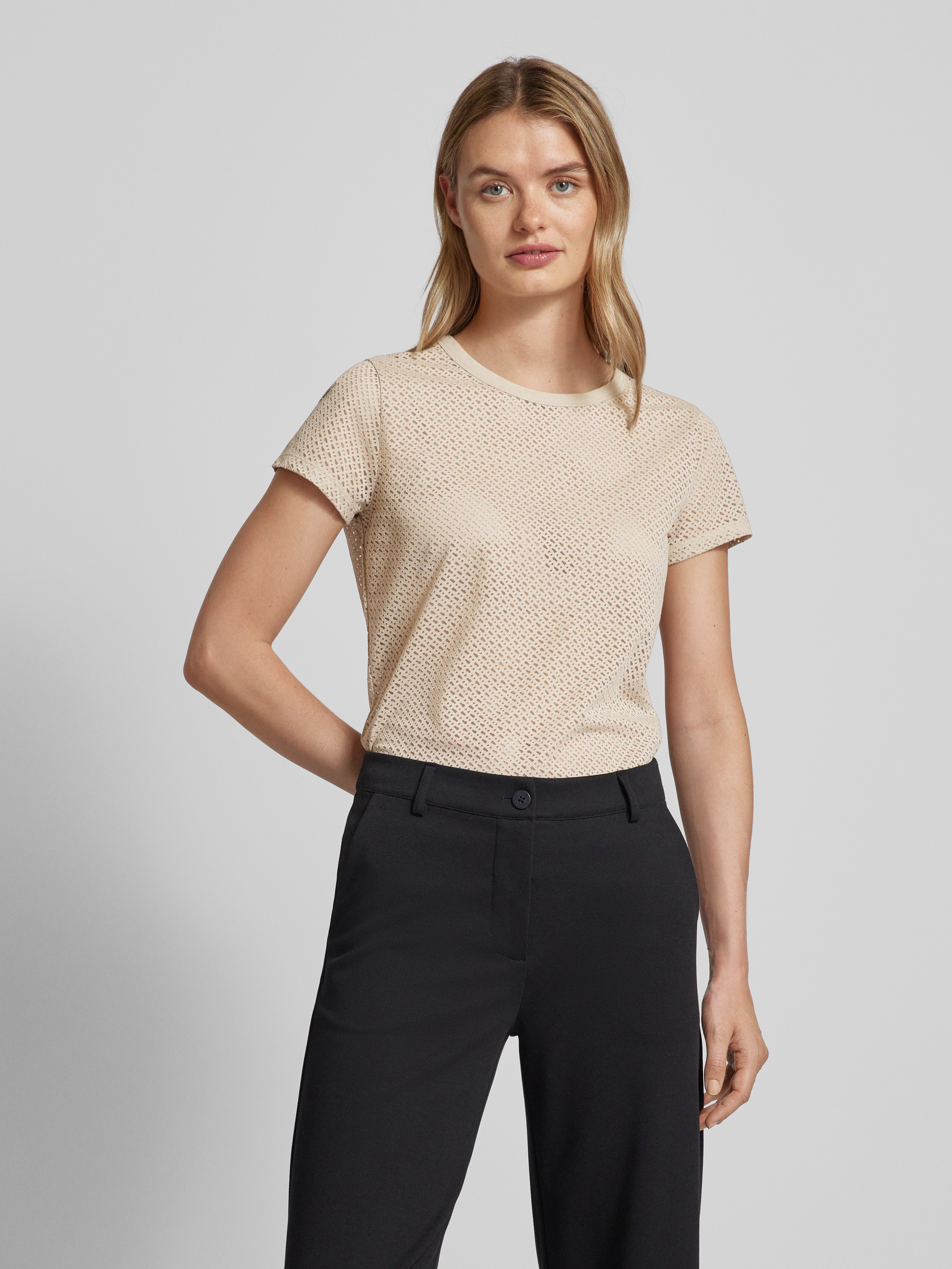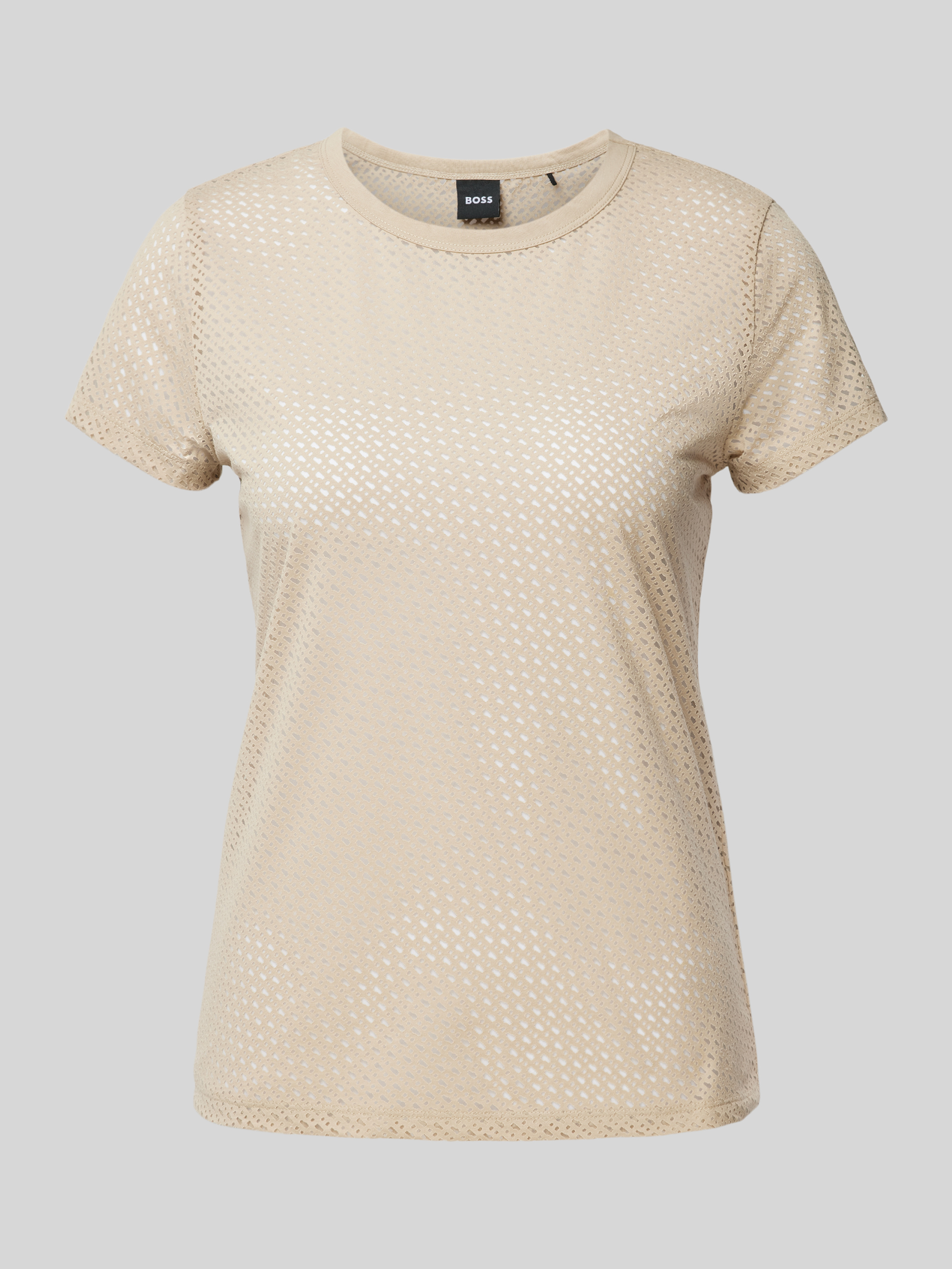 Das T-Shirt 'Eventsa_Burnout' von BOSS BLACK WOMEN vereint einen geraden Schnitt mit einem feinen Lochmuster, das dem unifarbenen Design eine interessante Note verleiht. Der weiche Baumwoll-Mix sorgt für angenehmen Tragekomfort, während der Rundhalsausschnitt eine klassische Optik bietet. Ideal für vielseitige Kombinationen im Alltag.