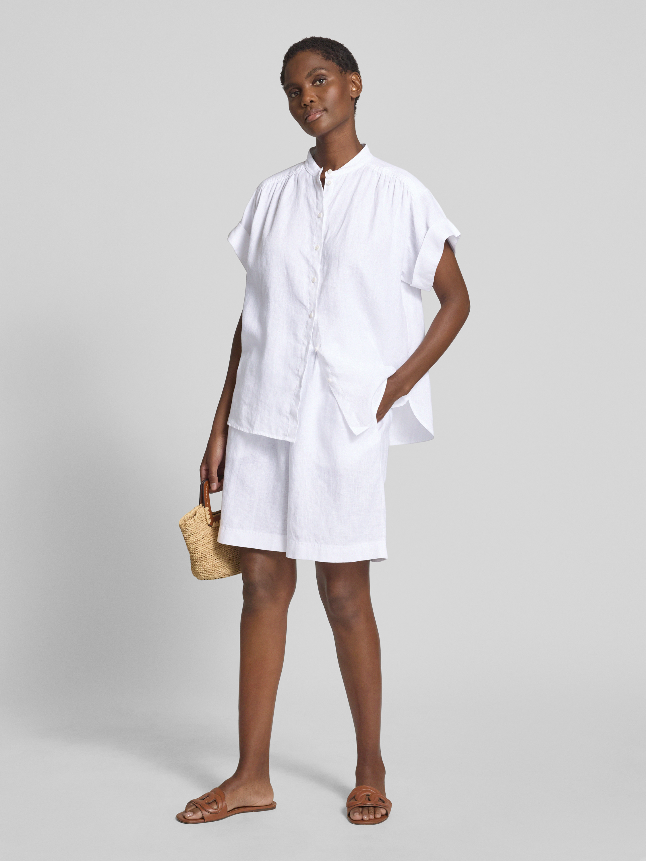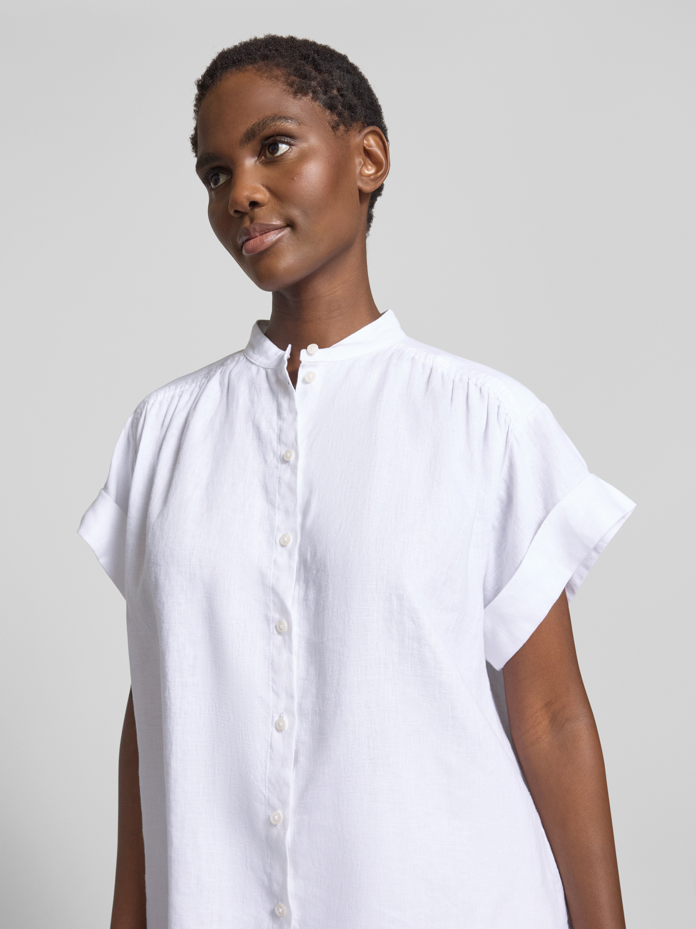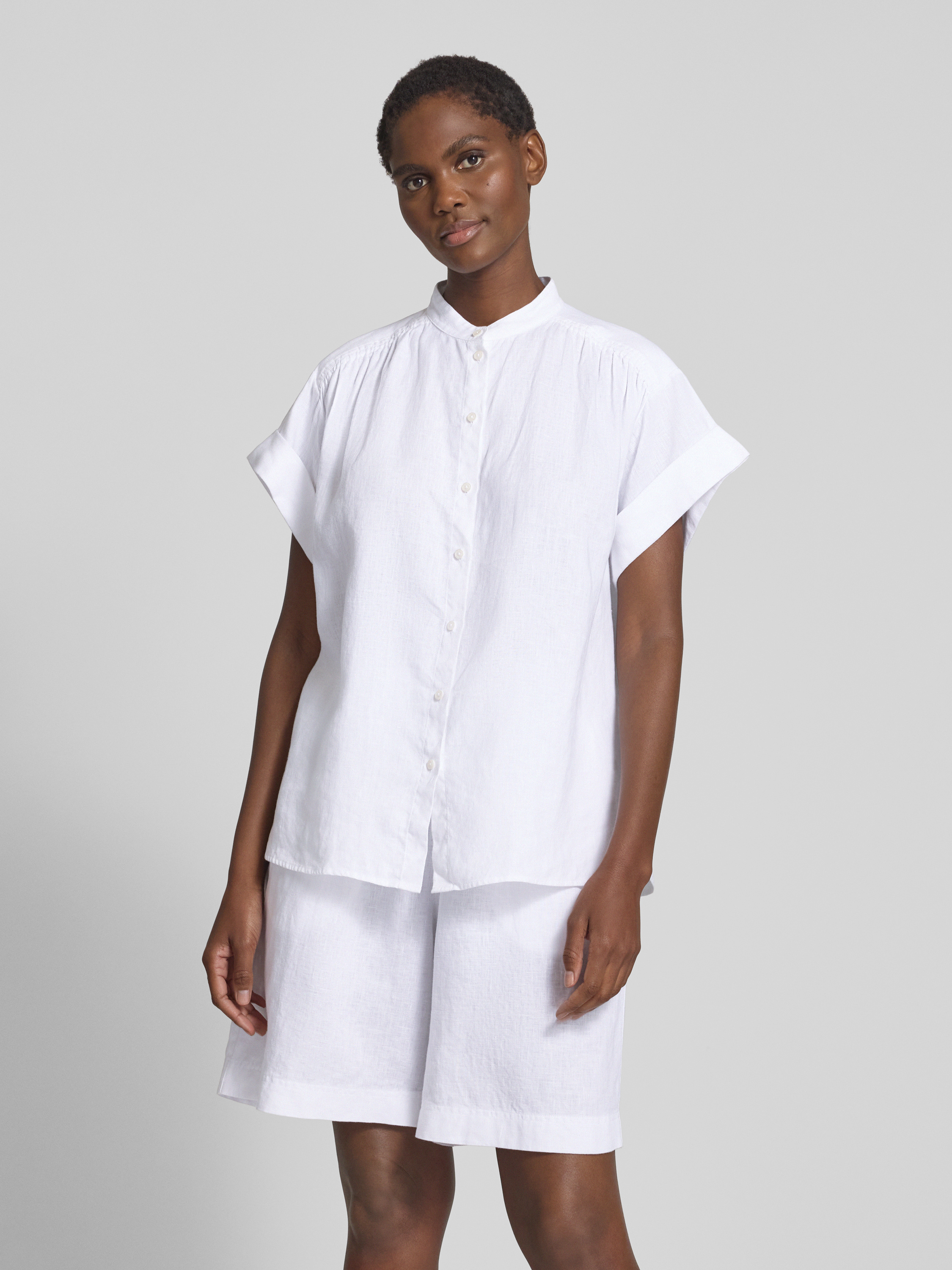 Die Loose Fit Hemdbluse von BOSS Orange aus reinem Leinen, Modell 'Boleana', kombiniert lässige Eleganz mit angenehmem Tragekomfort. Der Maokragen und die kurze Ärmellänge verleihen dem Design eine besondere Note, während das luftige Material an warmen Tagen für Wohlbefinden sorgt.