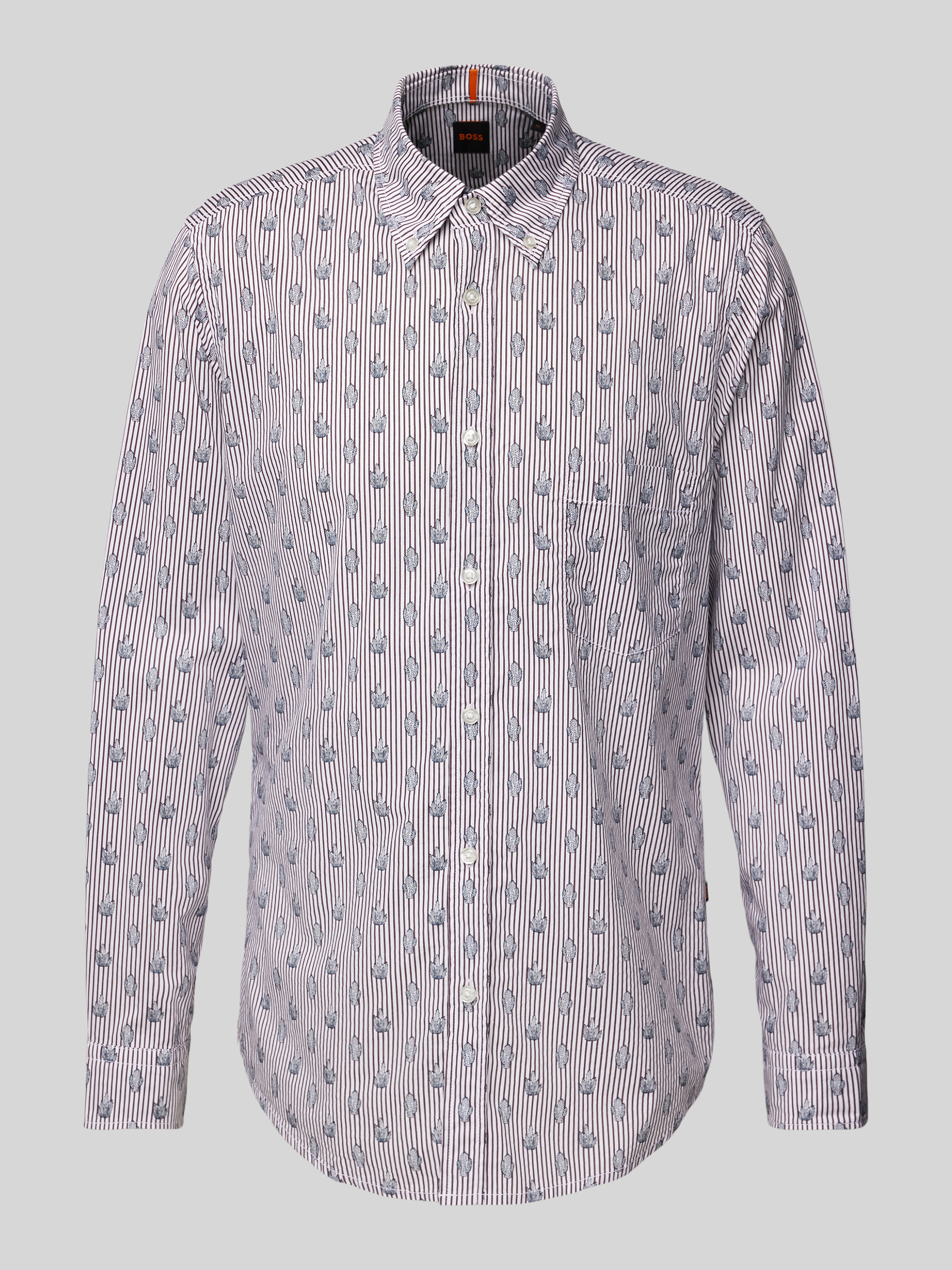 Das Herren Freizeithemd von BOSS Orange, Modell 'Rickert', aus reiner Baumwolle, eignet sich ideal für entspannte Tage. Der Regular Fit und der klassische Button-Down-Kragen sorgen für eine bequeme Passform. Eine Brusttasche ergänzt das Design funktional und stilvoll.