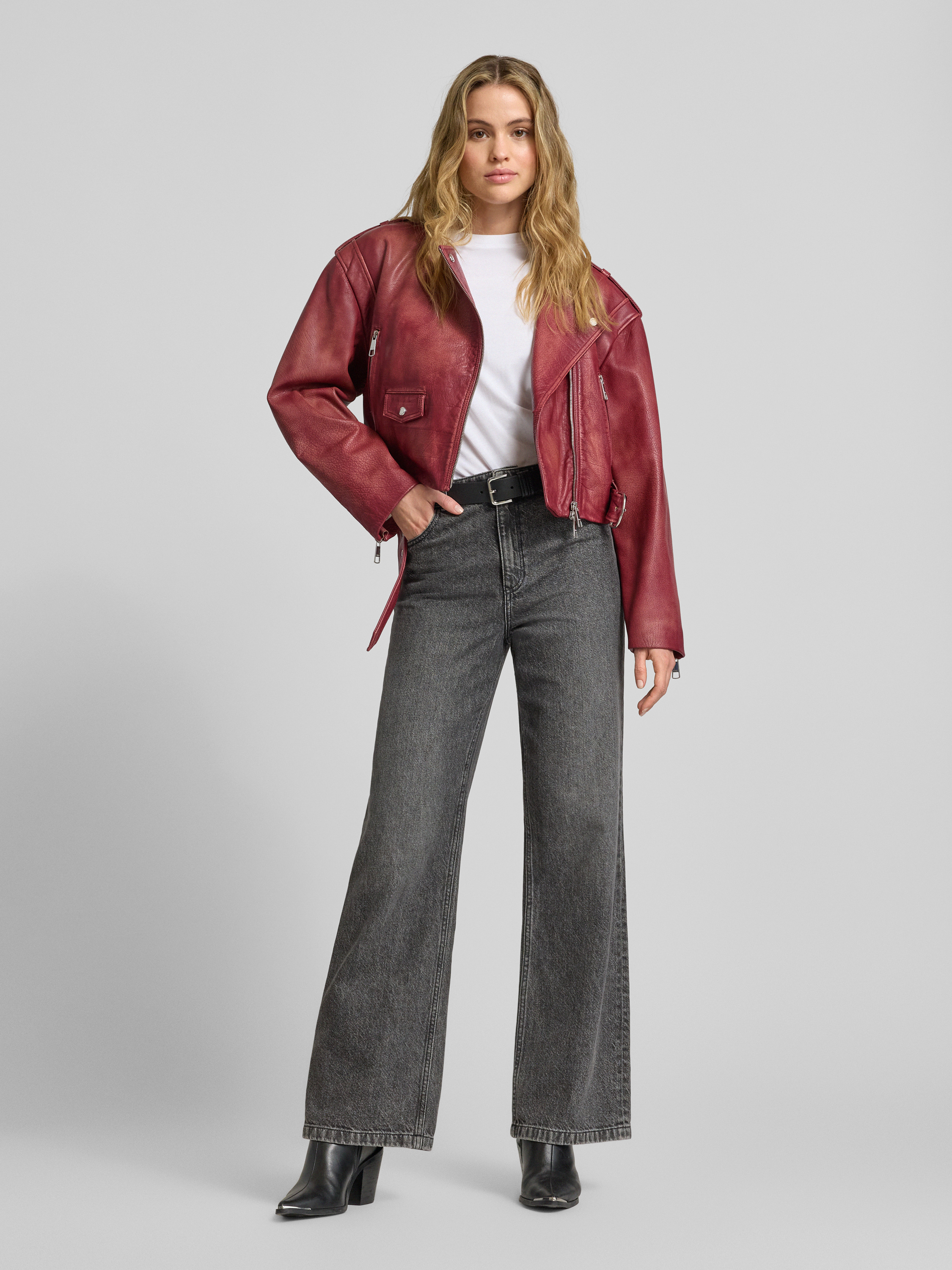 BOSS OrangeRegular Fit Lederjacke aus echtem Büffelleder Modell 'SADORA' in bordeaux