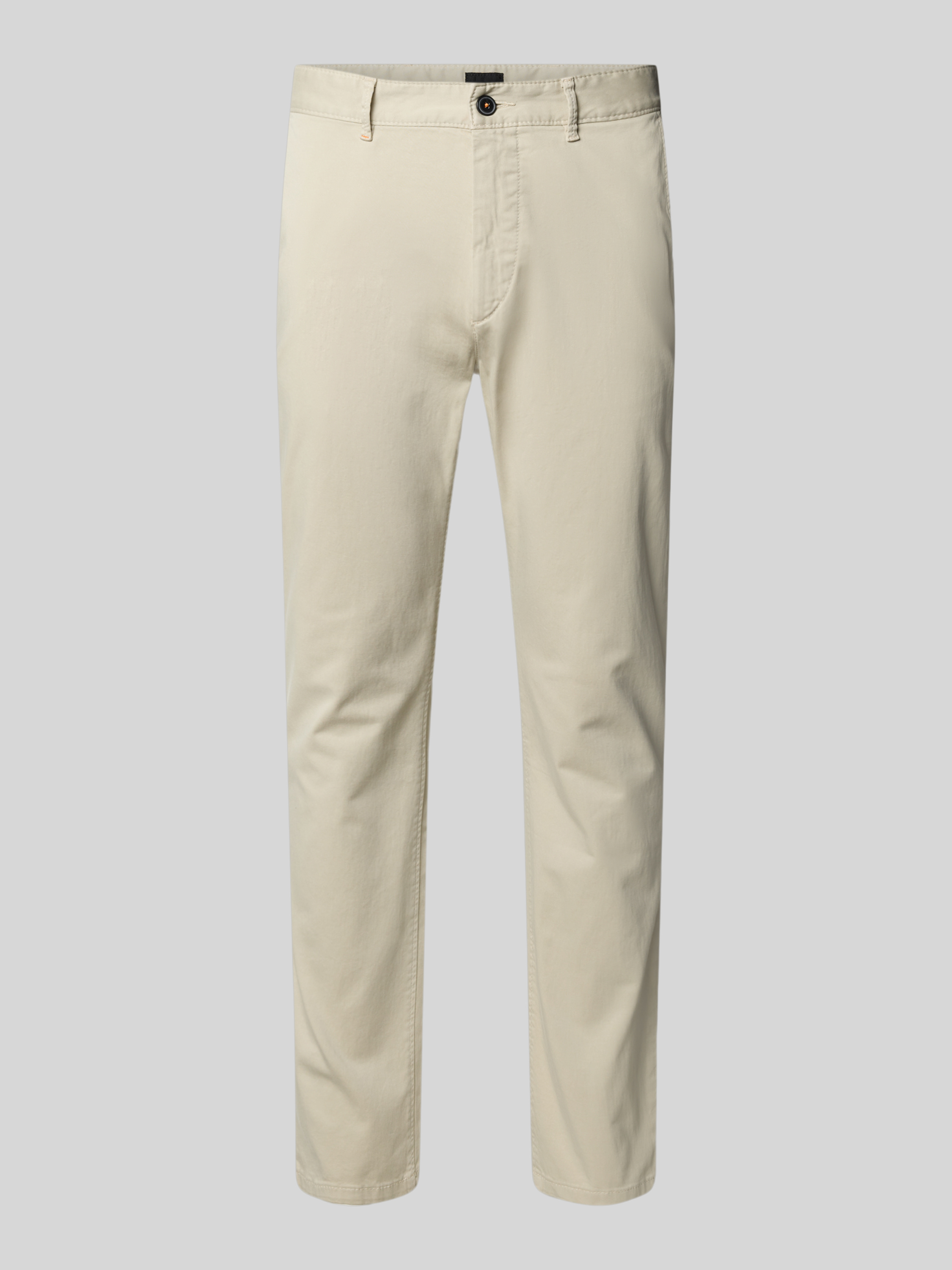 Die Herren Chino von BOSS Orange zeichnet sich durch ihre schmale Passform aus und sorgt für eine moderne Silhouette. Der unifarbene Baumwoll-Mix fühlt sich angenehm auf der Haut an, während seitliche Eingrifftaschen und Gesäßleistentaschen praktische Details für den Alltag schaffen. Gürtelschlaufen ermöglichen vielseitige Kombinationsmöglichkeiten.
