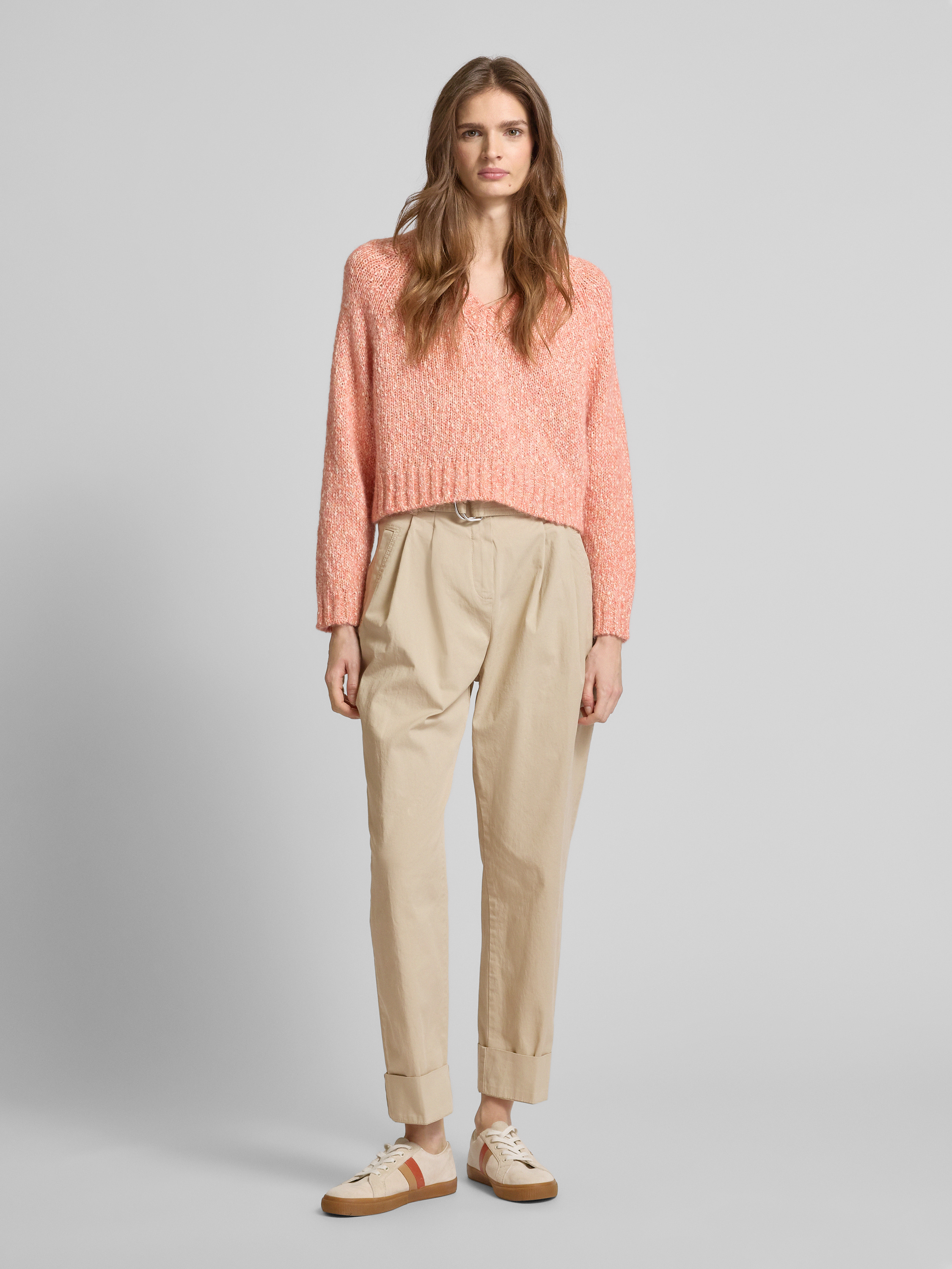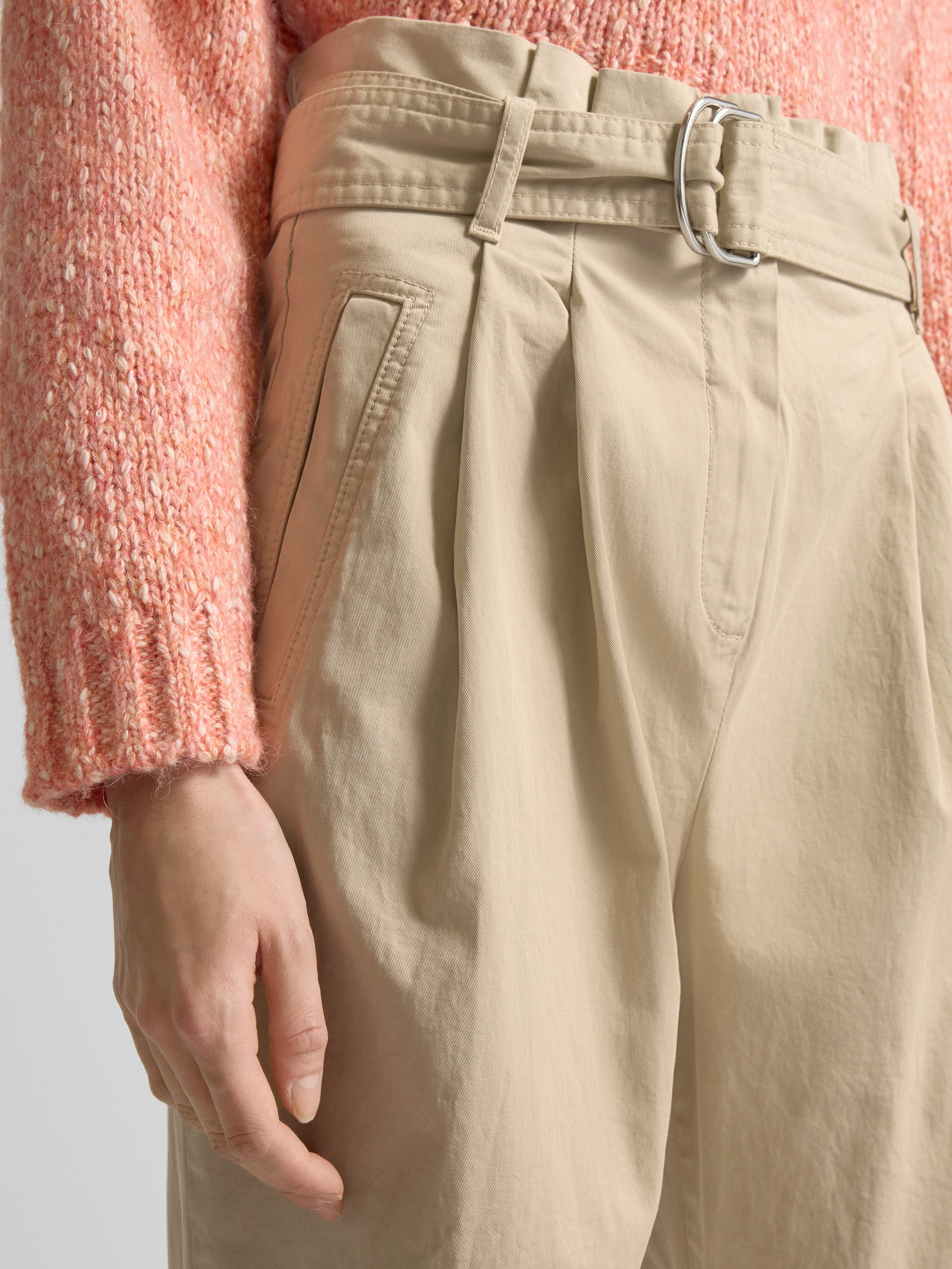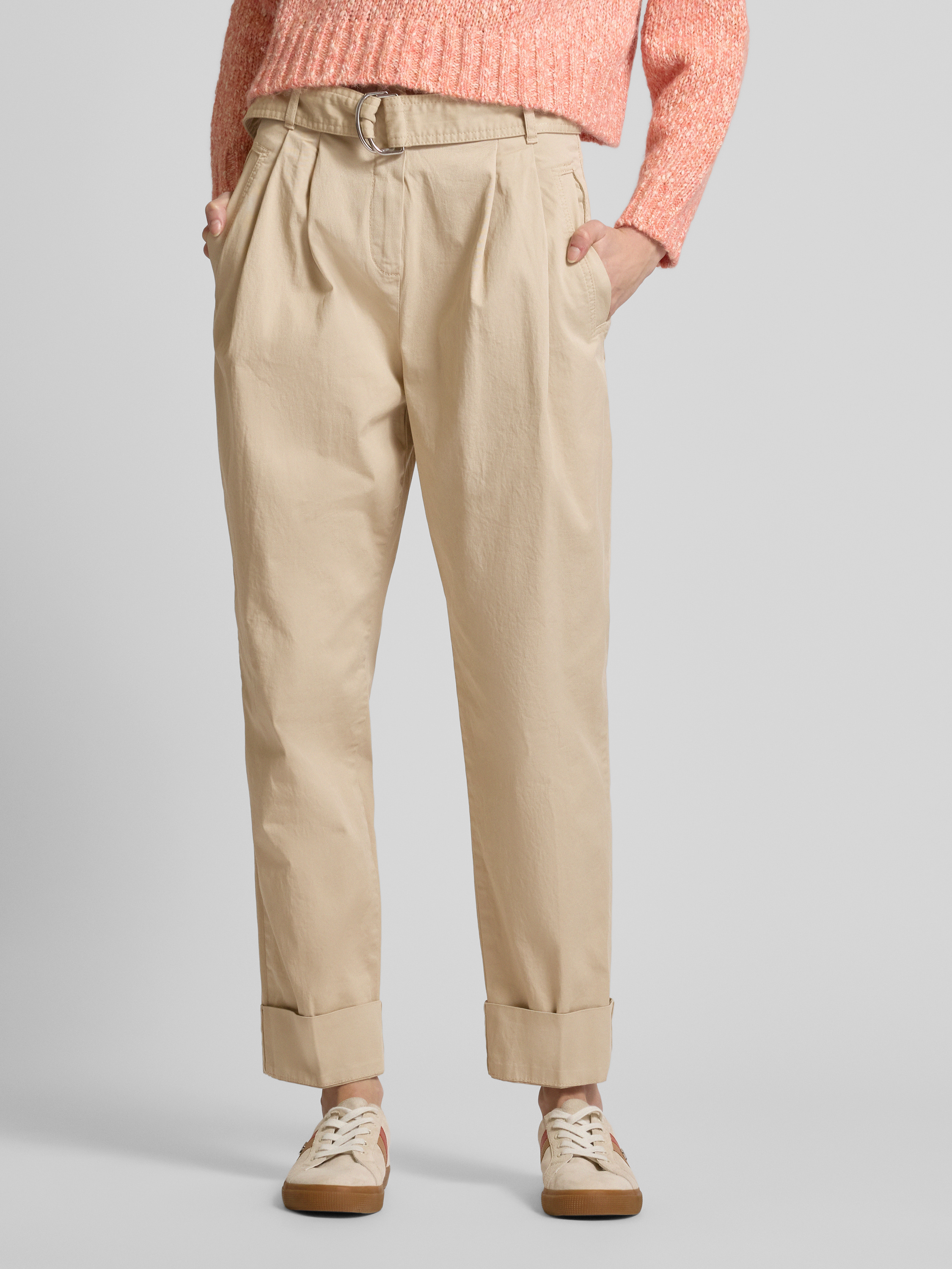 BOSS OrangeStraight Fit Stoffhose mit Bundfalten Modell 'Tashaina' in sand