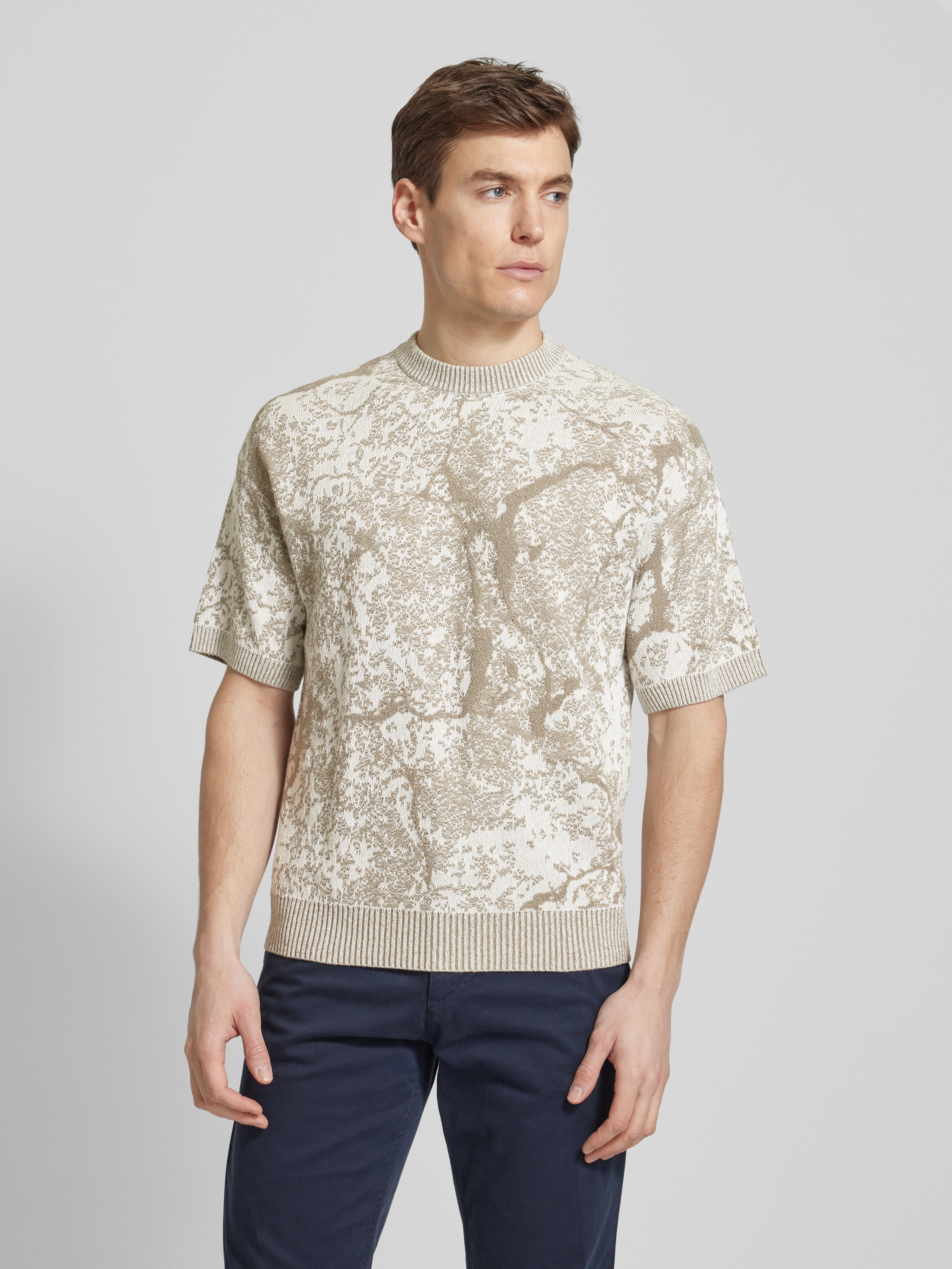 BOSS OrangeT-Shirt mit Stehkragen Modell 'Krocato' in sand