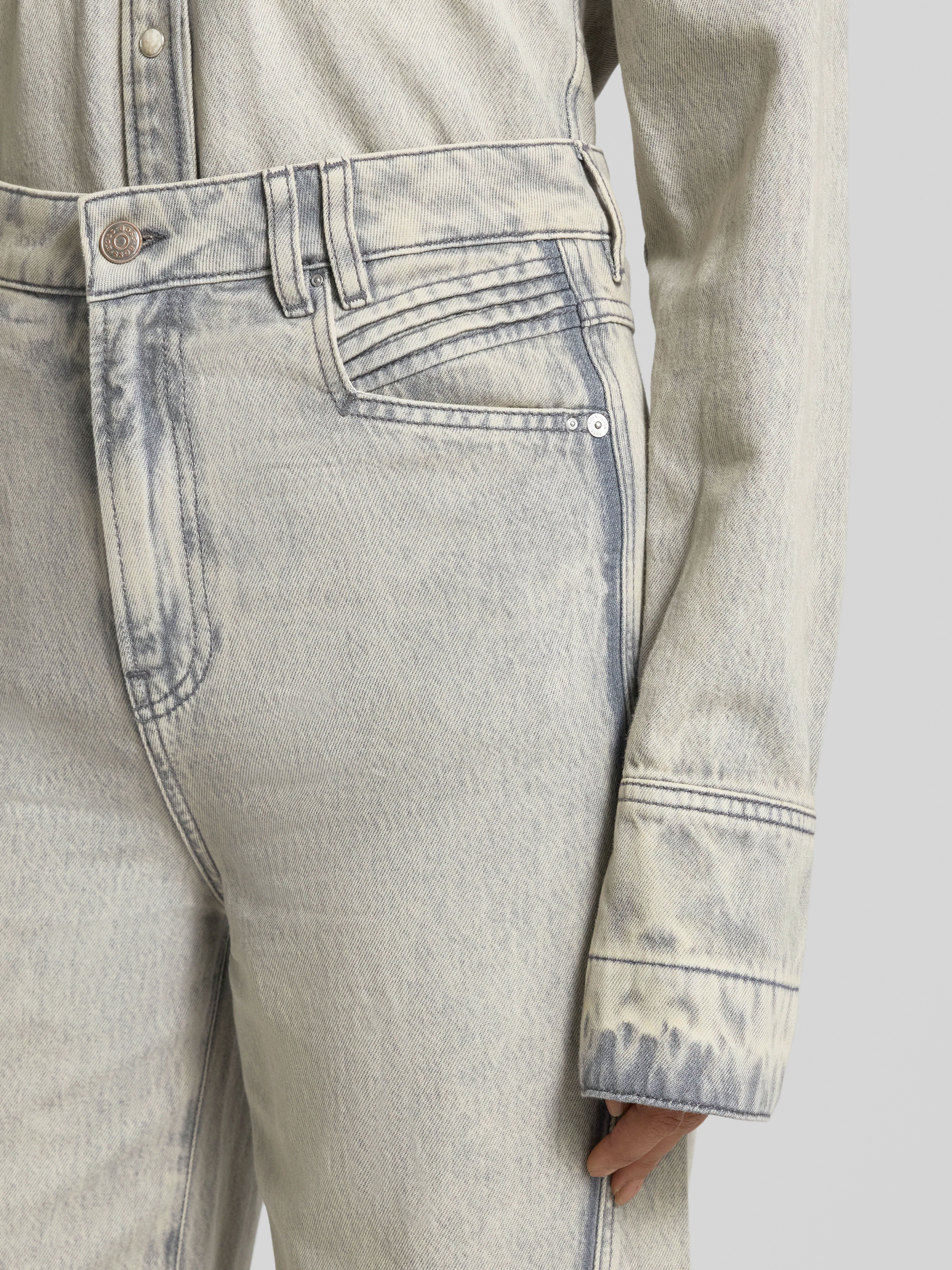 Die Damenhose von BOSS Orange, Modell Marlene, zeigt sich mit weitem Beinverlauf und hoher Taille und sorgt so für eine entspannte Silhouette. Der Baumwoll-Lyocell-Mix fühlt sich angenehm an und unterstützt den legeren Charakter des Melange-Denims. Praktische Taschen ergänzen das vielseitige Design.