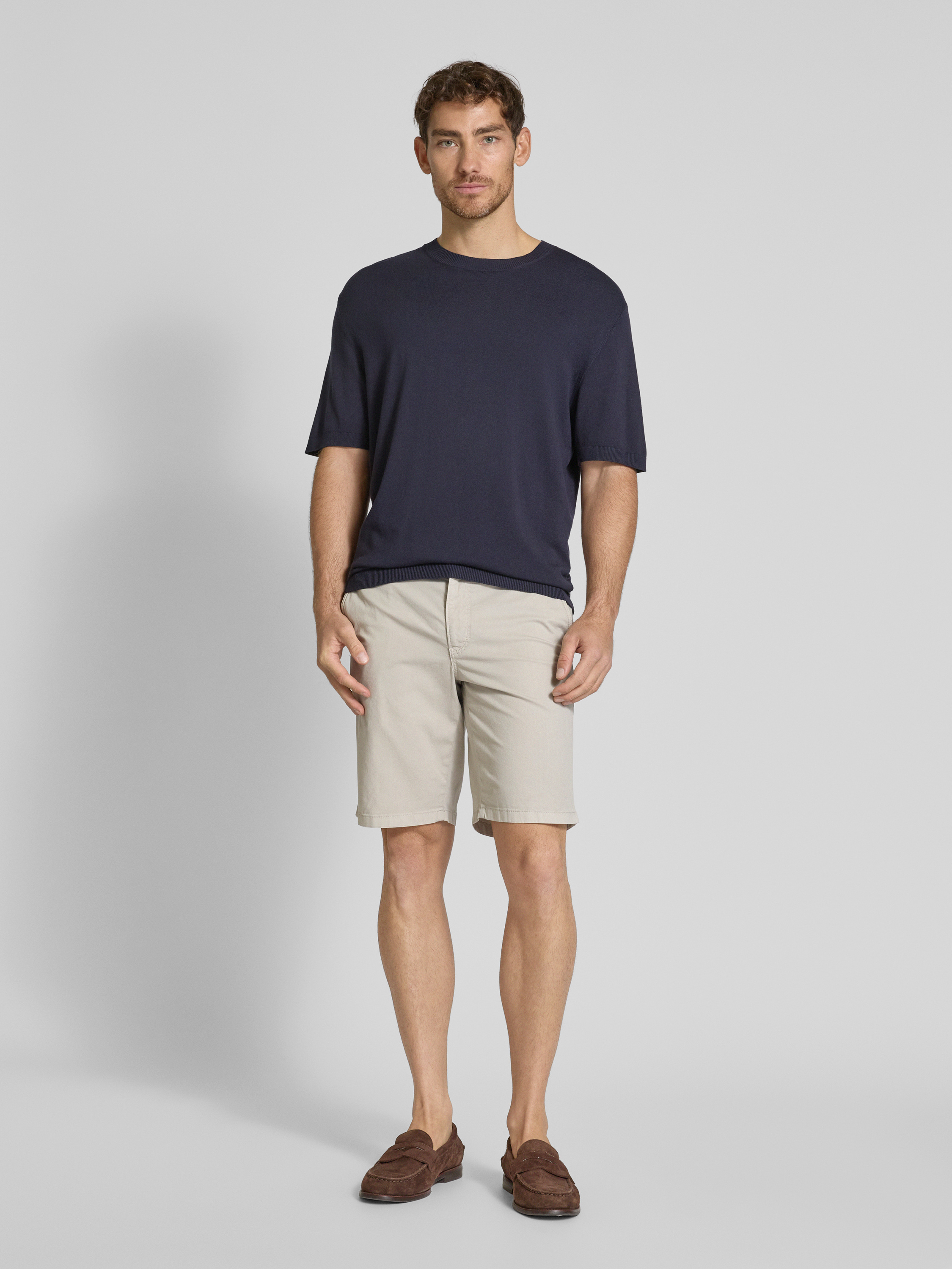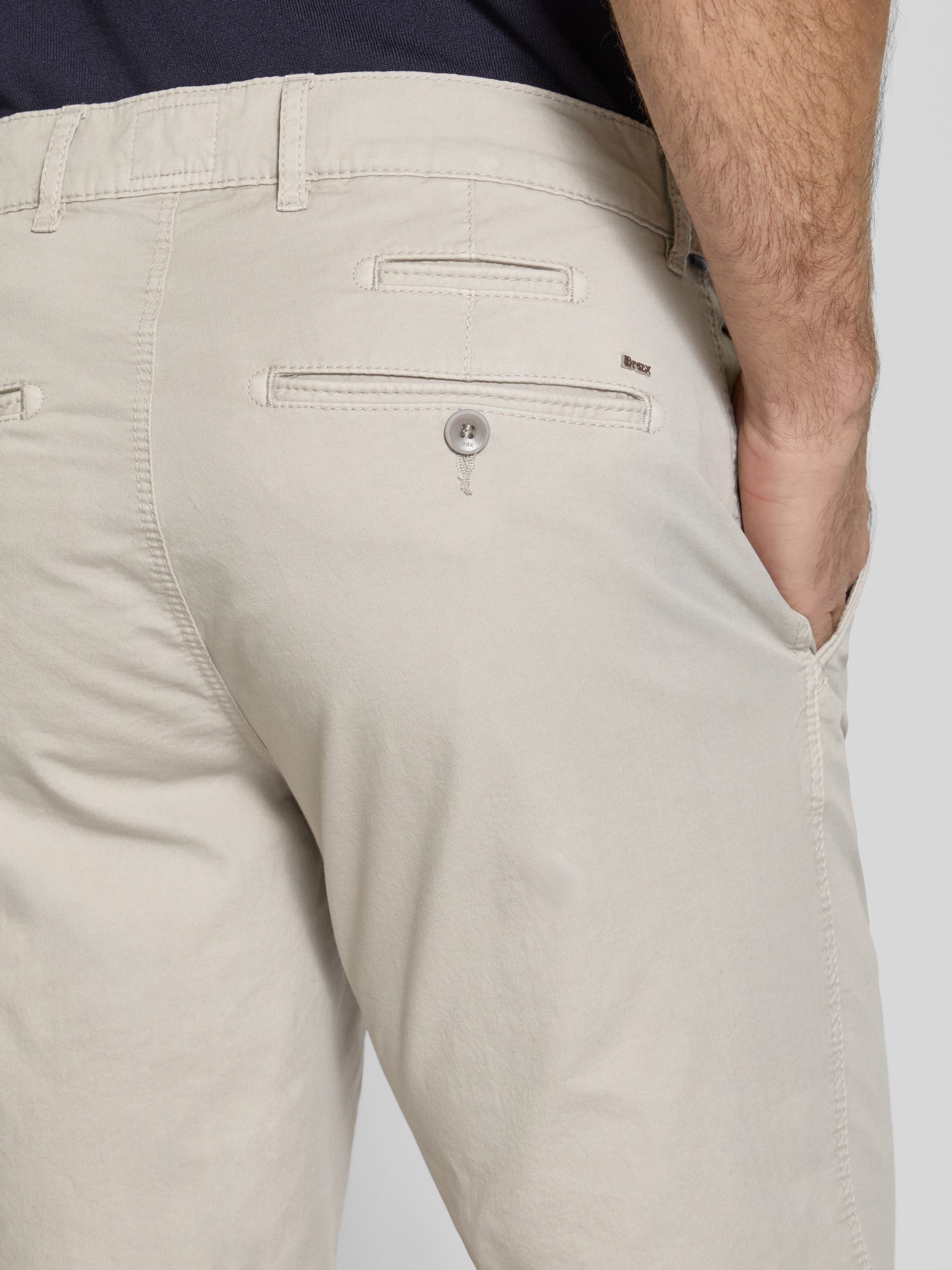 Die Bermudas von Brax, Modell 'BARI', zeichnen sich durch ihren angenehmen Baumwoll-Elasthan-Mix aus, der für einen bequemen Regular Fit sorgt. Dank der praktischen Eingrifftaschen kann man kleinere Gegenstände stets griffbereit haben. Ideal für entspannte Tage im Freien.