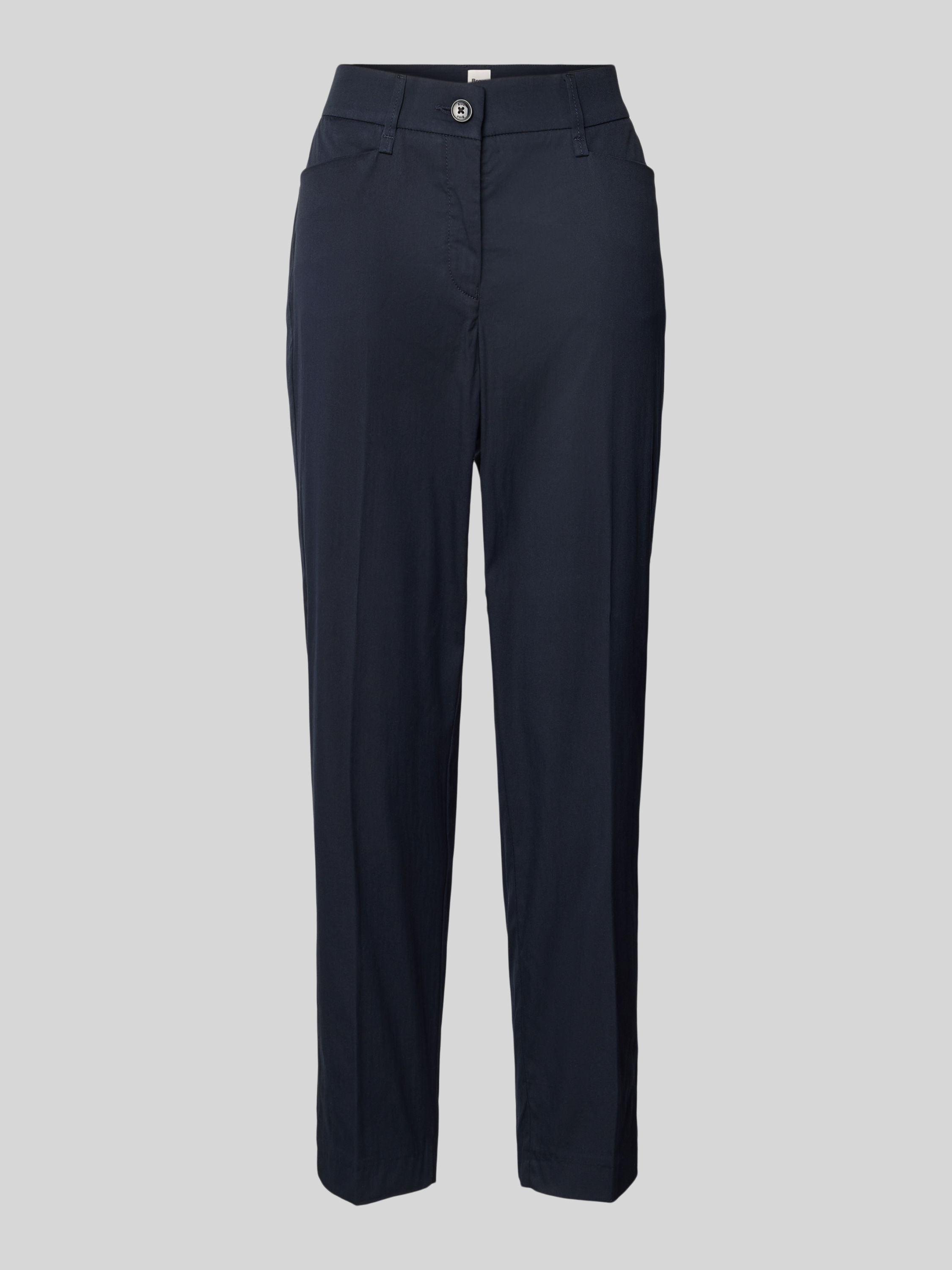 Die Hose 'MARA' von Brax kombiniert durch ihren Baumwoll-Mix mit Stretch-Anteil ein angenehmes Tragegefühl mit optimaler Bewegungsfreiheit. Die verkürzte Passform und die praktischen Eingrifftaschen machen sie zu einem vielseitigen Begleiter für jeden Tag, der stilvoll und bequem ist.