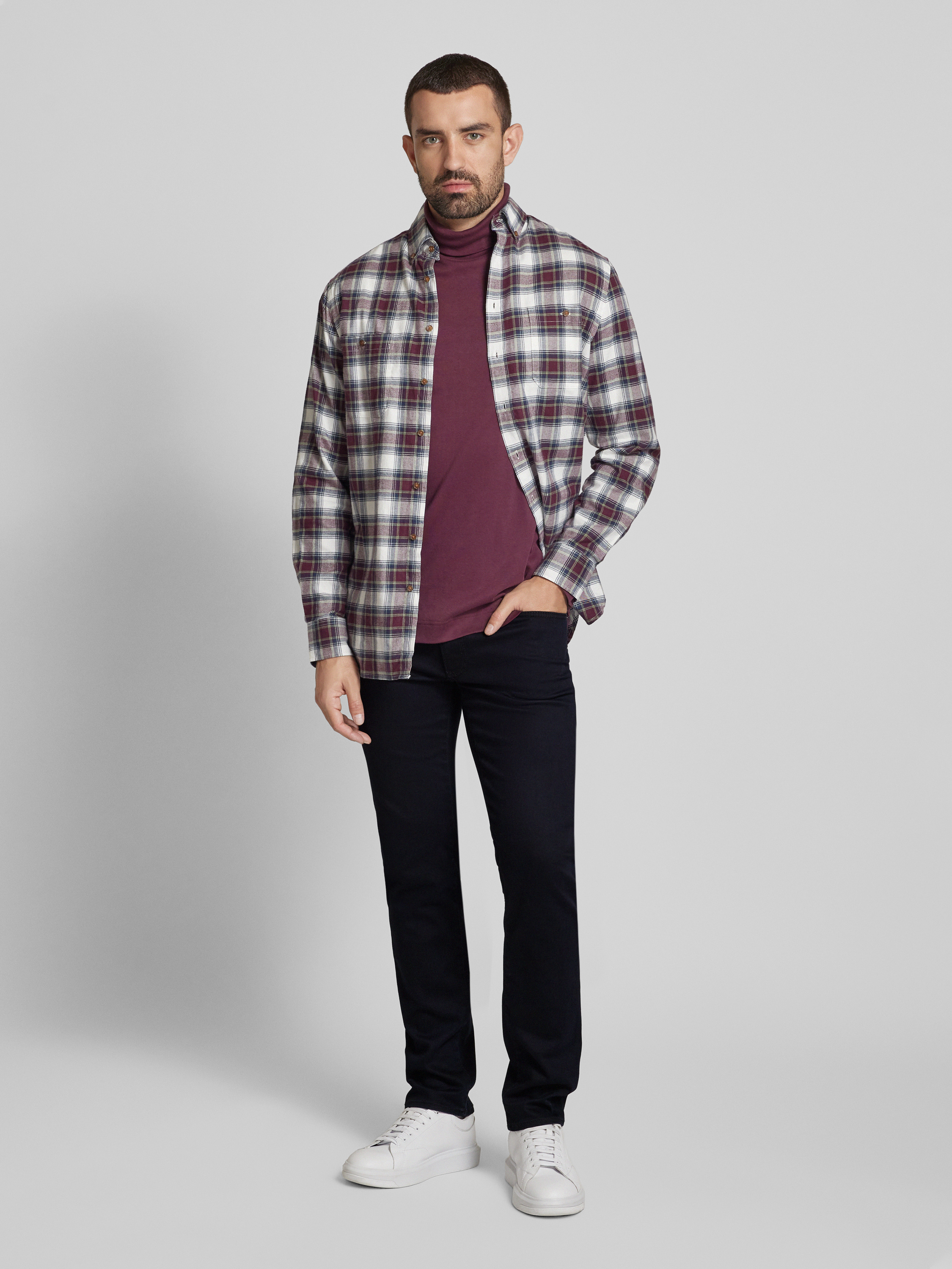Die Herren Jeans von BRAX, Modell 'CHUCK', vereint Komfort und Vielseitigkeit durch ihren geraden Schnitt und das klassische 5-Pocket-Design. Der Baumwoll-Mix mit Modal-Anteil sorgt für ein angenehmes Tragegefühl. Diese Hose eignet sich ideal für einen lässigen Alltagslook.