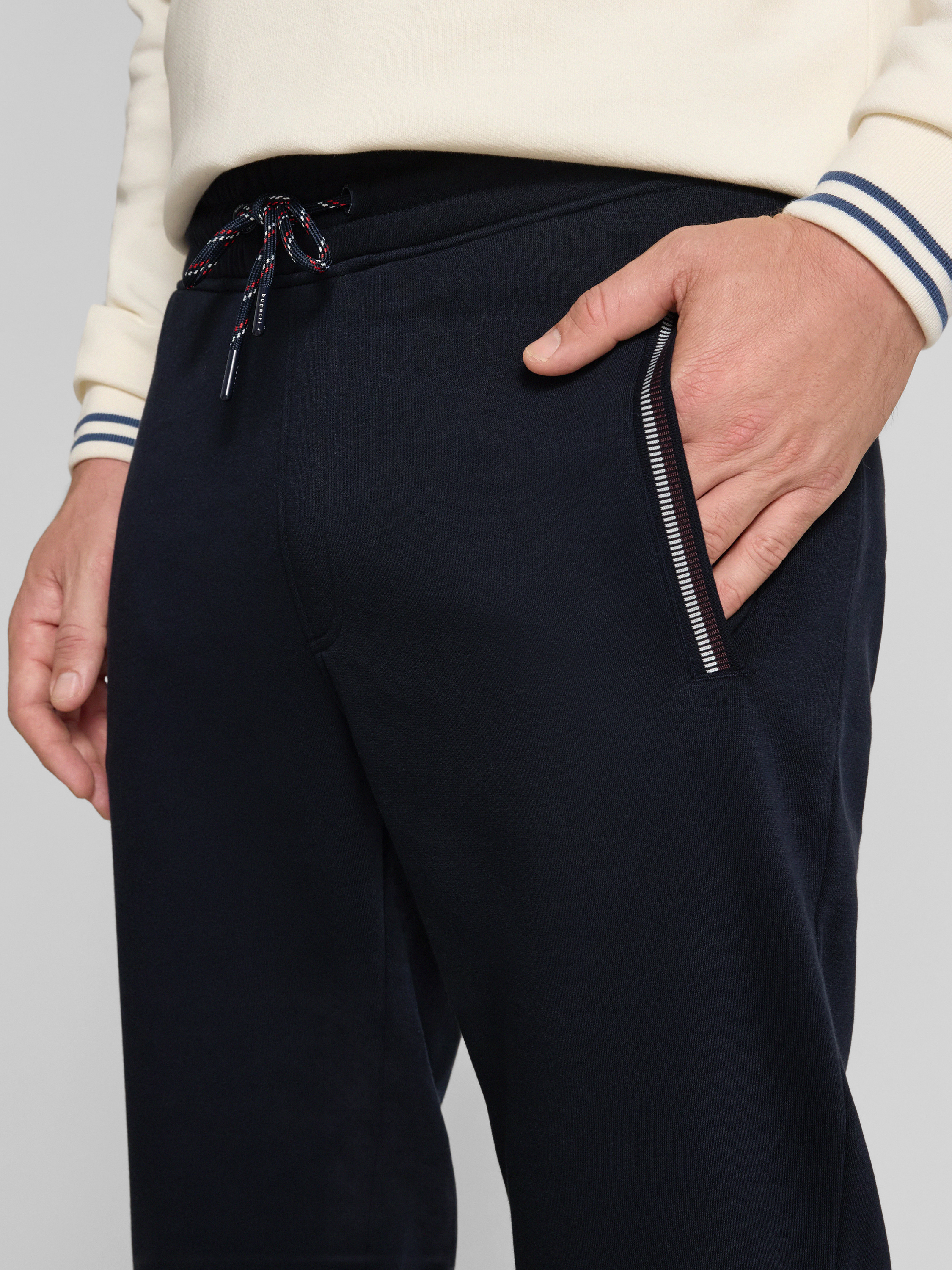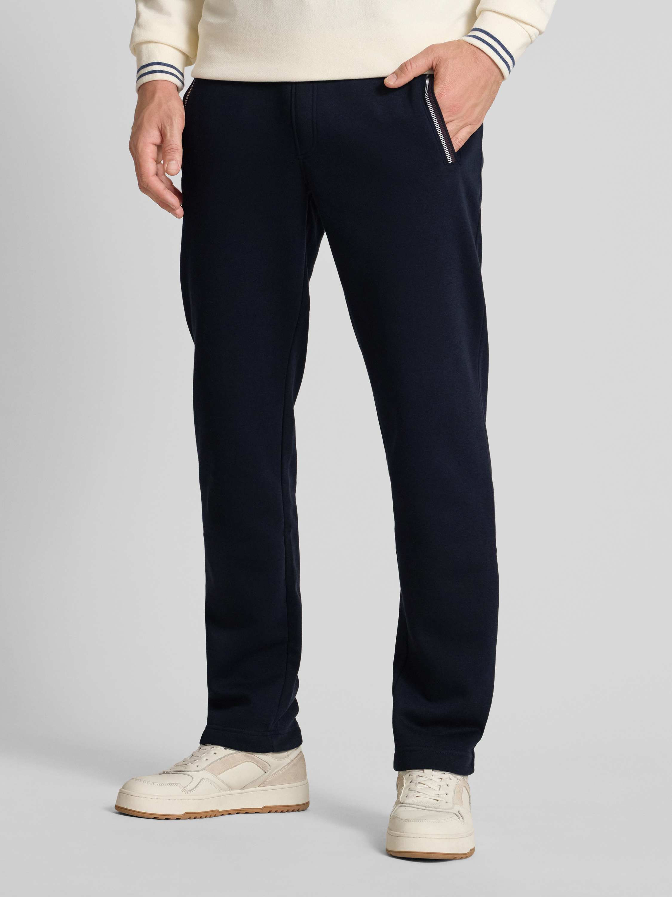 Die Herren Sweatpants von bugatti überzeugen durch ihren lockeren Schnitt und die angenehm weiche Haptik des Baumwoll-Mixes. Ein elastischer Bund mit Tunnelzug sorgt für optimalen Tragekomfort und Flexibilität. Praktische französische Eingrifftaschen und eine Gesäßtasche runden das funktionale Design ab.