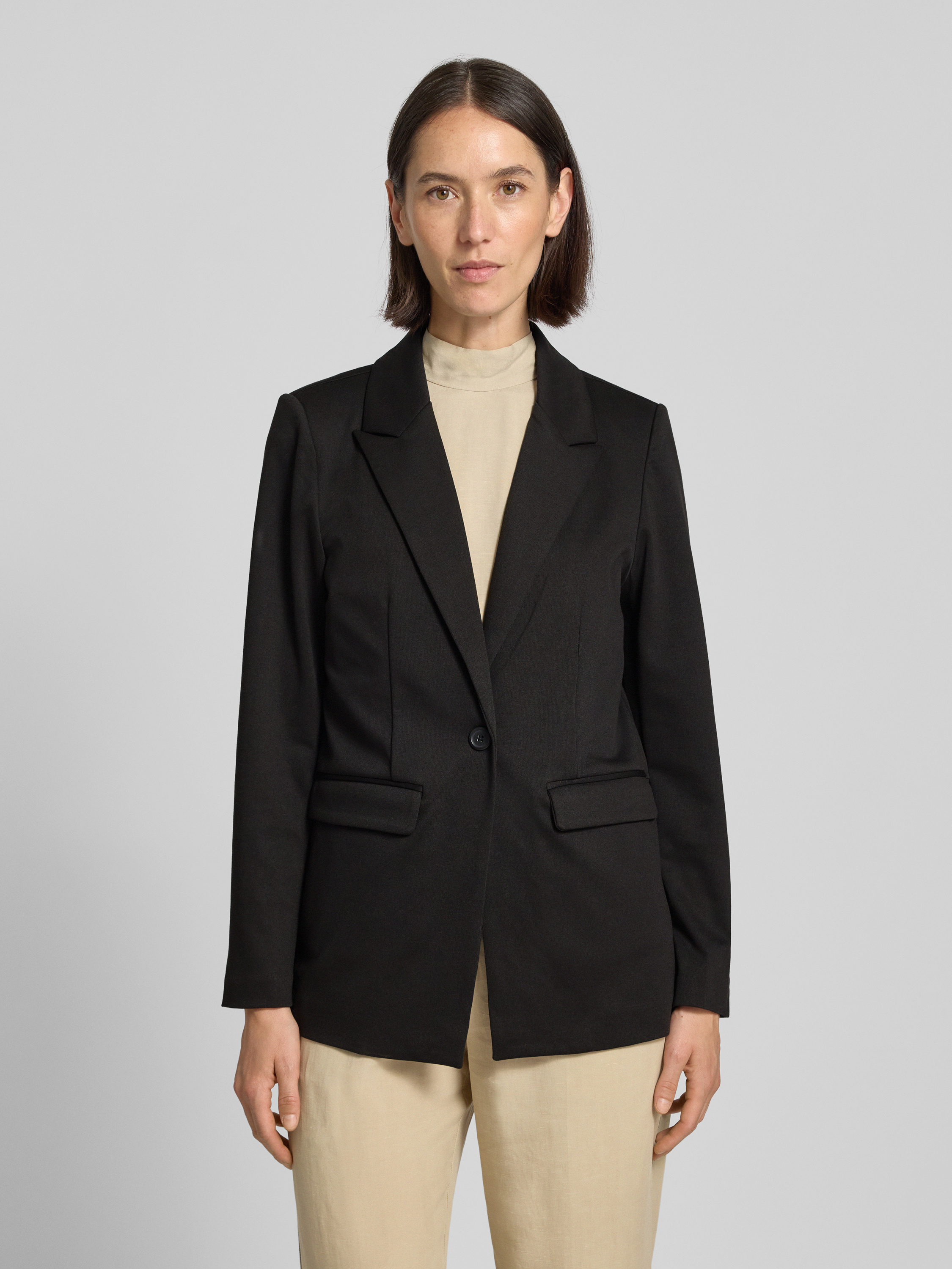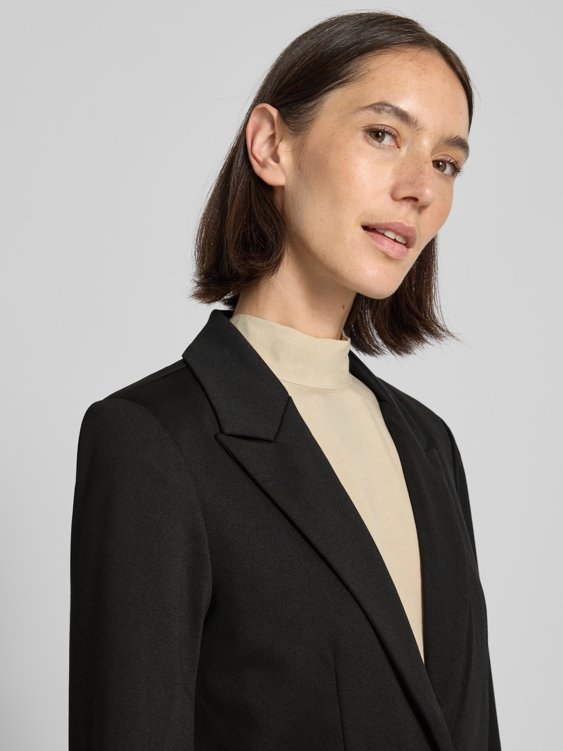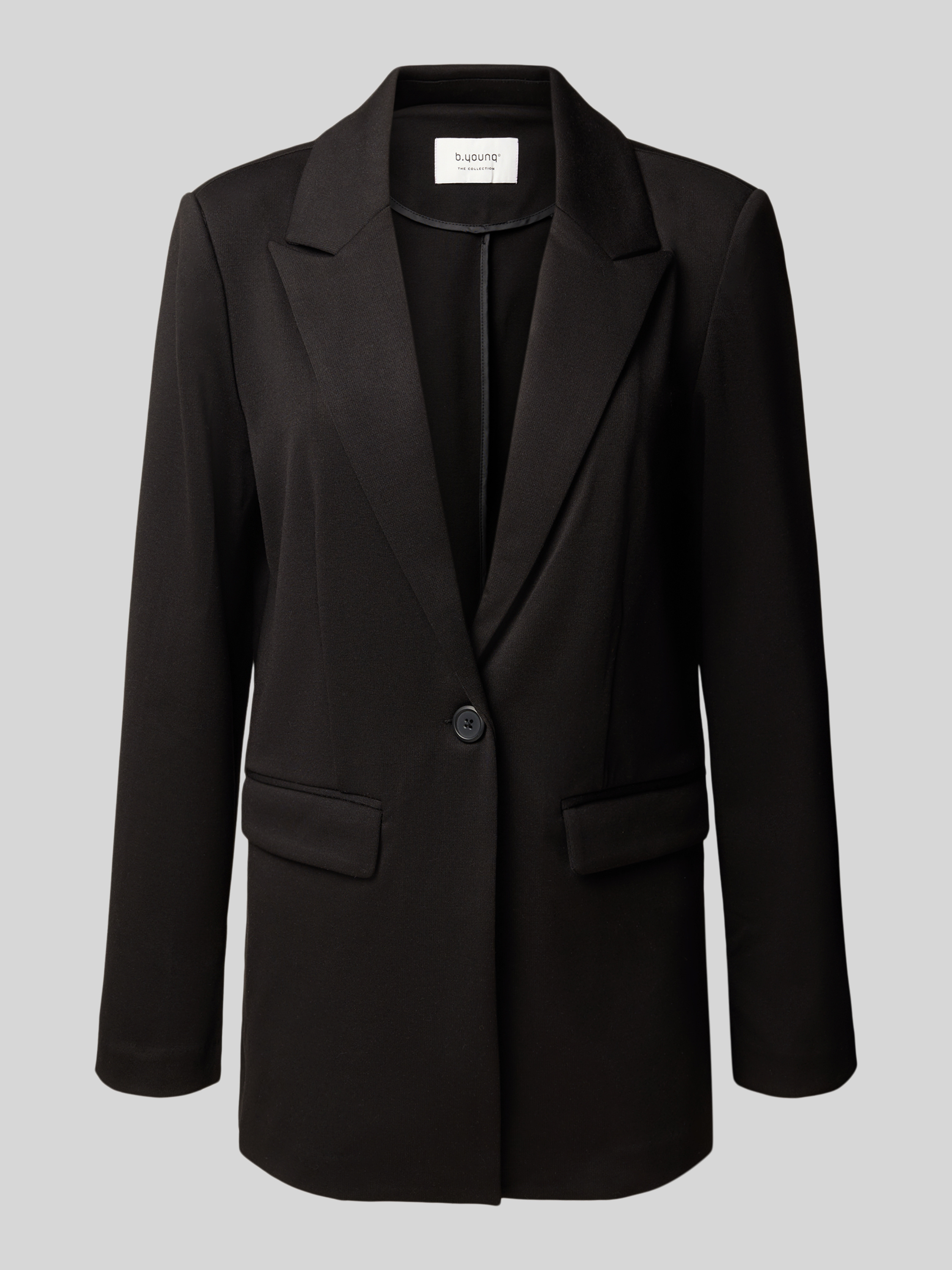 Der Blazer 'Rizetta' von b.young kombiniert einen eleganten Reverskragen mit einem taillierten Schnitt und einem elastischen Material-Mix mit Viskose-Anteil. Durch seine raffinierte Passform wird eine feminine Silhouette betont, während der Tragekomfort im Alltag erhalten bleibt. Ideal für vielseitige Styling-Möglichkeiten.