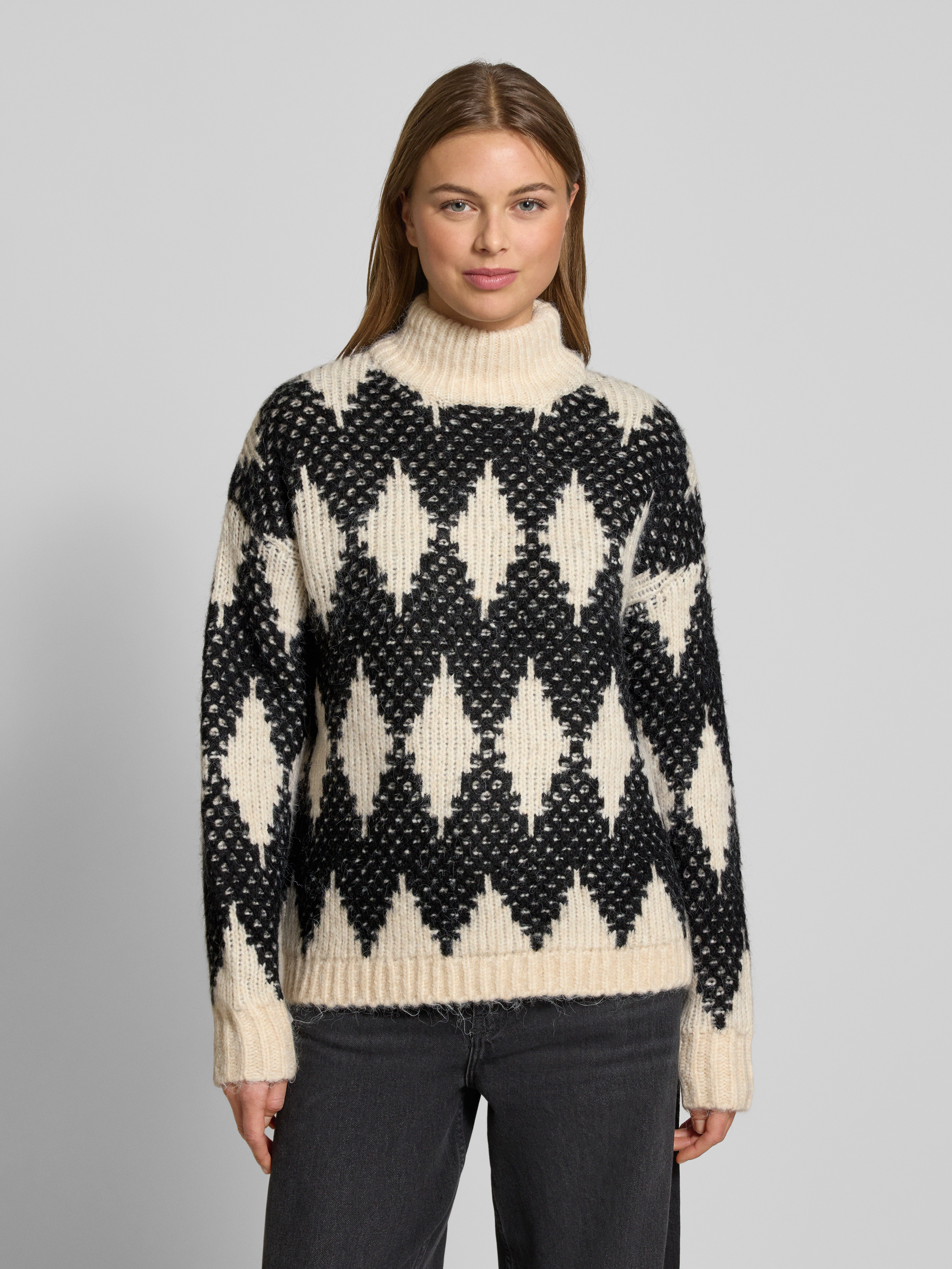 Der Damen Pullover von B.Young im Modell Omhu setzt auf einen Oversized-Fit und einen gemütlichen Rollkragen, wodurch man Bewegungsfreiheit und angenehme Wärme schätzt. Durch den Material-Mix mit Alpaka-Anteil fühlt sich das Strickstück weich an und hält an kühleren Tagen zuverlässig warm. Elastische Abschlüsse runden den entspannten Stil ab und sorgen für eine bequeme Passform.