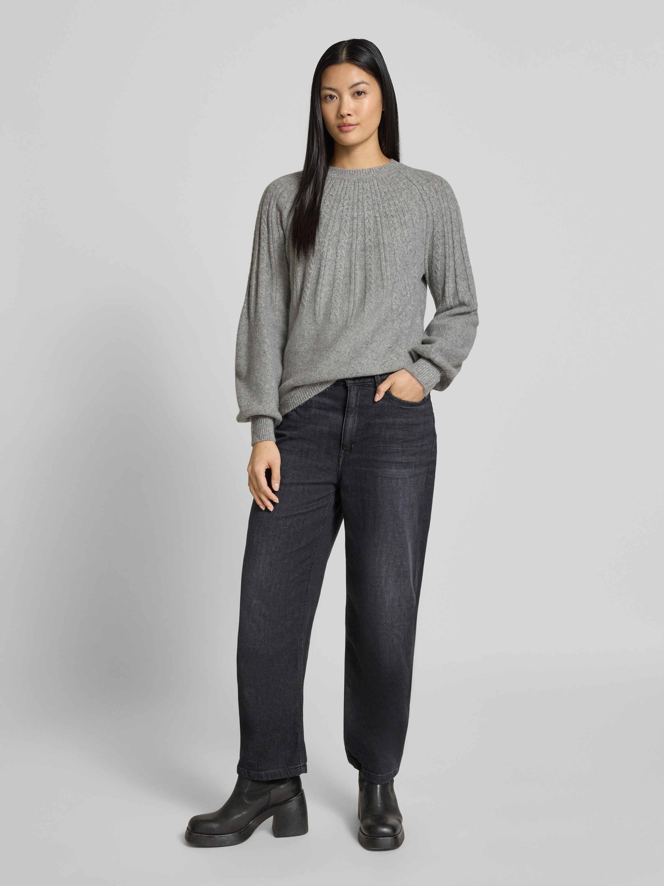 B.YoungStrickpullover mit gerippten Abschlüssen Modell 'Magge' in mittelgrau