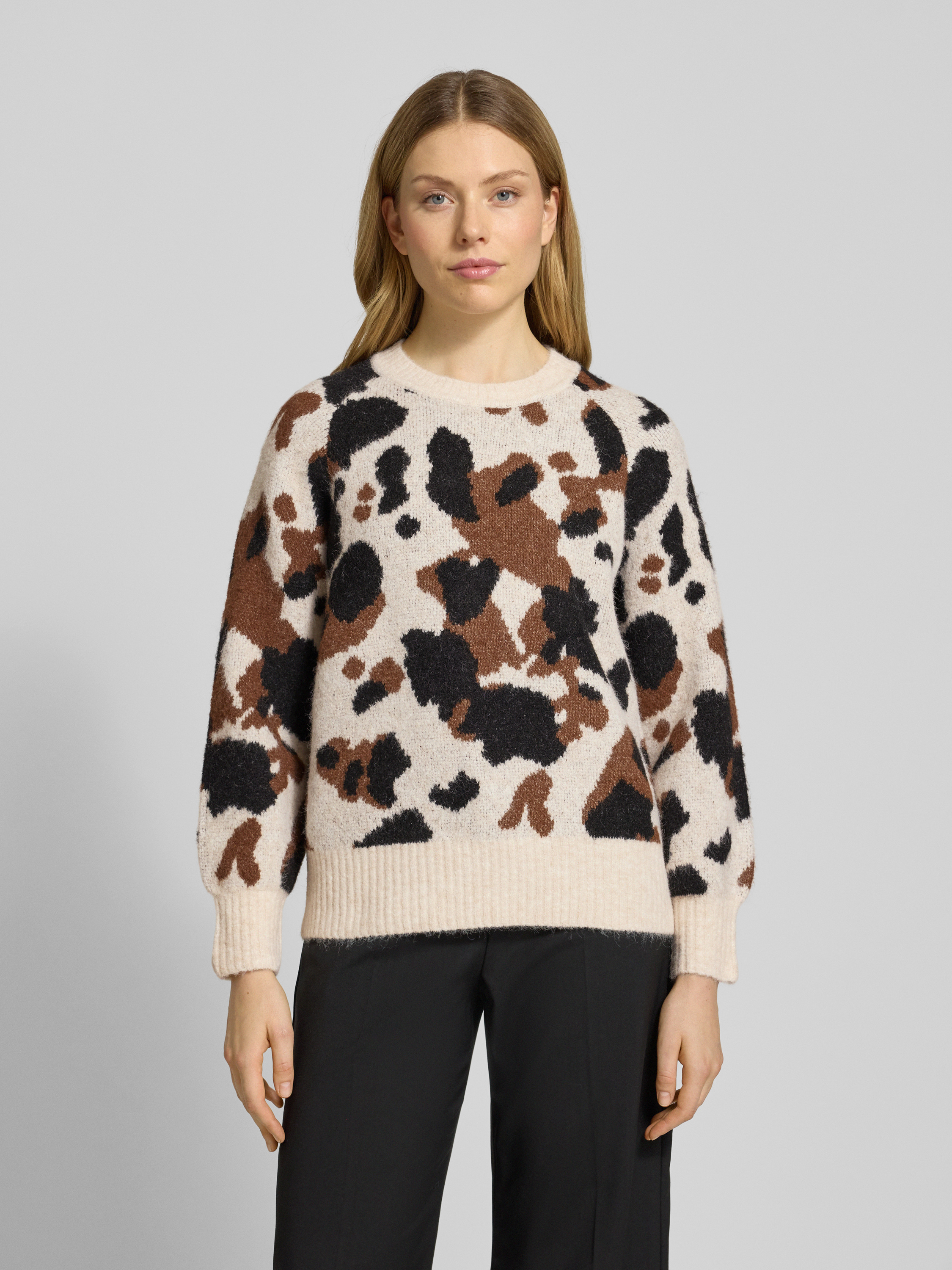Der Strickpullover Modell 'Omea' von B.Young zeigt sich im Animal-Look und setzt auf einen Regular Fit, der angenehm sitzt und Bewegungsfreiheit schafft. Durch den Material-Mix mit Baumwoll-Anteil fühlt sich das Stück weich auf der Haut an und begleitet verlässlich durch den Alltag. Ein klassischer Rundhalsausschnitt rundet das Design ab und macht das Kombinieren unkompliziert.