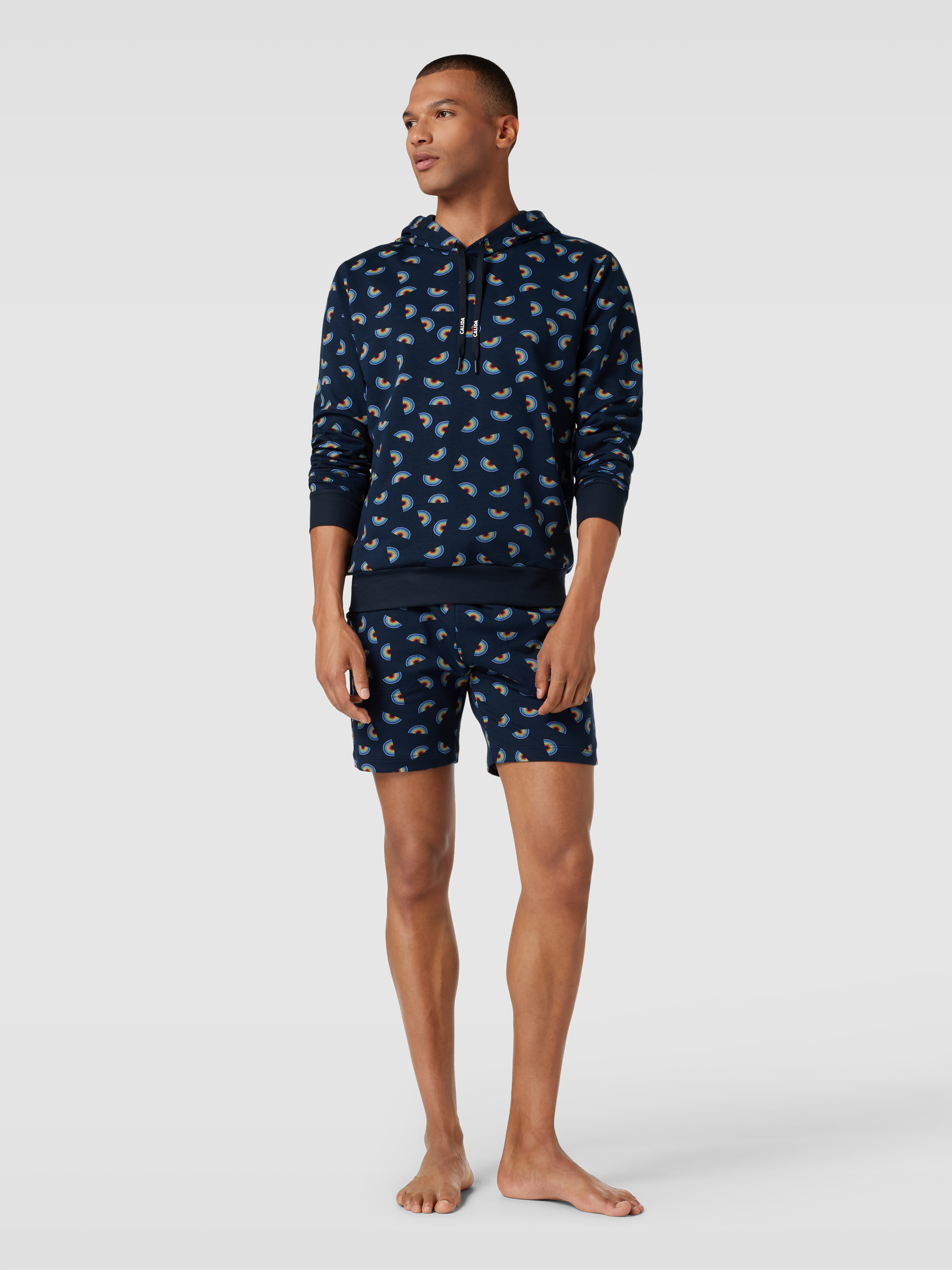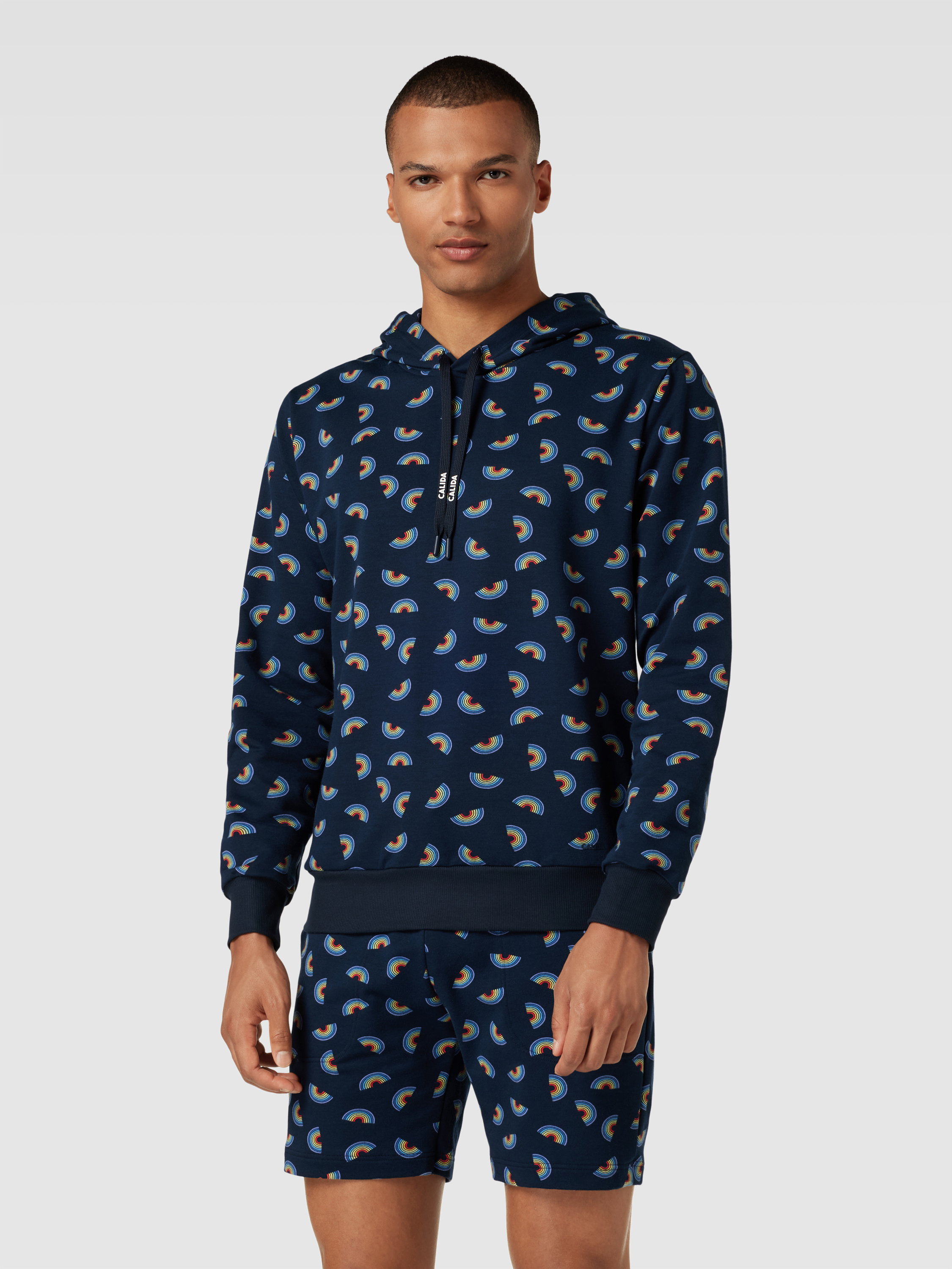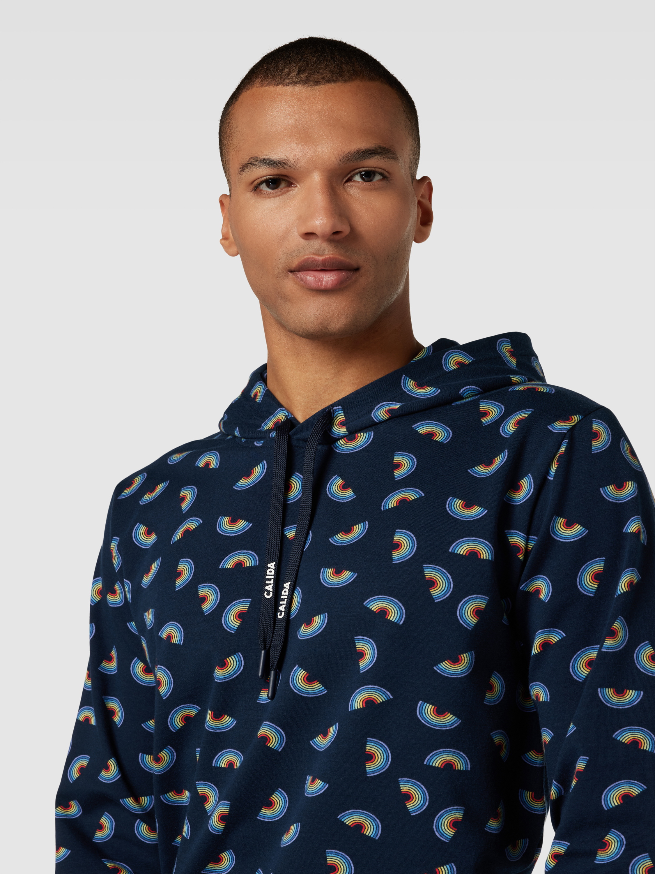 Der Hoodie 'LOVE' von Calida verbindet lässigen Komfort mit stilvoller Lässigkeit. Der lockere Schnitt und die Kapuze mit Tunnelzug sorgen für ein entspanntes Tragegefühl, während der Baumwoll-Elasthan-Mix Bewegungsfreiheit bietet. Der Allover-Print und der Label-Print setzen modische Akzente.
