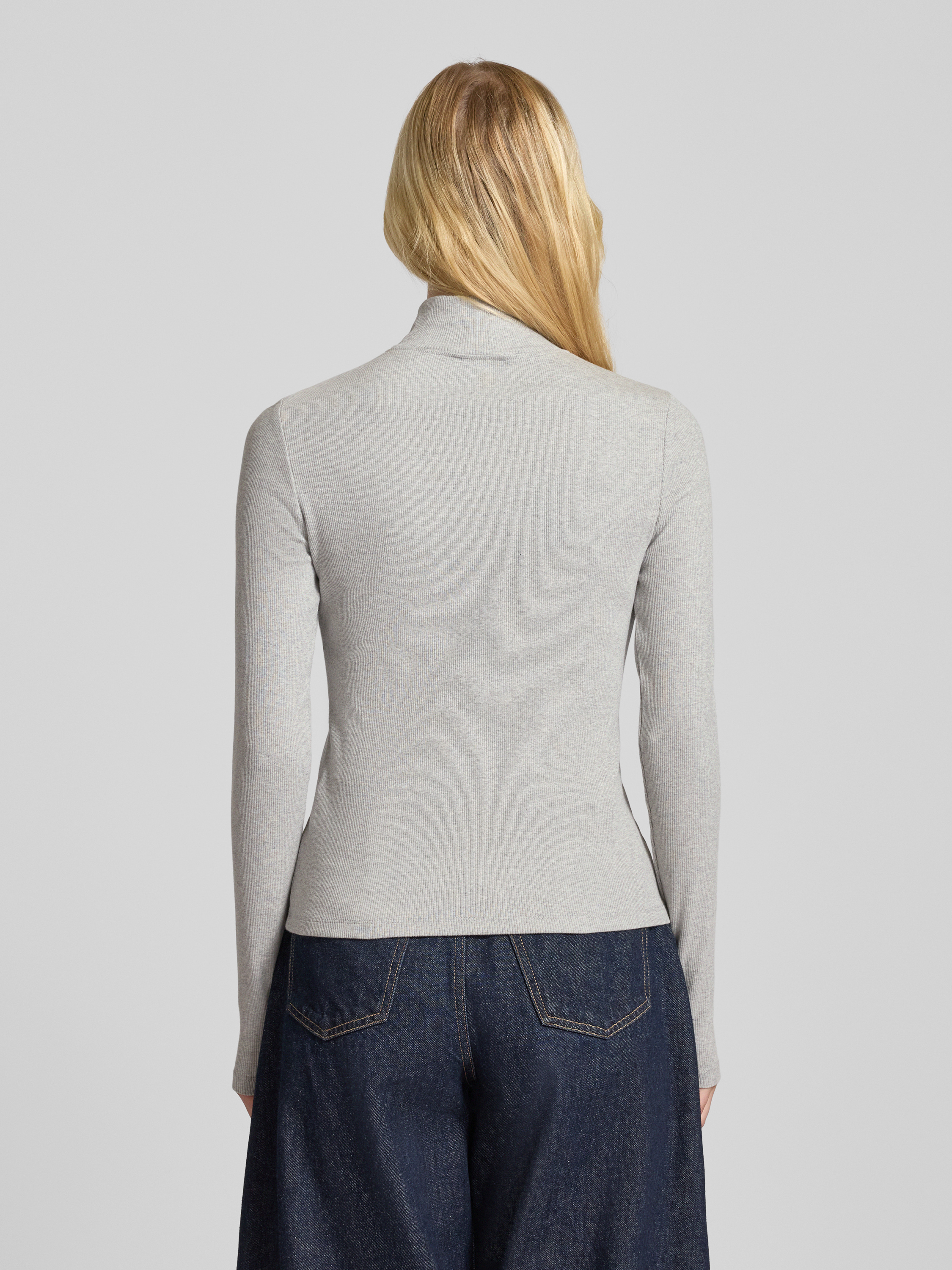 Das Damen Longsleeve von Calvin Klein Jeans liegt durch seinen eng anliegenden Schnitt angenehm auf der Haut und bringt den Stehkragen dezent zur Geltung. Der Baumwoll-Elasthan-Mix sorgt für angenehme Bewegungsfreiheit im Alltag. Ein kleines Label-Patch setzt einen unaufdringlichen Akzent.