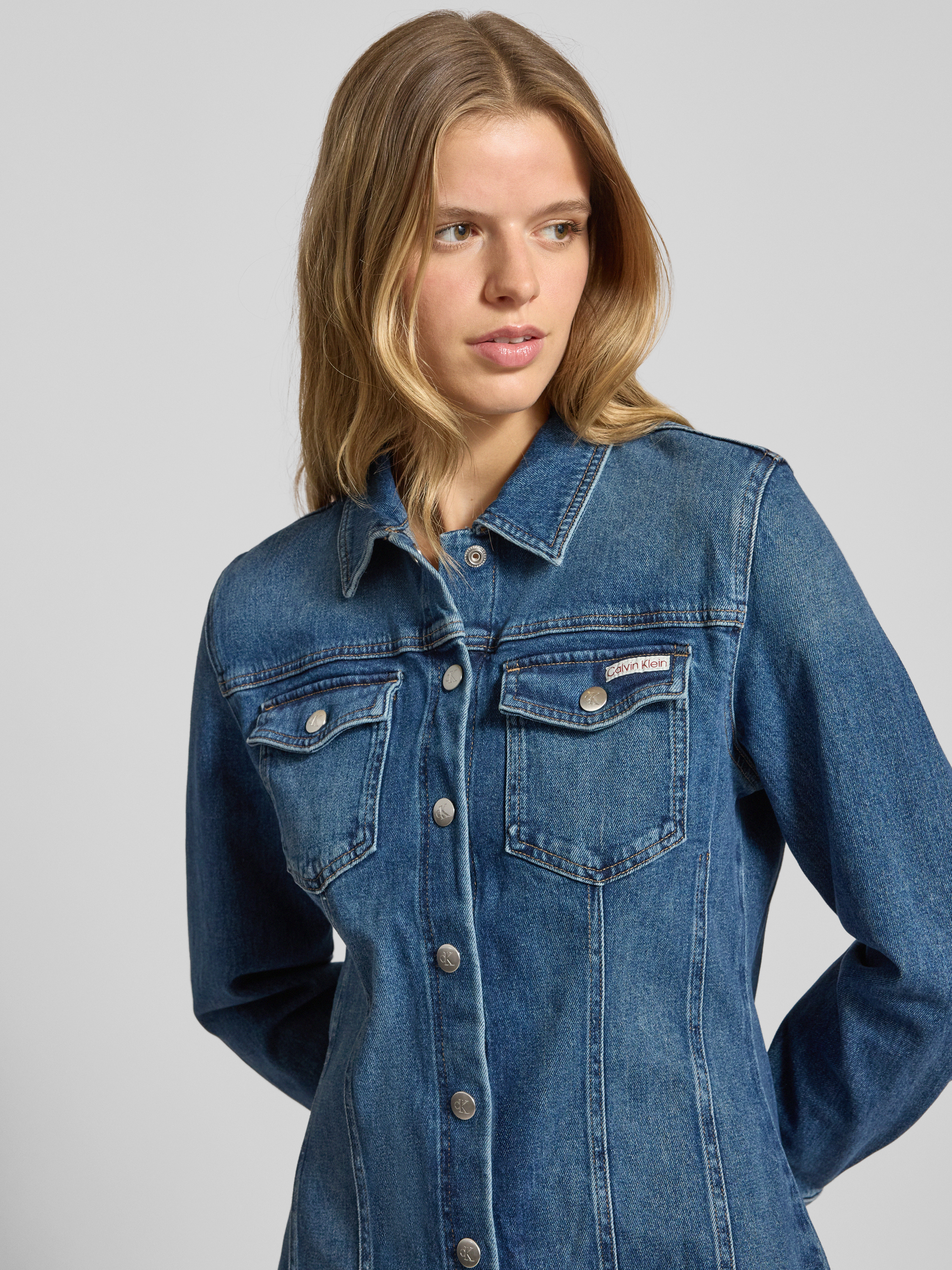 Das Minikleid in Denim-Optik von Calvin Klein Jeans zeichnet sich durch einen körpernahen Schnitt und einen angenehmen Baumwoll-Mix aus, der sich geschmeidig anfühlt. Durch den Umlegekragen und die langen Ärmel entsteht ein lässiger, aber dennoch strukturierter Look. Ein Logo-Patch setzt einen dezenten Akzent, wodurch das Modell 'Cold' vielseitig kombinierbar bleibt.