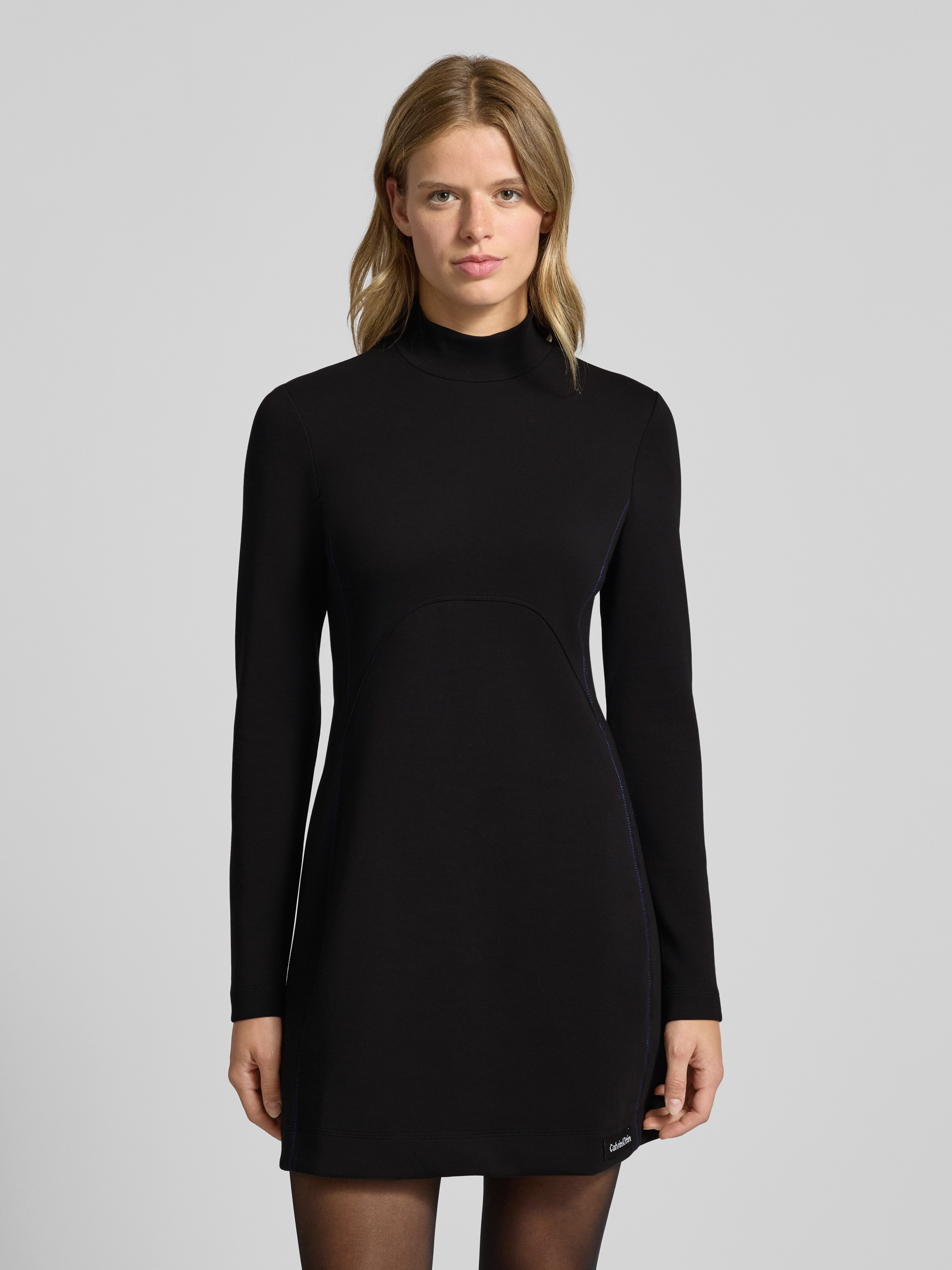 Das Damen Minikleid von Calvin Klein Jeans kombiniert einen taillierten Schnitt mit einem Stehkragen und schmiegt sich durch den Baumwoll-Mix mit Stretch-Anteil angenehm an den Körper. Dezente Label-Details setzen Akzente, während die langen Ärmel eine vielseitige Nutzung im Alltag ermöglichen. Durch das Design eignet sich das Minikleid sowohl für legere als auch für schlichtere Anlässe.