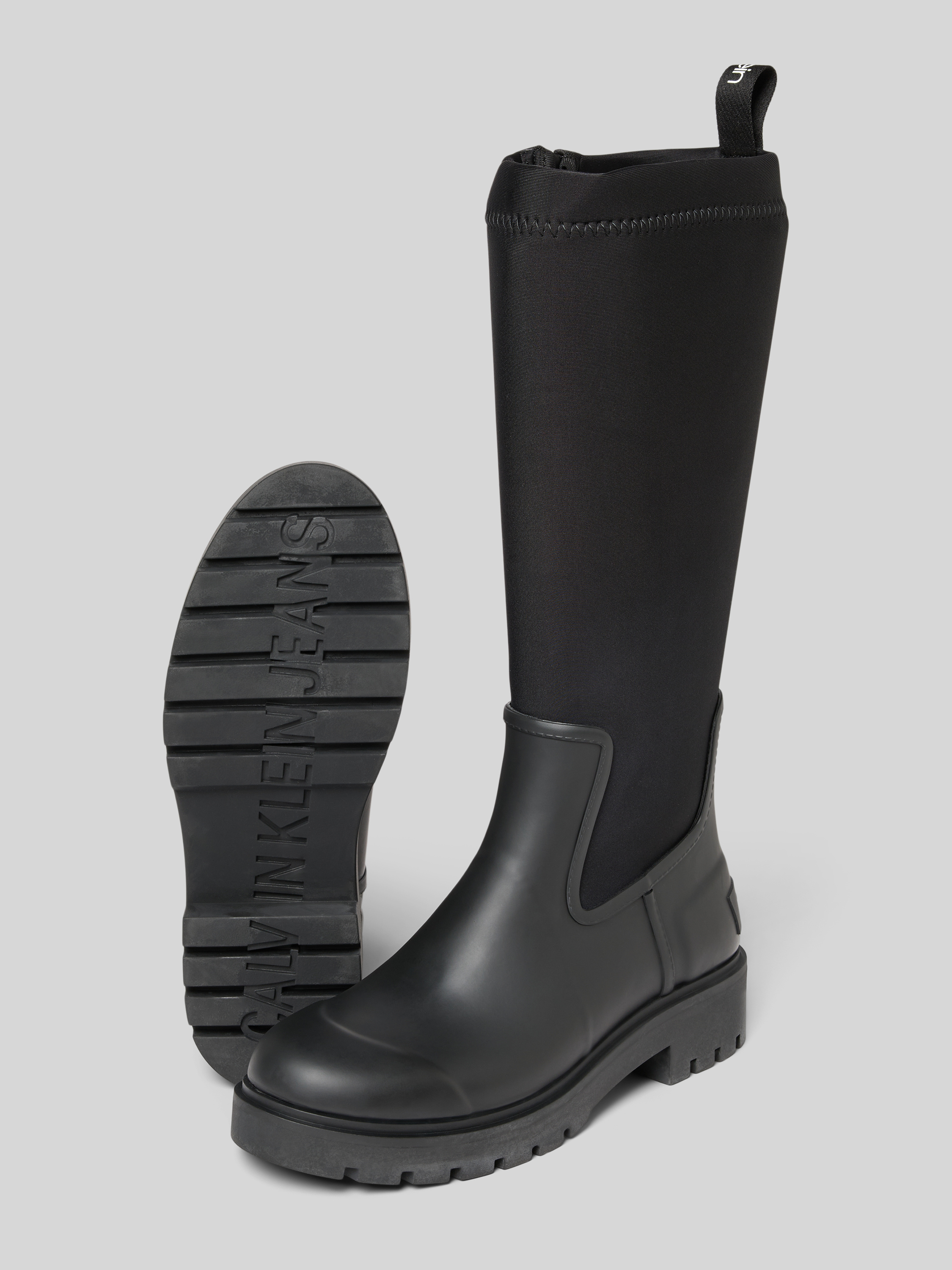 Die Damen Regenstiefel von Calvin Klein Jeans zeigen sich mit einem markanten Logo-Patch und abgerundeter Passform, wodurch sie angenehm am Fuß liegen. Ein Kontrastbesatz setzt optische Akzente, während das profilierte Design gerade bei nassem Wetter für sicheren Stand sorgt. So eignen sich diese Stiefel vielseitig im Alltag.