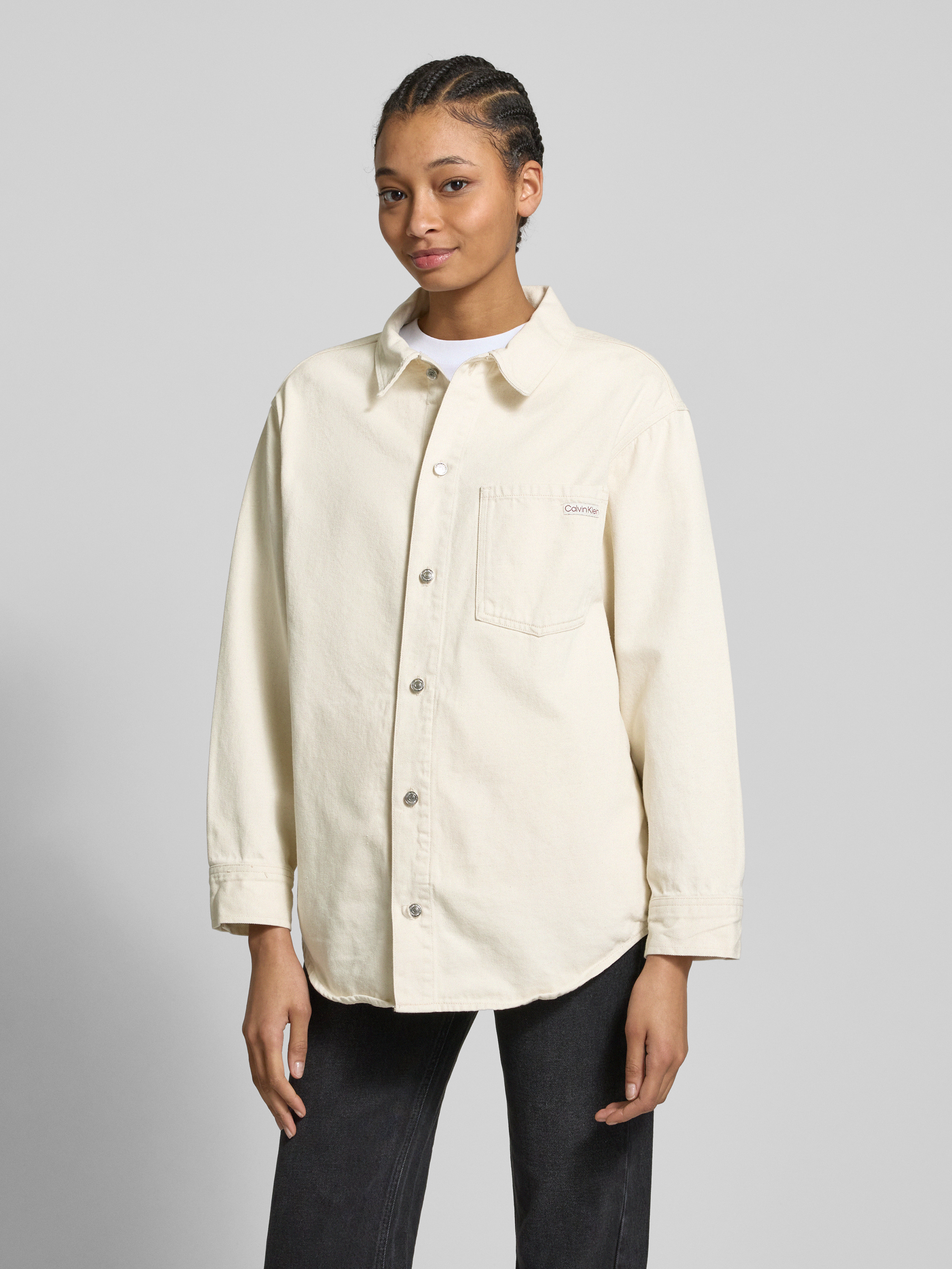Calvin Klein JeansRegular Fit Hemdjacke aus Baumwoll-Mix mit Leinen-Anteil in ecru