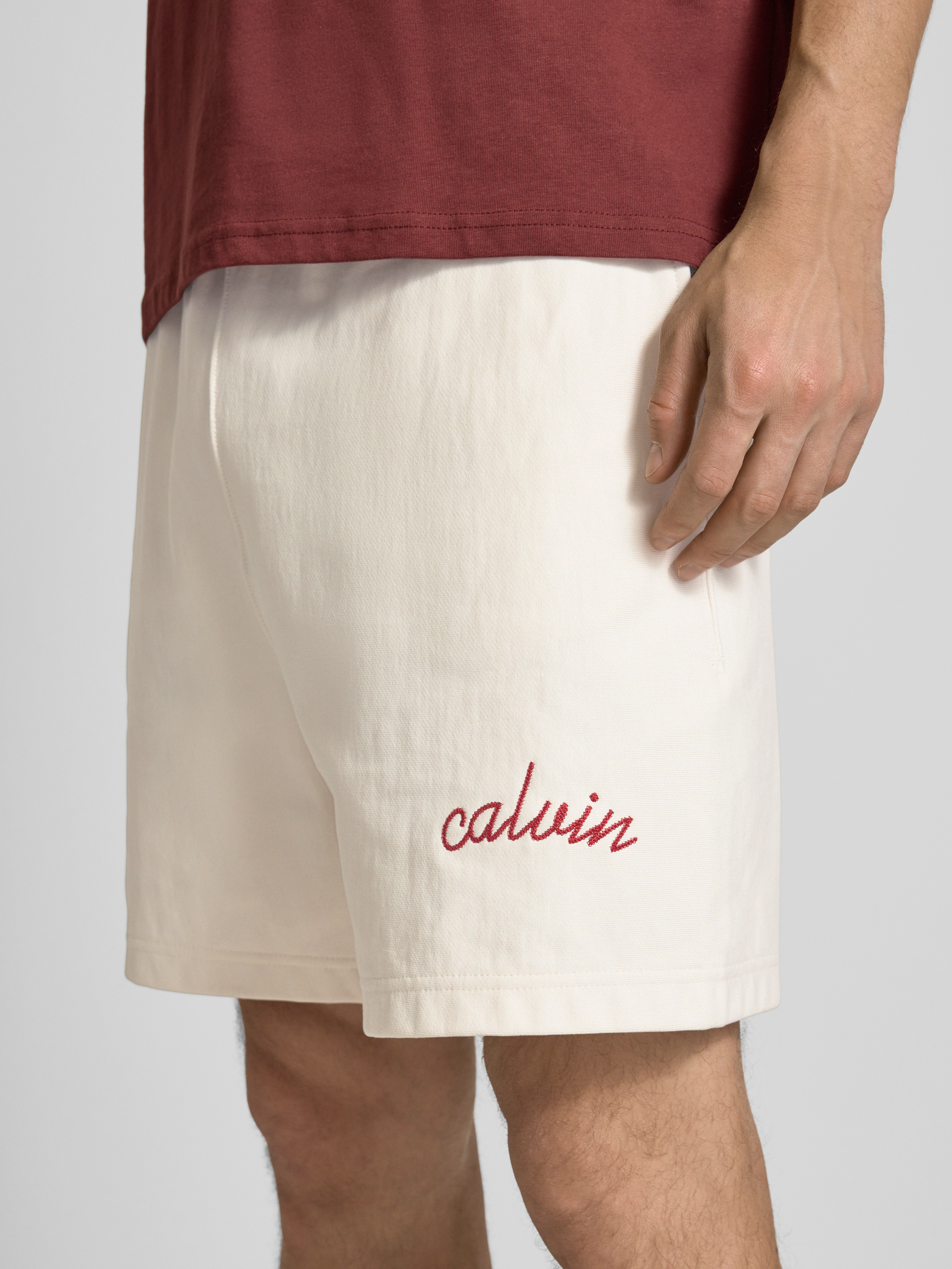 Calvin Klein JeansRegular Fit Sweatshorts mit Logo-Stitching Modell 'Terry' in offwhite