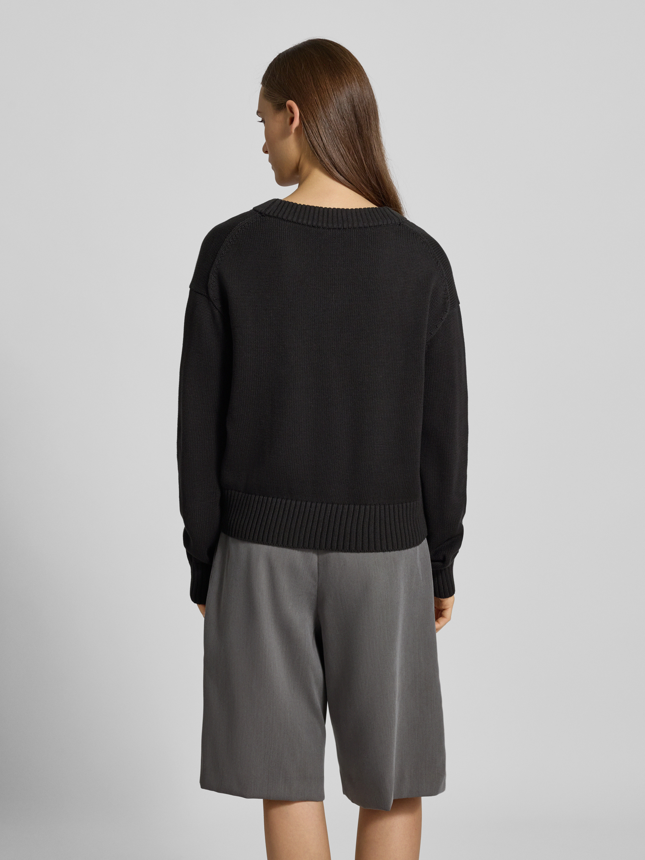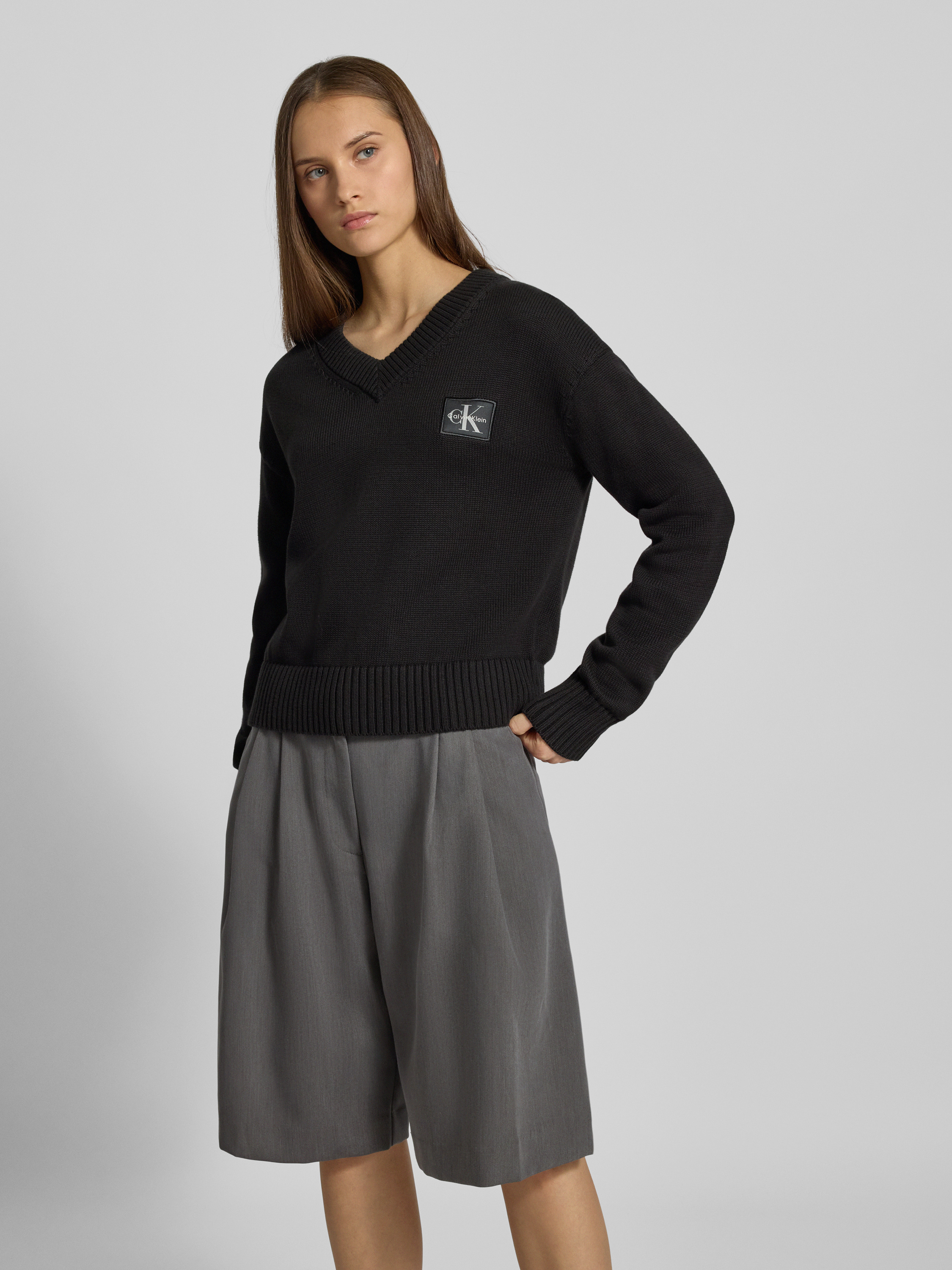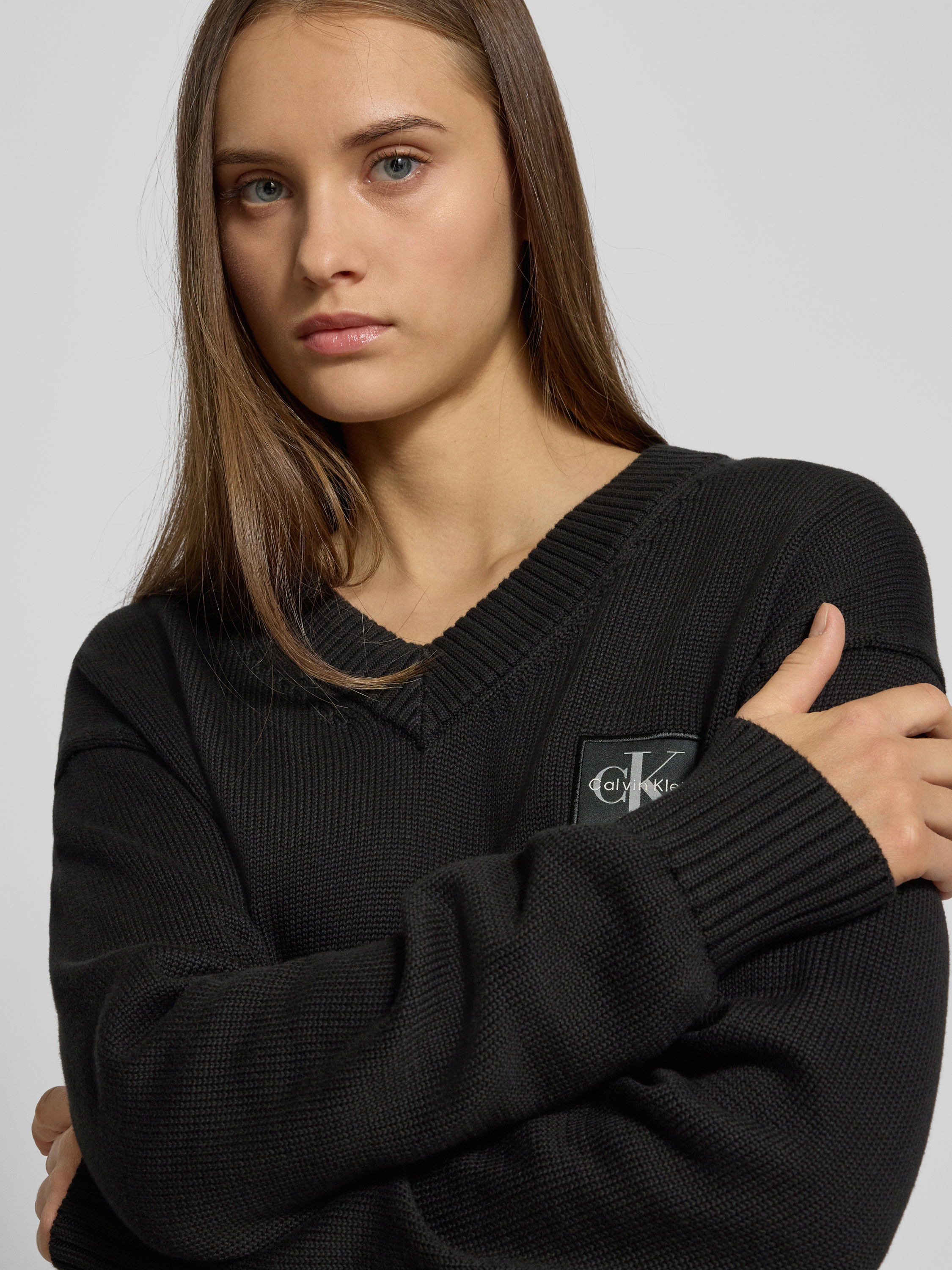 Der Strickpullover mit V-Ausschnitt von Calvin Klein Jeans zeigt sich in reiner Baumwolle und liegt angenehm auf der Haut. Durch den Regular Fit entsteht eine legere Silhouette, die vielseitig kombinierbar wirkt. Ein Label-Patch rundet den Look dezent ab.