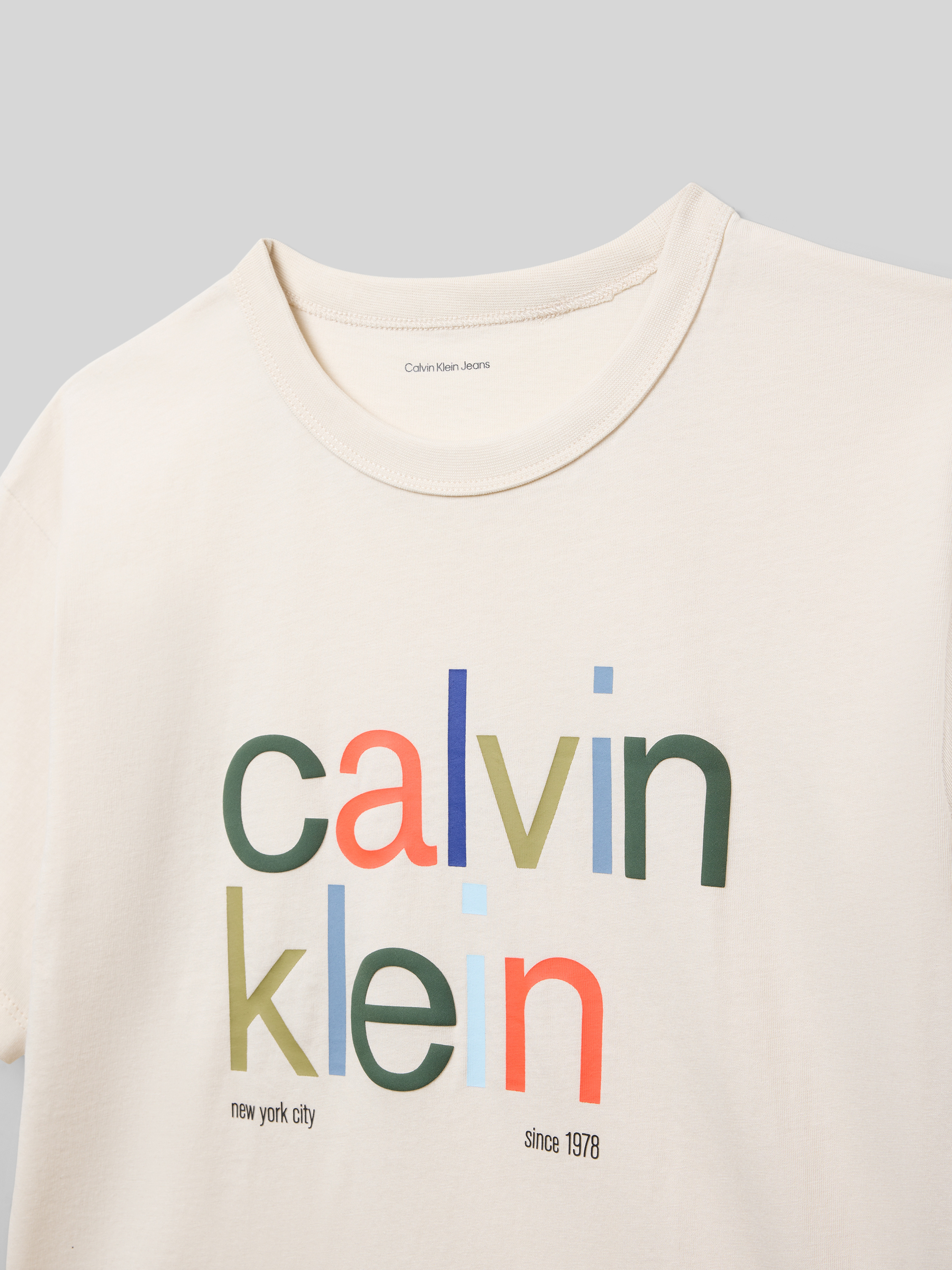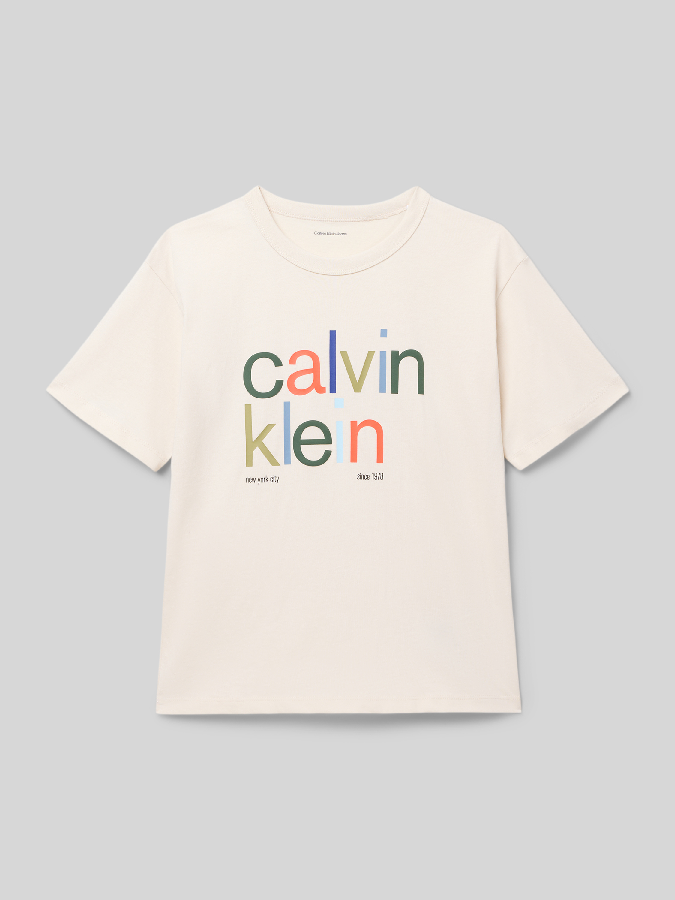 Das Kinder T-Shirt von Calvin Klein Jeans aus reiner Baumwolle sorgt für ein angenehmes Tragegefühl und lässt sich vielseitig kombinieren. Durch den klassischen Regular Fit sitzt es bequem und bleibt in jeder Alltagssituation formstabil. Ein markanter Label-Print verleiht dem Shirt einen modernen Akzent.