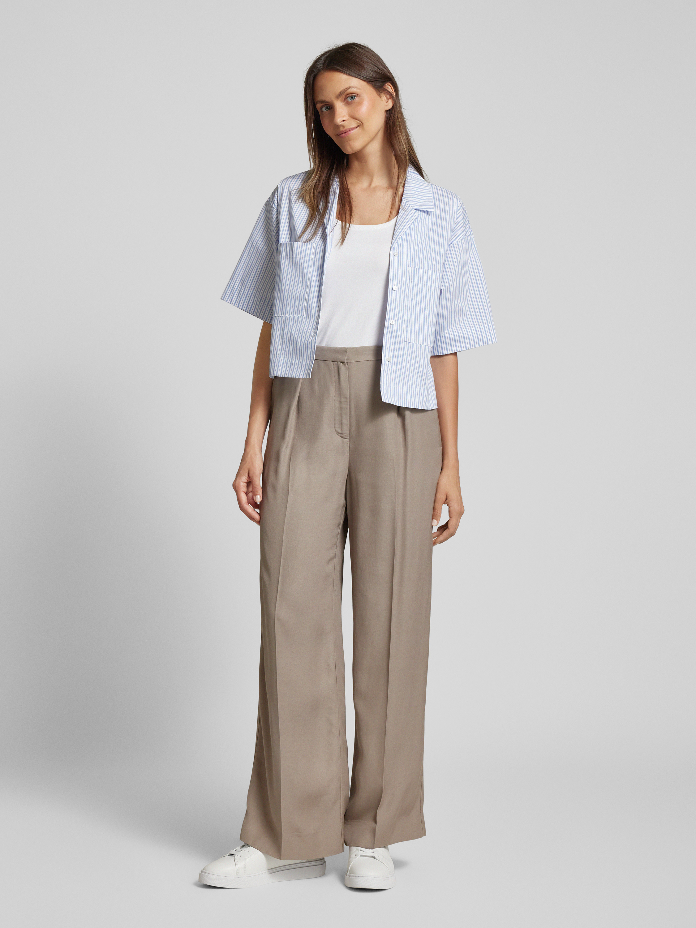 Die Anzughose von Calvin Klein Womenswear kombiniert die Leichtigkeit eines Viskose-Mixes mit der Natürlichkeit von Leinen. Dank ihres weiten Beins und der eleganten Bügelfalten schafft sie einen fließenden Look, der sich ideal für formelle Anlässe eignet. Praktische Taschen runden das Design ab.