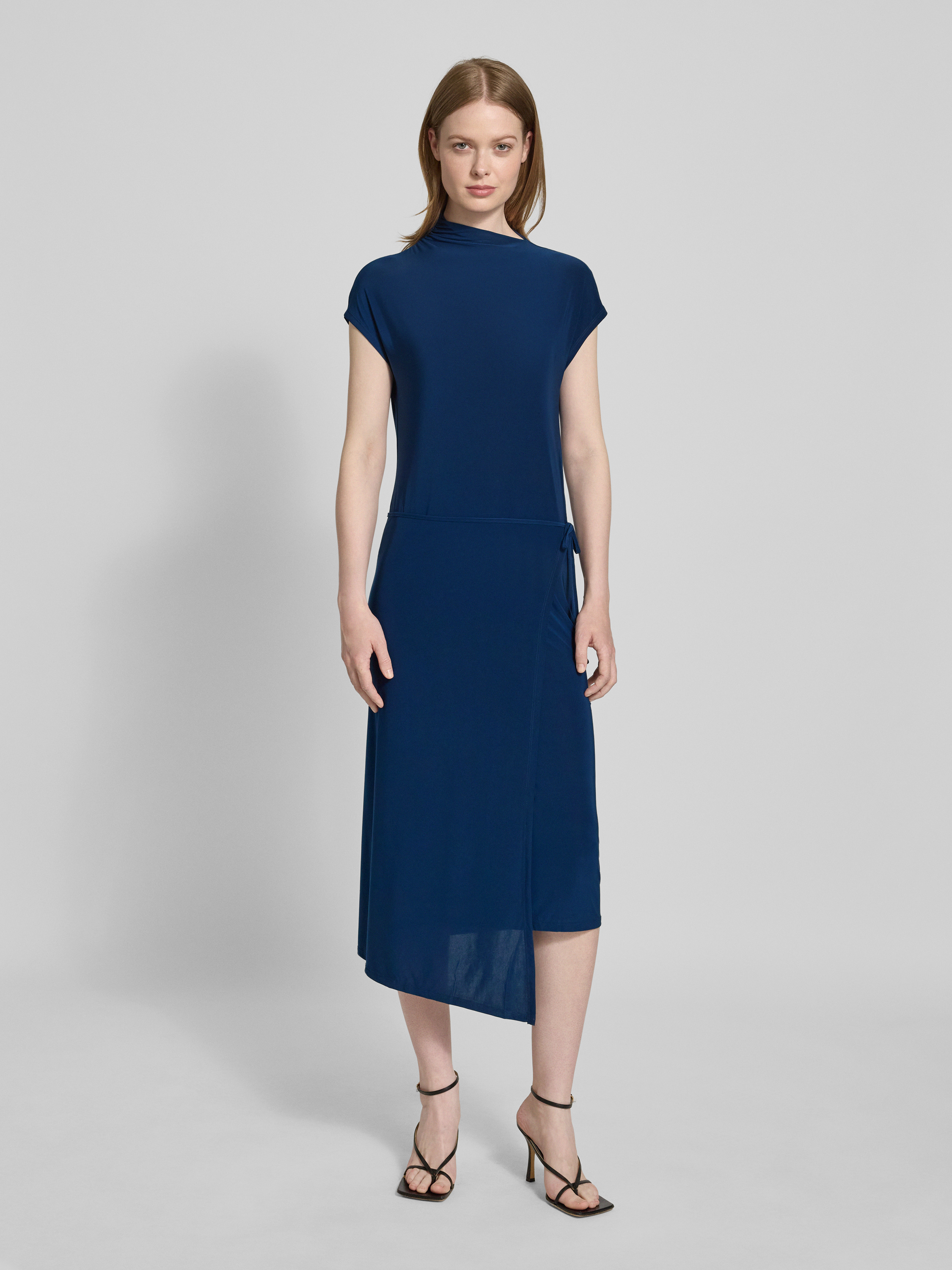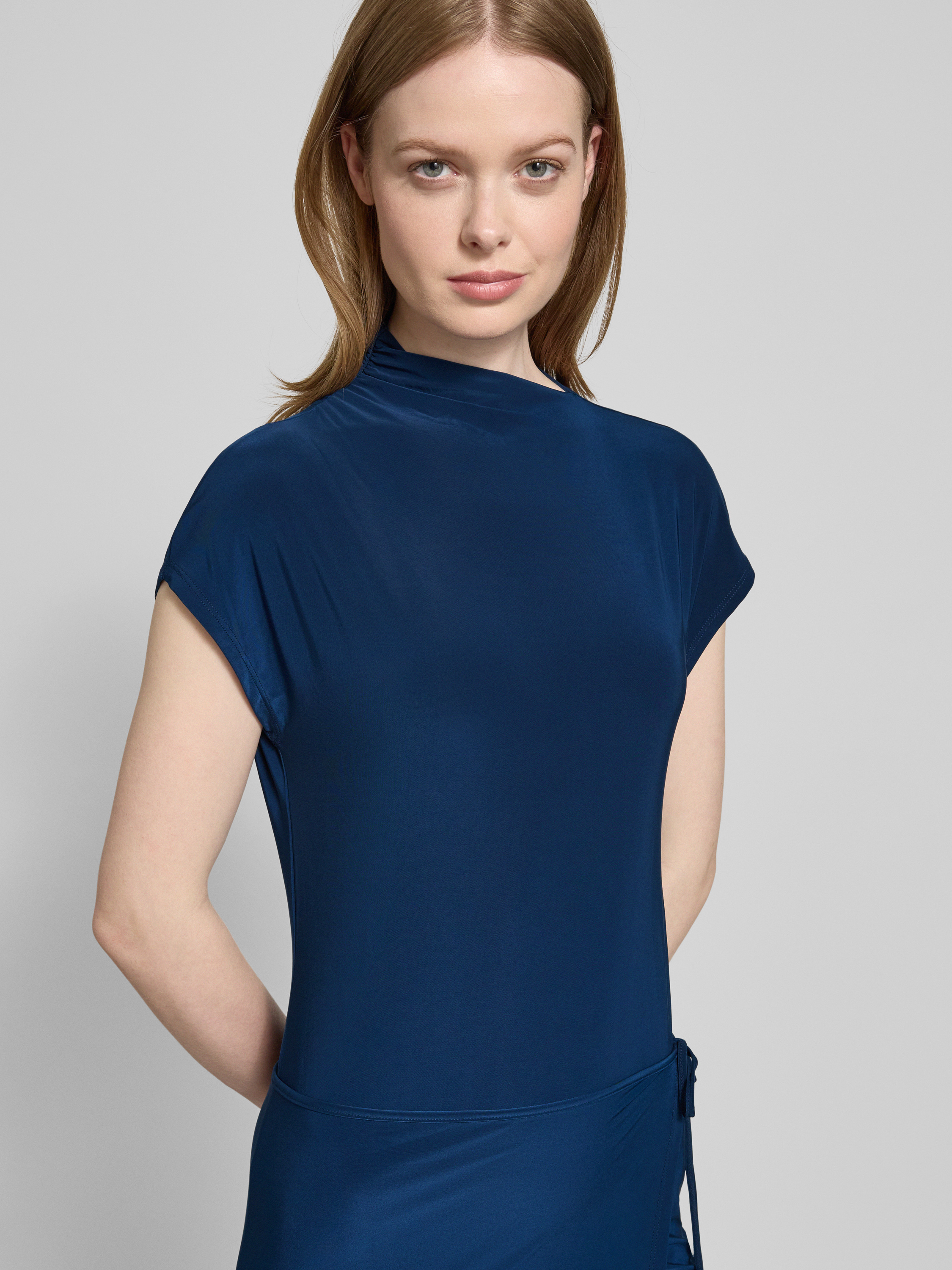 Das Midikleid von Calvin Klein Womenswear kombiniert einen eleganten Stehkragen mit raffiniertem Material-Mix, der durch seinen Stretch-Anteil Bewegungsfreiheit bietet. Der taillierte Schnitt betont die Figur, während die Raffungen eine schmeichelhafte Silhouette schaffen. Ideal für vielseitige Anlässe.
