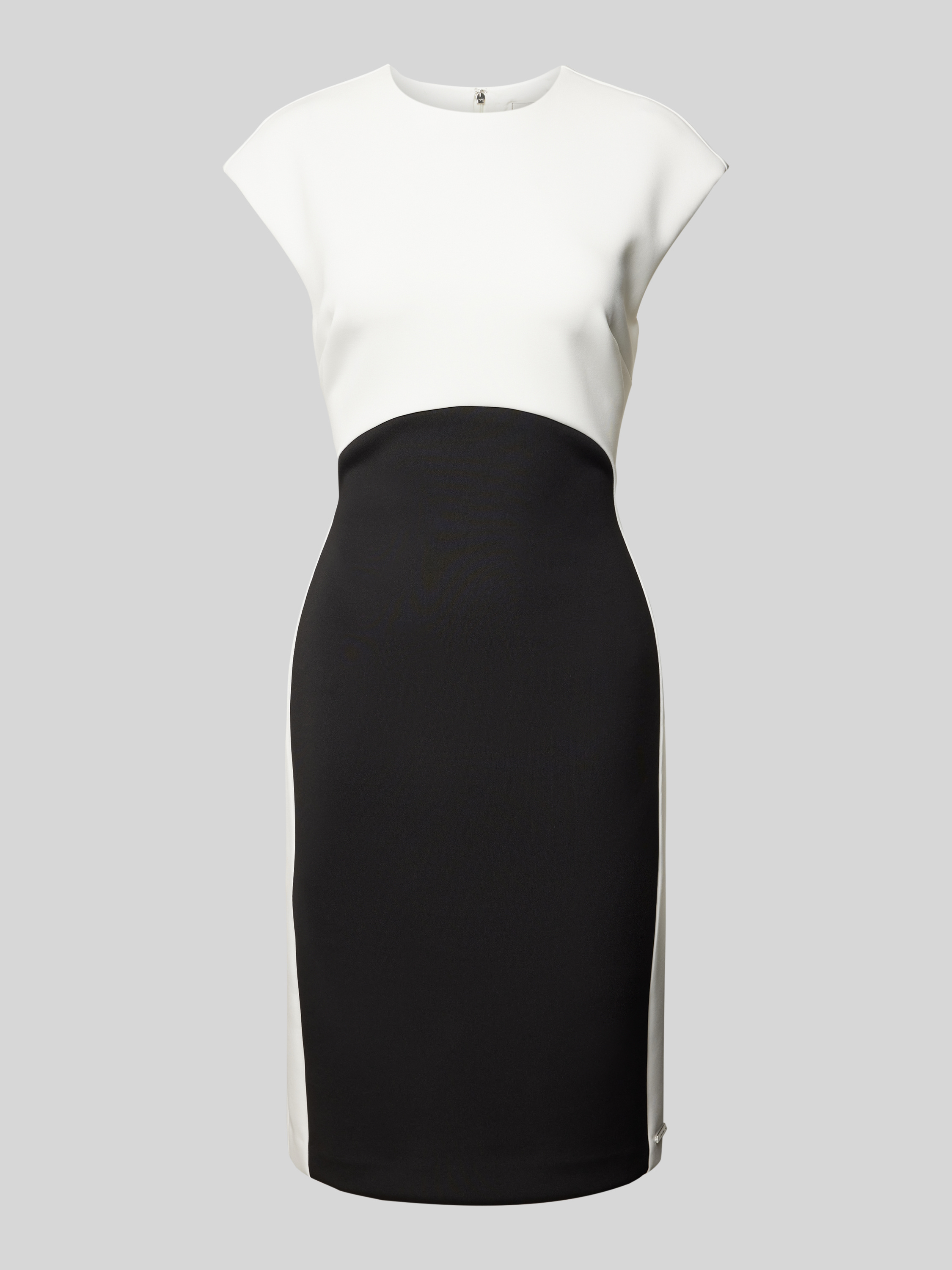 Das Minikleid von Calvin Klein Womenswear beeindruckt durch seinen taillierten Schnitt, der eine feminine Silhouette unterstreicht. Der Material-Mix mit Stretch-Anteil sorgt für angenehmen Tragekomfort und Bewegungsfreiheit. Mit seinem Rundhalsausschnitt und den Kappärmeln eignet es sich ideal für vielseitige Anlässe.