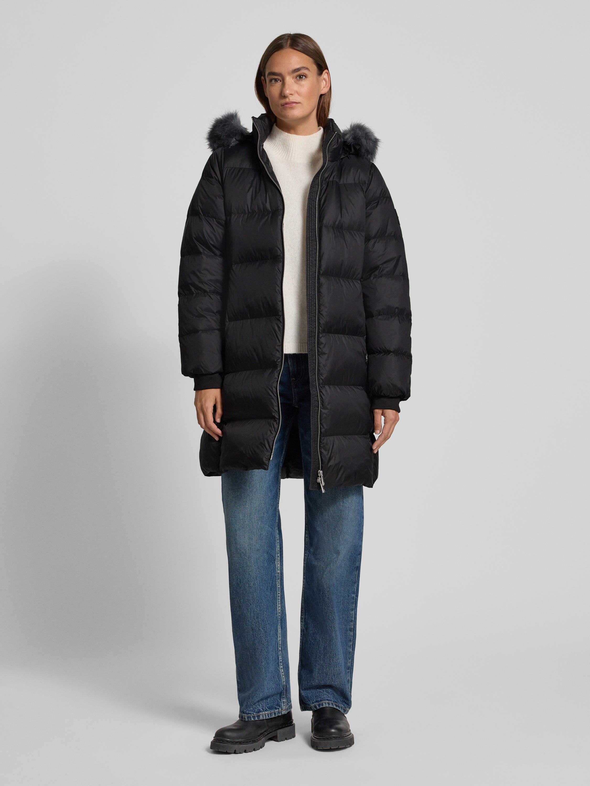 Die Damen Steppjacke von Calvin Klein Womenswear fällt durch ihren Regular Fit auf, der Bewegungsfreiheit und Komfort im Alltag ermöglicht. Dank der Kapuze mit Kunstfell zeigt sich das Modell wetterfest und angenehm zu tragen. Praktische Reißverschlusstaschen verstauen Kleinigkeiten griffbereit.