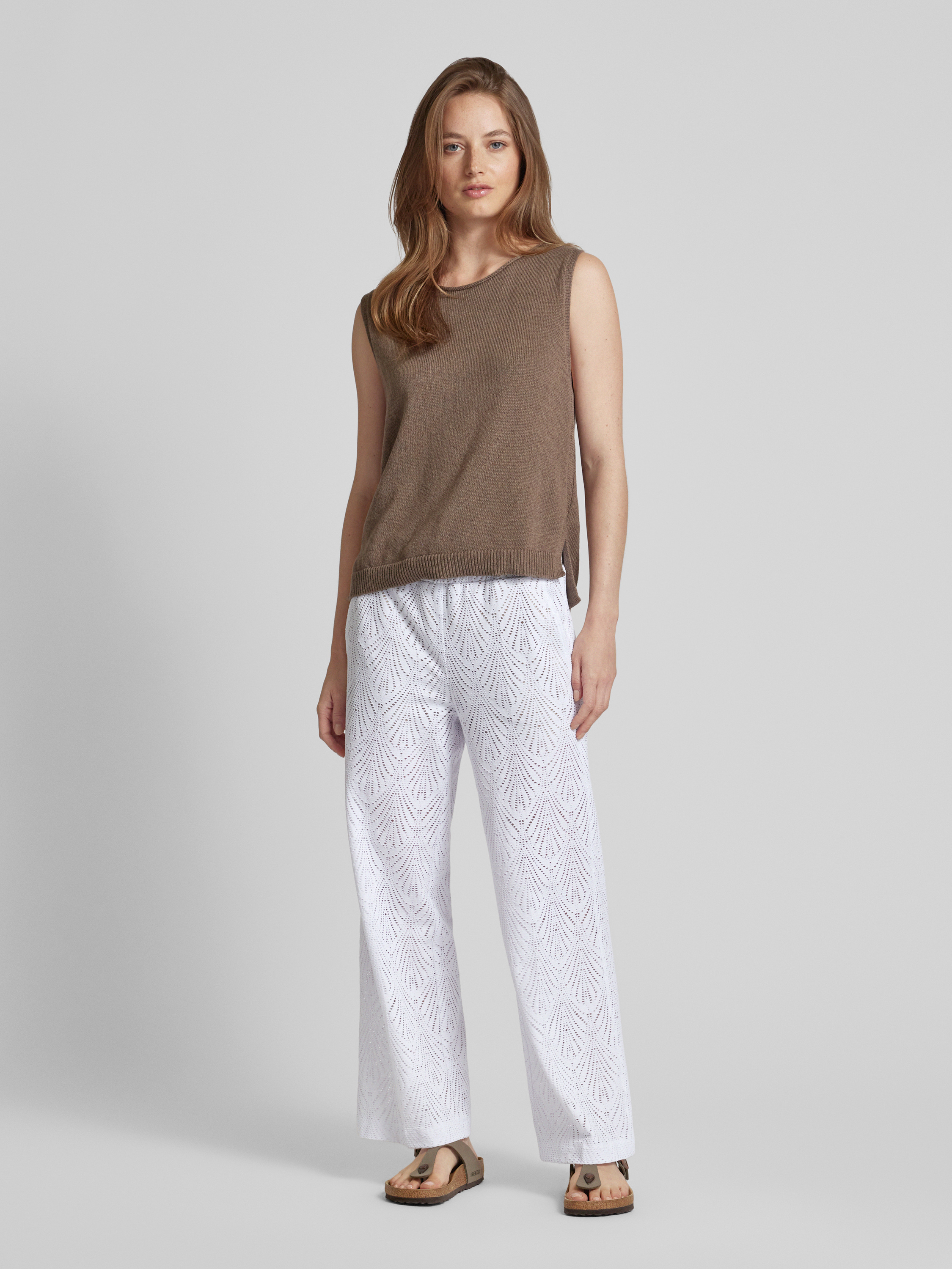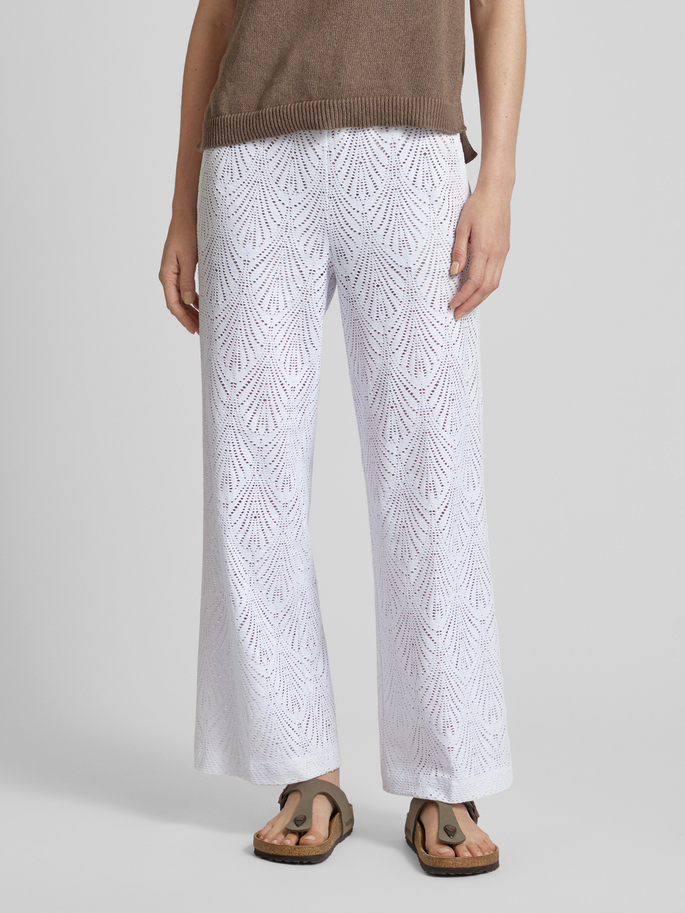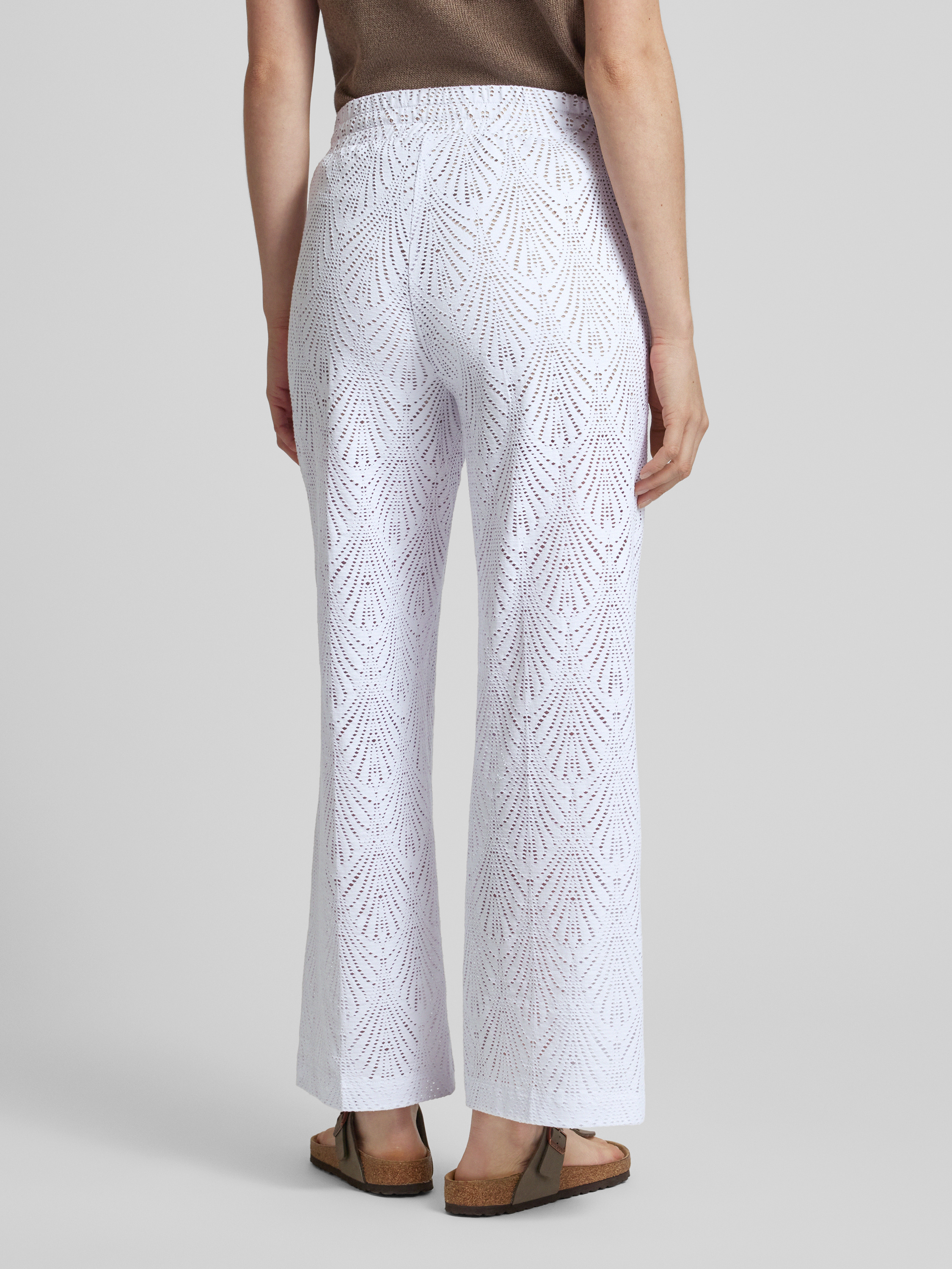 Die Hose 'CLARA' von Cambio kombiniert einen bequemen Regular Fit mit einem eleganten unifarbenen Design. Durch den Baumwoll-Elasthan-Mix bietet sie angenehme Bewegungsfreiheit, während die feine Lochstickerei dezente Akzente setzt. Der elastische Bund mit Tunnelzug sorgt für einen komfortablen Sitz.