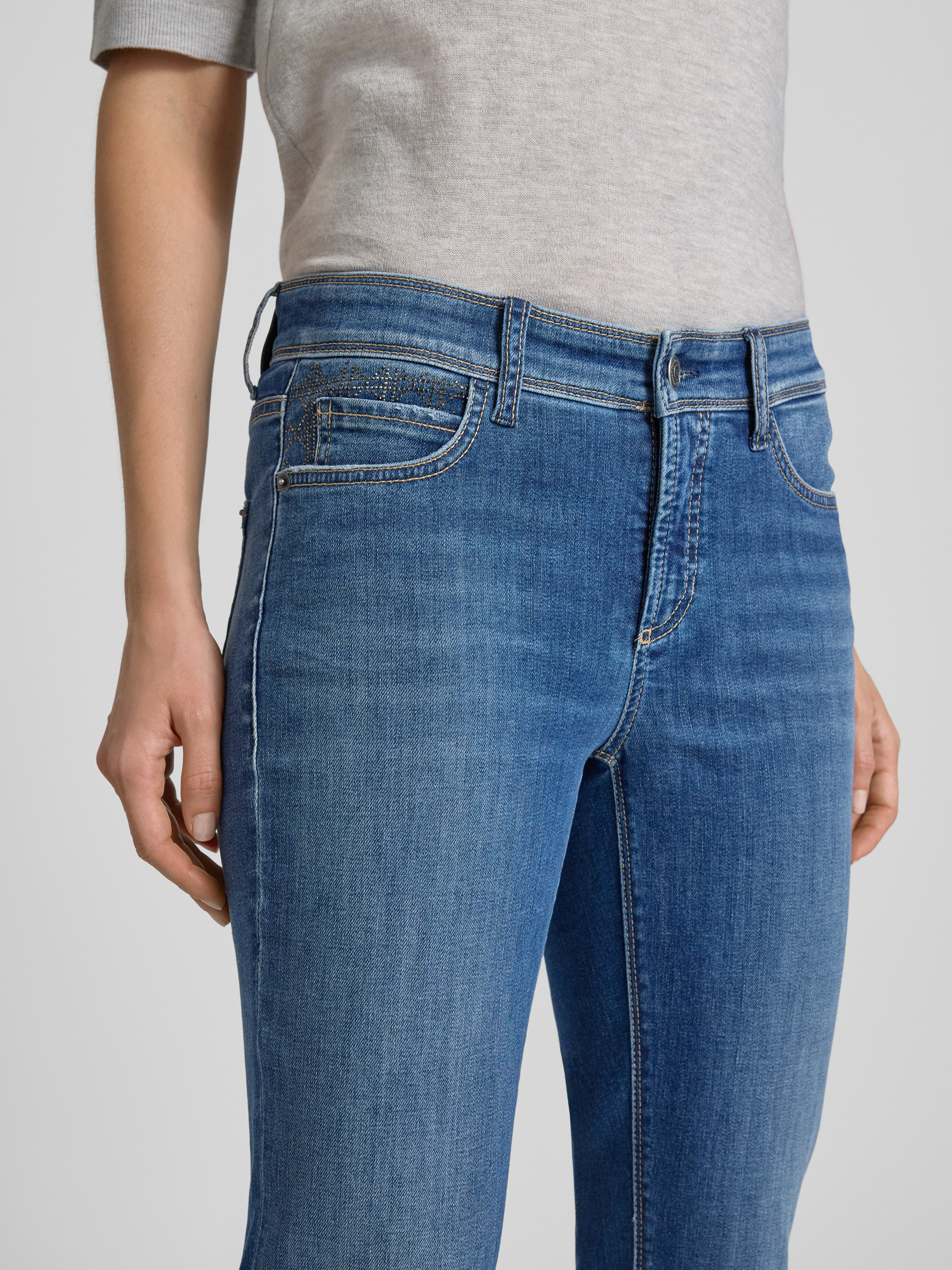 Die Damen Jeans von Cambio, gefertigt aus einem bequemen Baumwoll-Mix mit Stretch-Anteil, begeistert mit ihrem geraden Schnitt und dem praktischen 5-Pocket-Design. Der Ziersteinbesatz verleiht der Hose eine dezente Eleganz, die sich mühelos in den Alltag integrieren lässt.