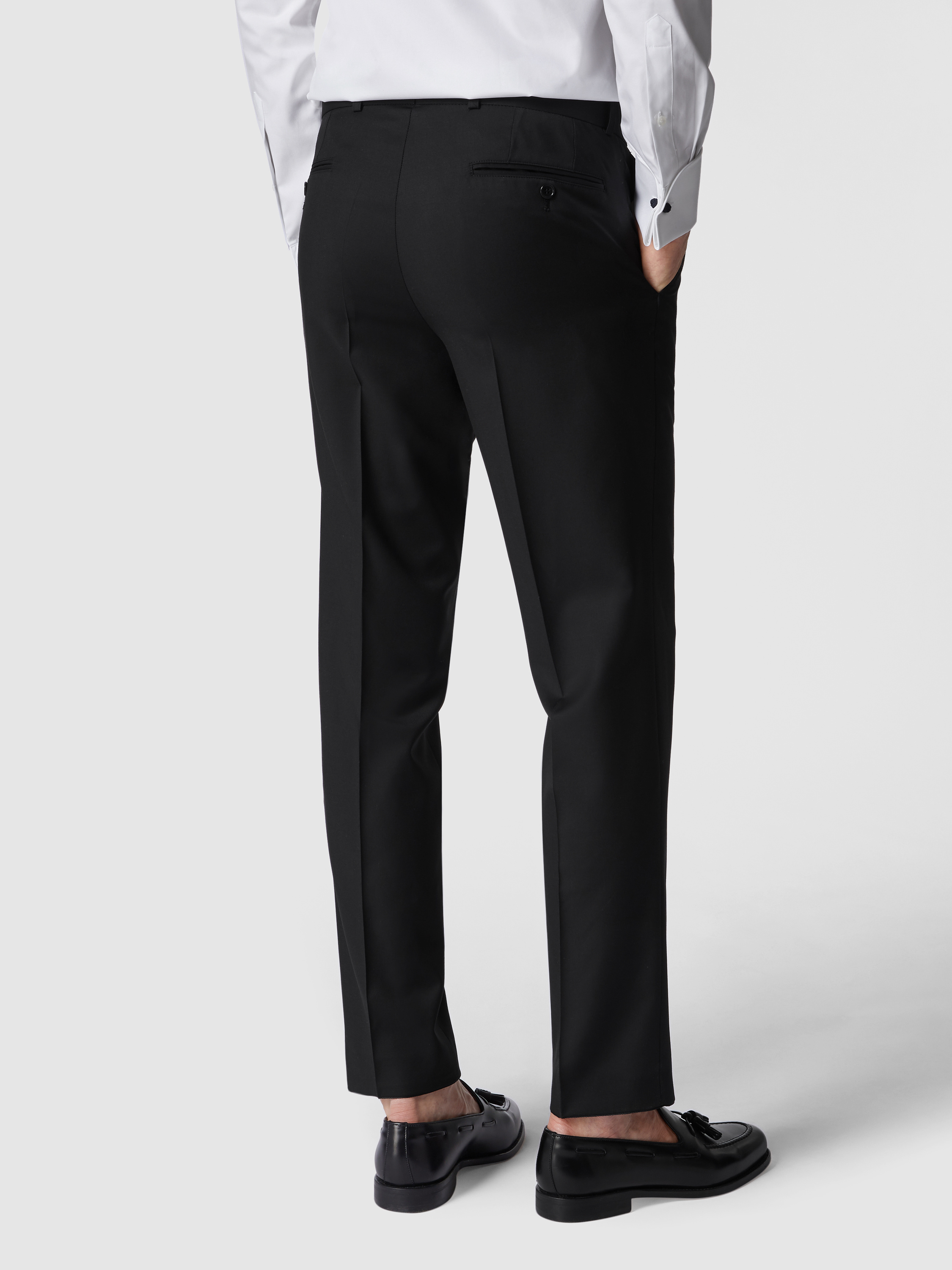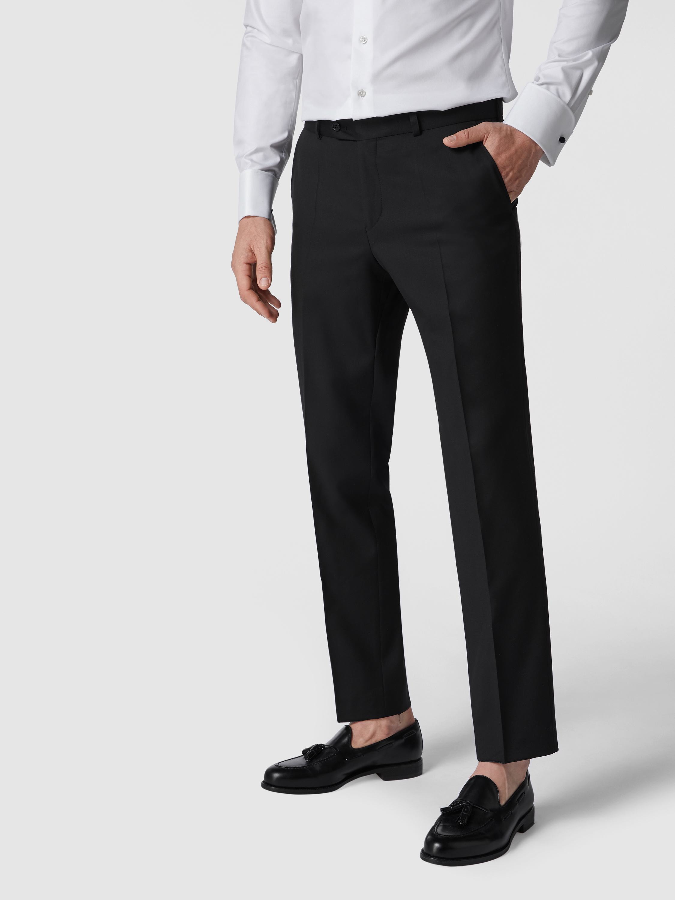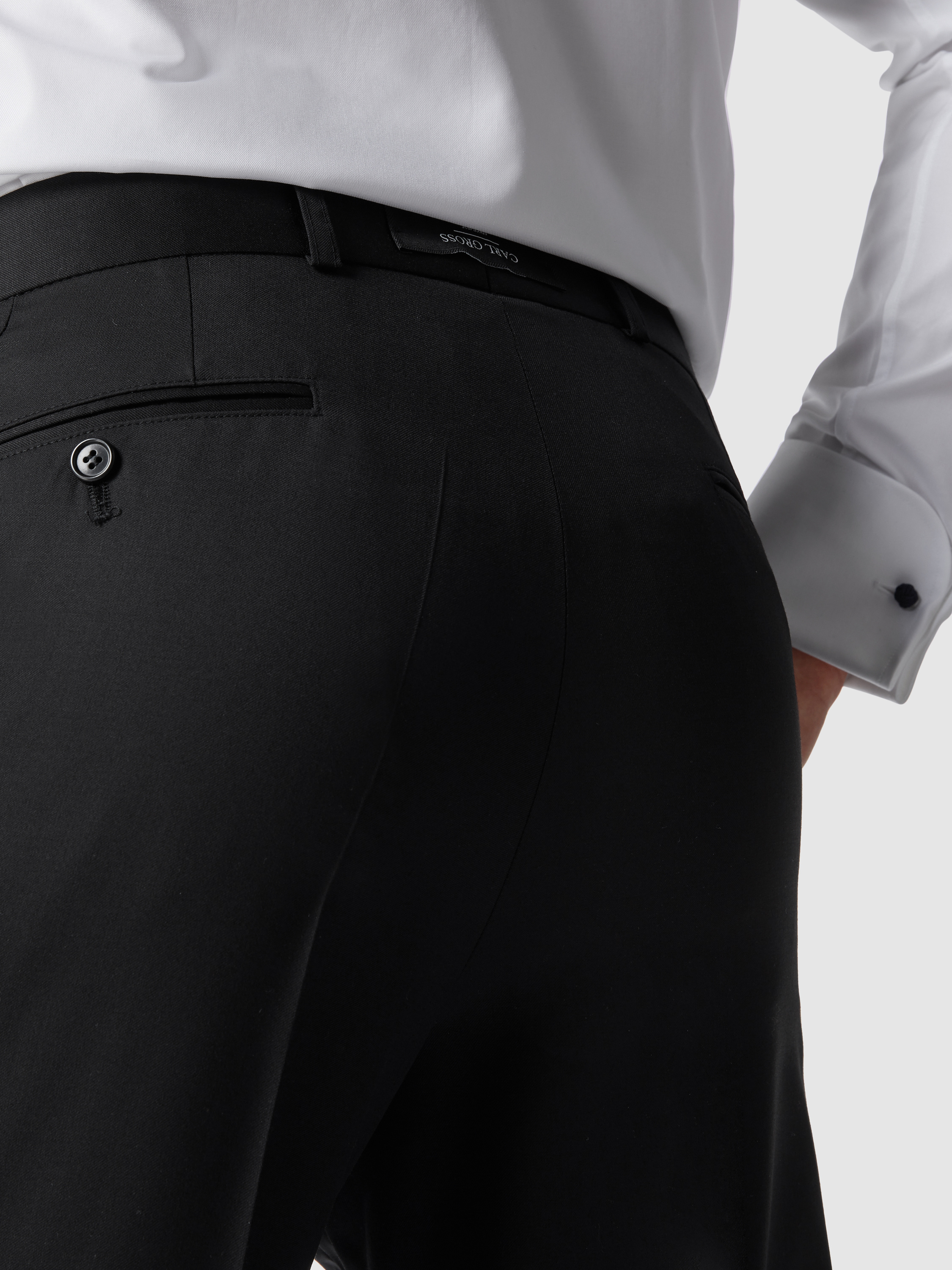 Die Modern Fit Anzughose von Carl Gross, Modell CG Sascha, aus reiner Schurwolle überzeugt durch ihre elegante Passform. Bügelfalten und französische Eingrifftaschen sorgen für einen zeitlosen Look, während geknöpfte Paspeltaschen am Gesäß praktische Funktionalität bieten. Ideal für formelle Anlässe und den anspruchsvollen Alltag.