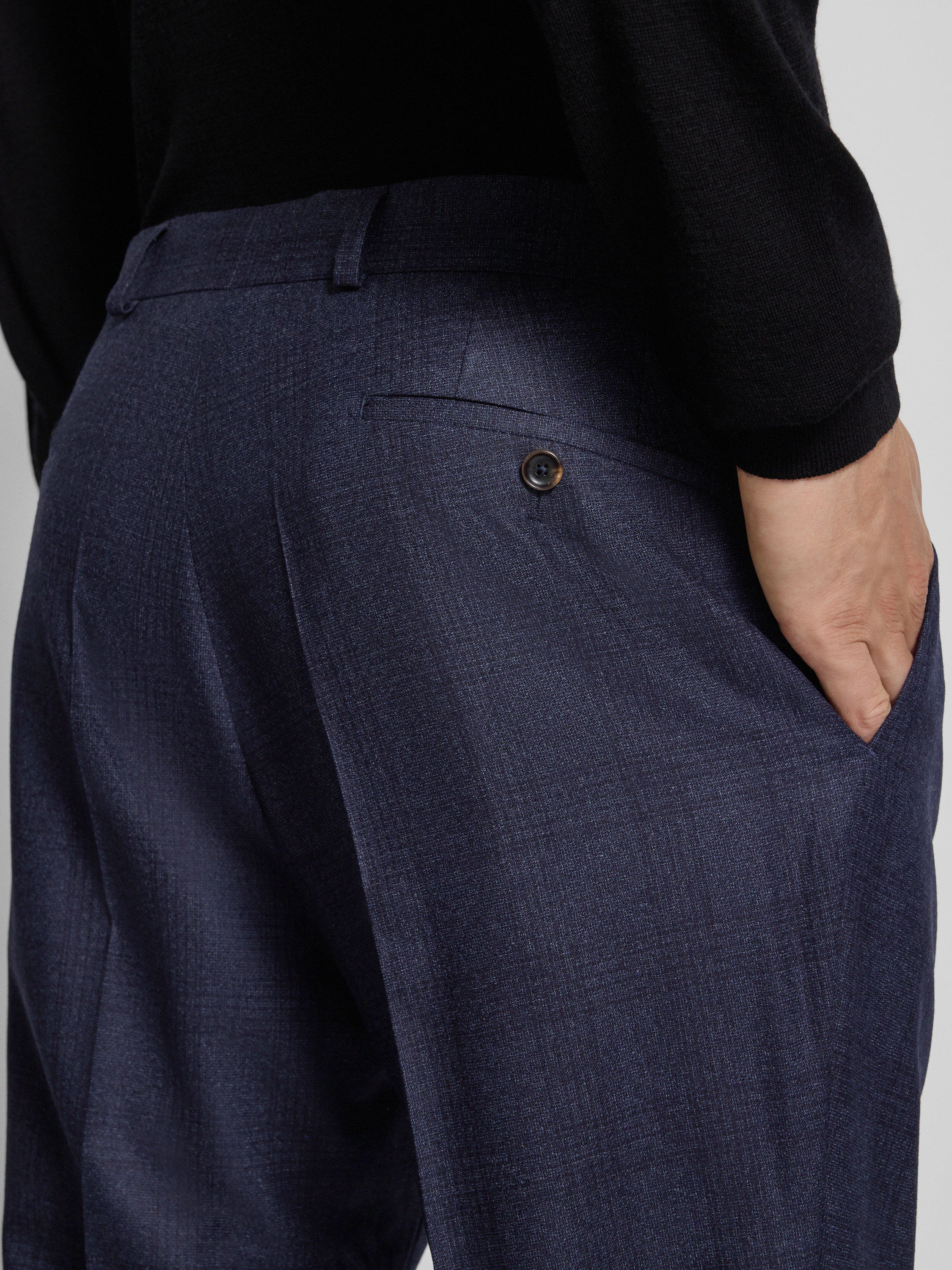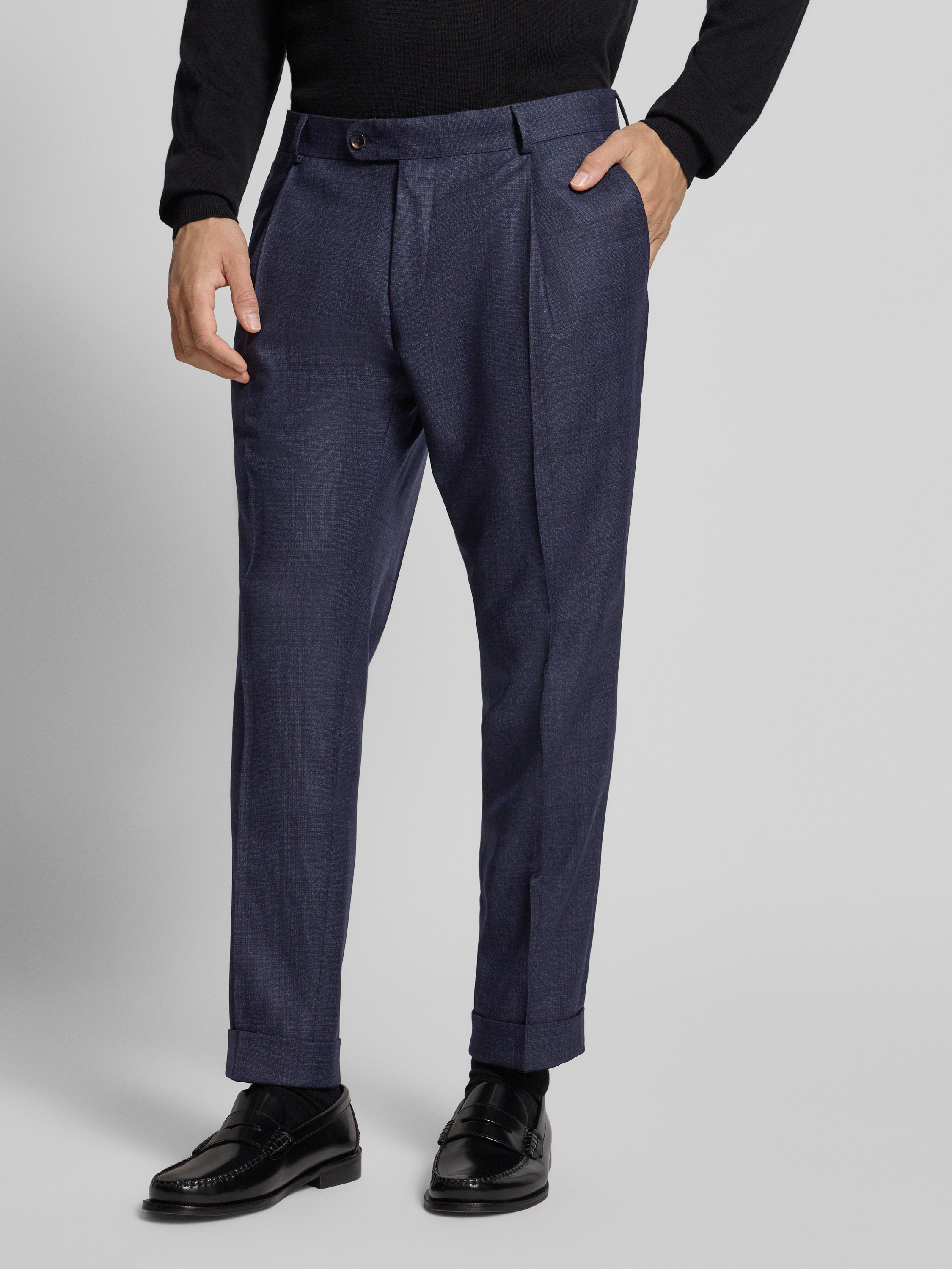 Die elegante Slim Fit Anzughose von Carl Gross aus reiner Schurwolle sorgt für eine angenehme Haptik und unterstützt ein gepflegtes Erscheinungsbild. Das Modell Tillo legt Wert auf eine moderne, schmale Passform und eignet sich besonders für formelle Anlässe oder den Büroalltag. Durch die Bügelfalten sowie die dezent gestalteten Gesäßtaschen erhält die Hose eine klare, zeitgemäße Linie.