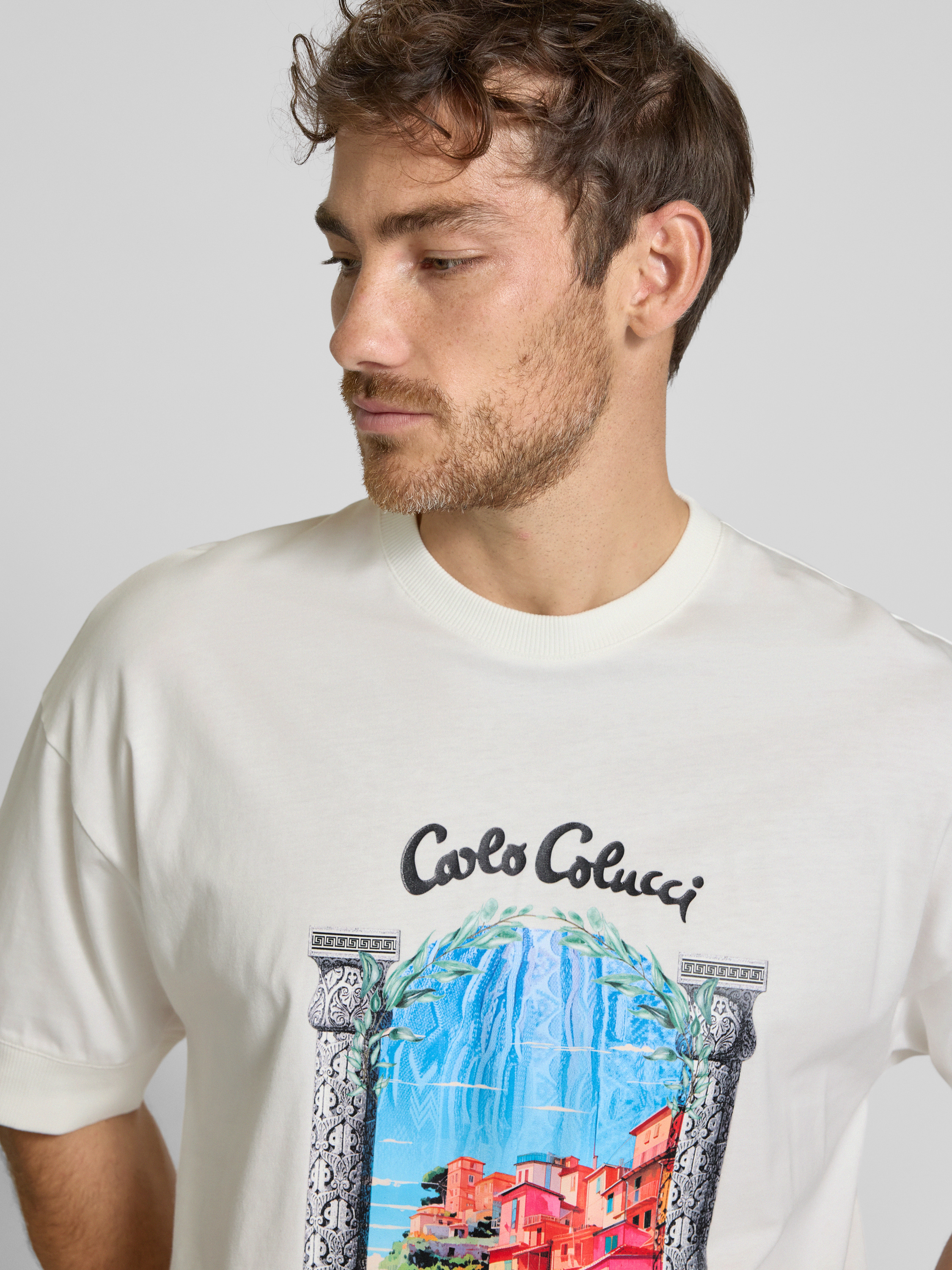 CARLO COLUCCIOversized T-Shirt mit Label-Print in offwhite
