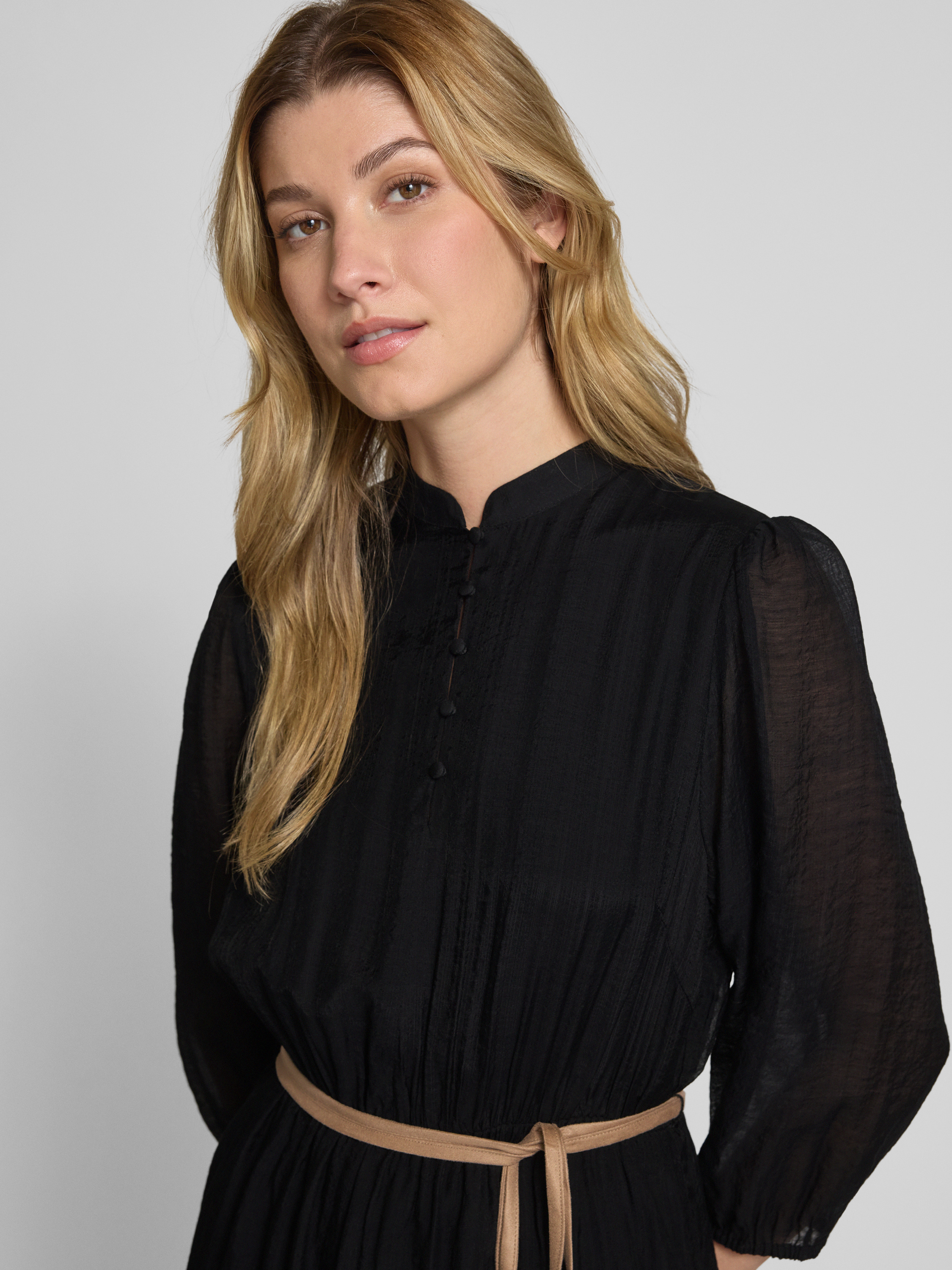 Das knielange Kleid von Christian Berg Woman Selection fällt durch seine taillierte Silhouette und den Stehkragen angenehm ins Auge. Semitransparente Ärmel mit elastischen Abschlüssen sorgen für einen leichten Akzent, während der blickdichte Unterrock angenehmen Tragekomfort gewährleistet. Das abnehmbare Taillenband ergänzt den Schnitt flexibel.